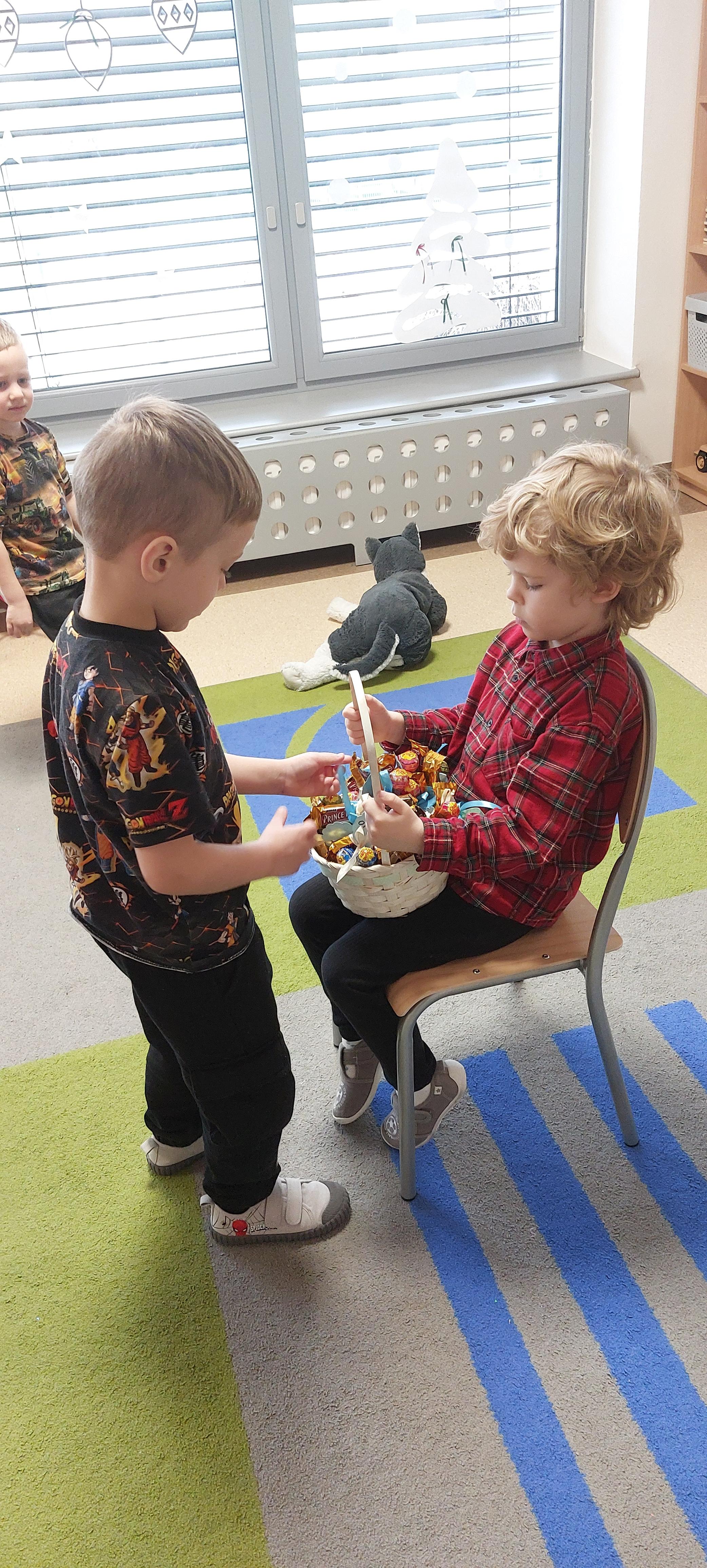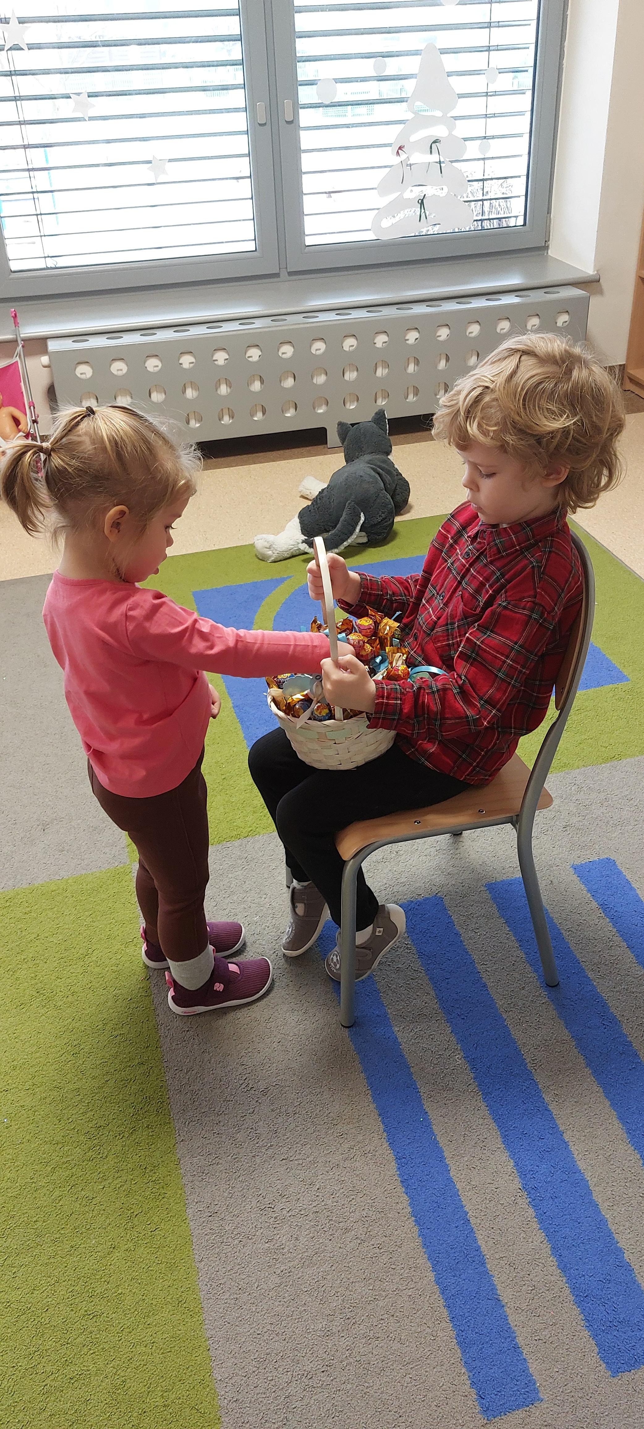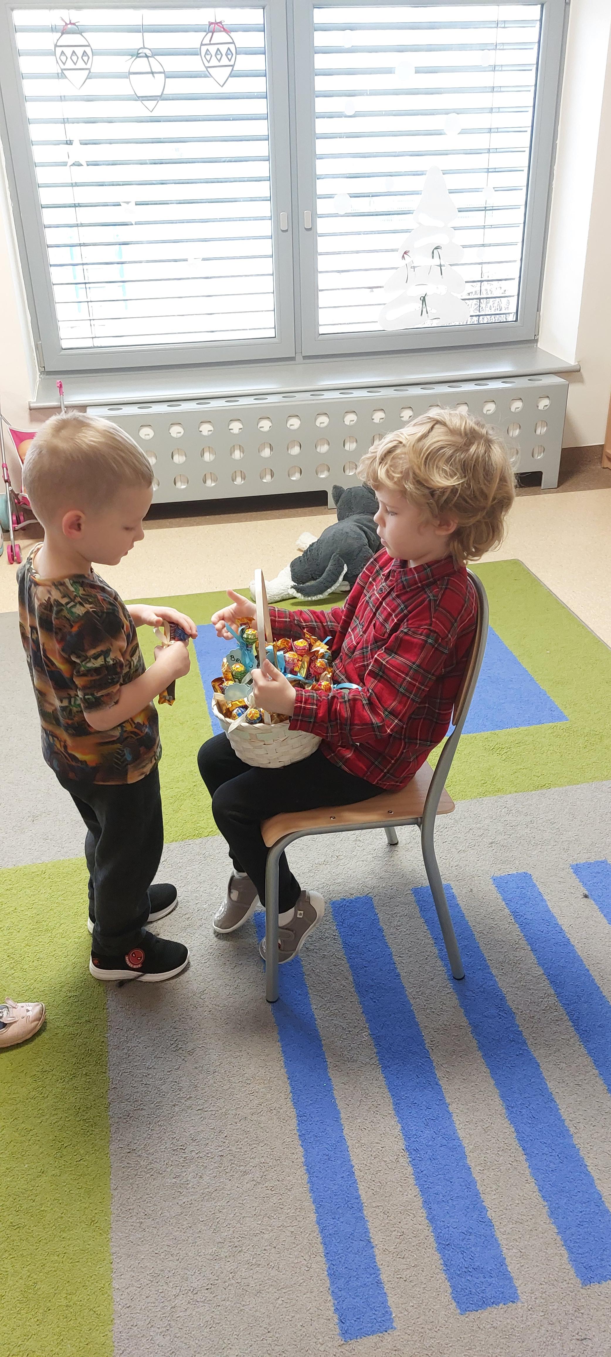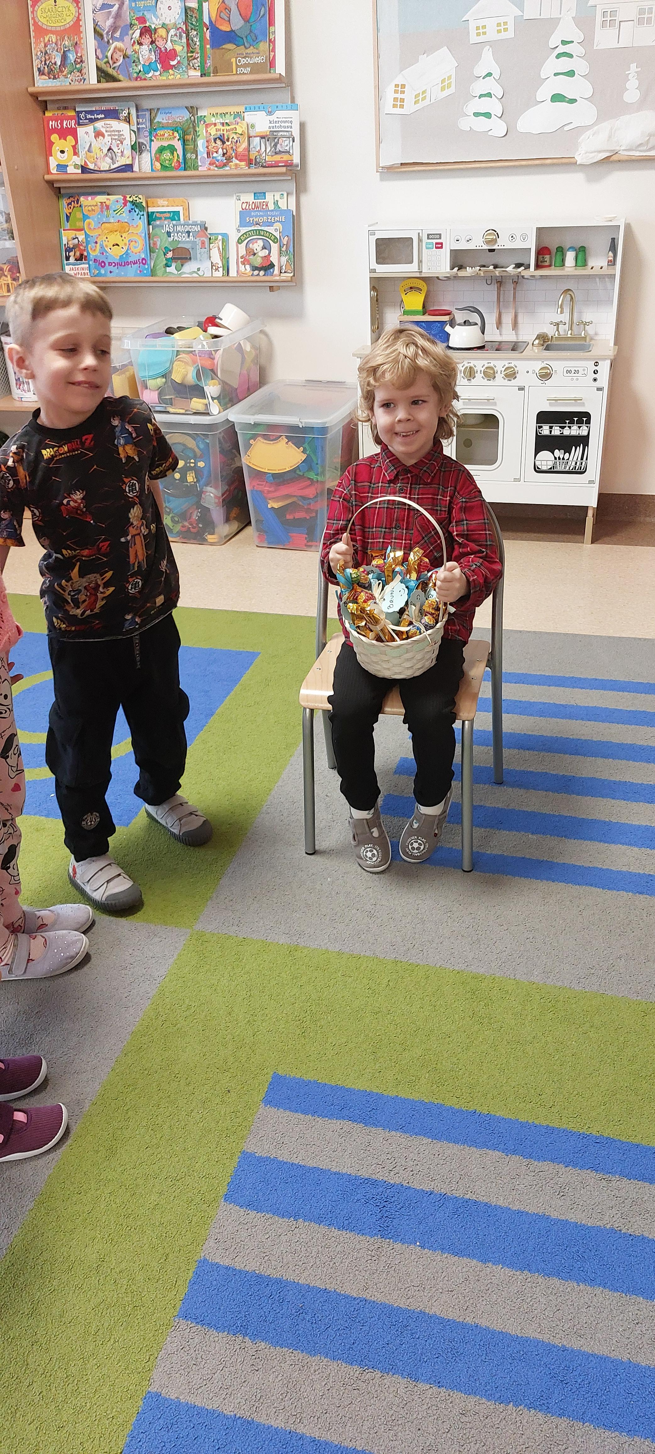 W lutym swoje urodziny obchodzili Nasi koledzy z grupy- Bruno i Damian. Z tej okazji przedszkolaki śpiewały Sto lat oraz składały życzenia; zdrowia, radości, szczęścia. W podziękowaniu za pamięć Nasi Jubilaci wręczyli dzieciom słodki poczęstunek.