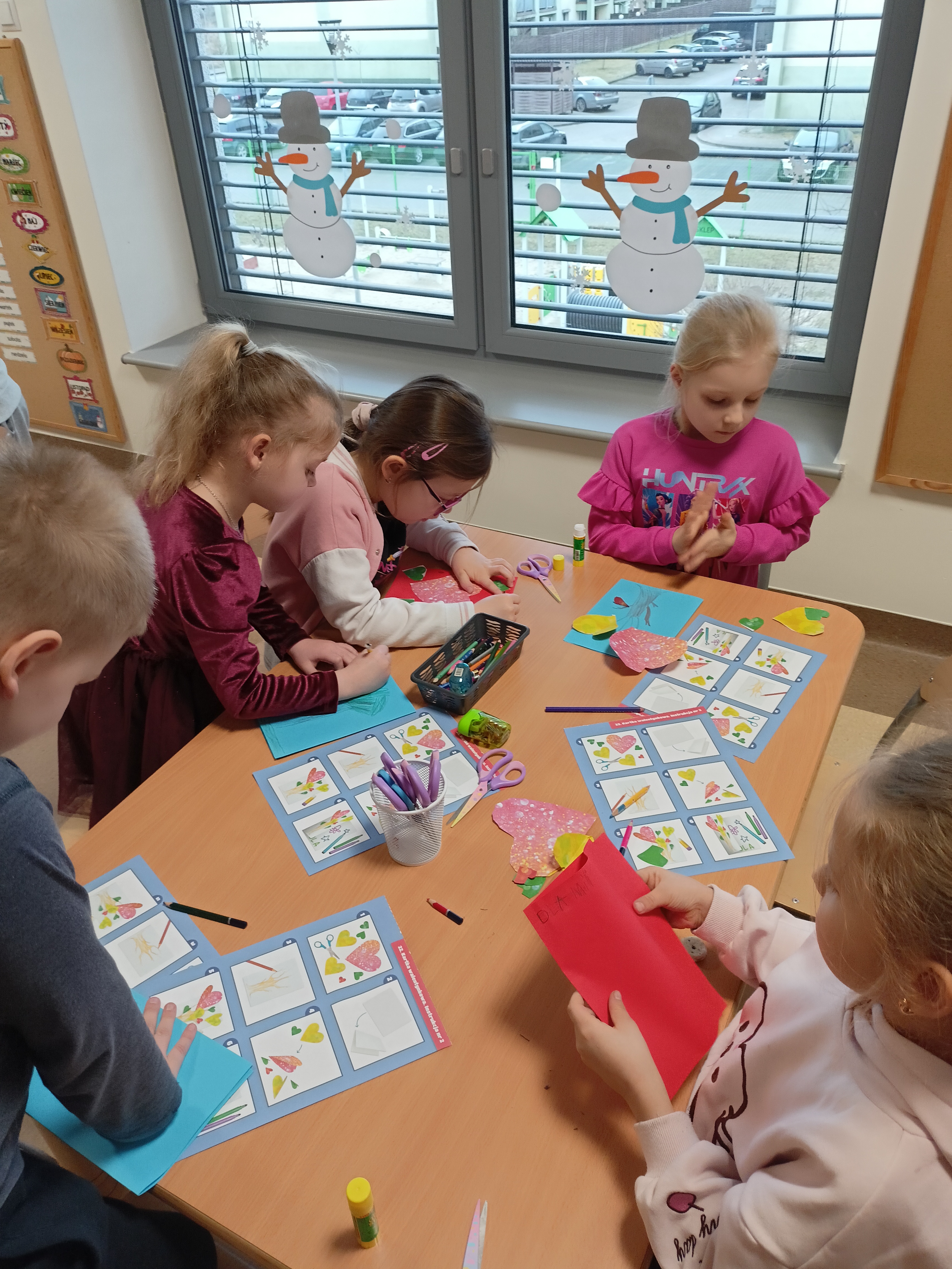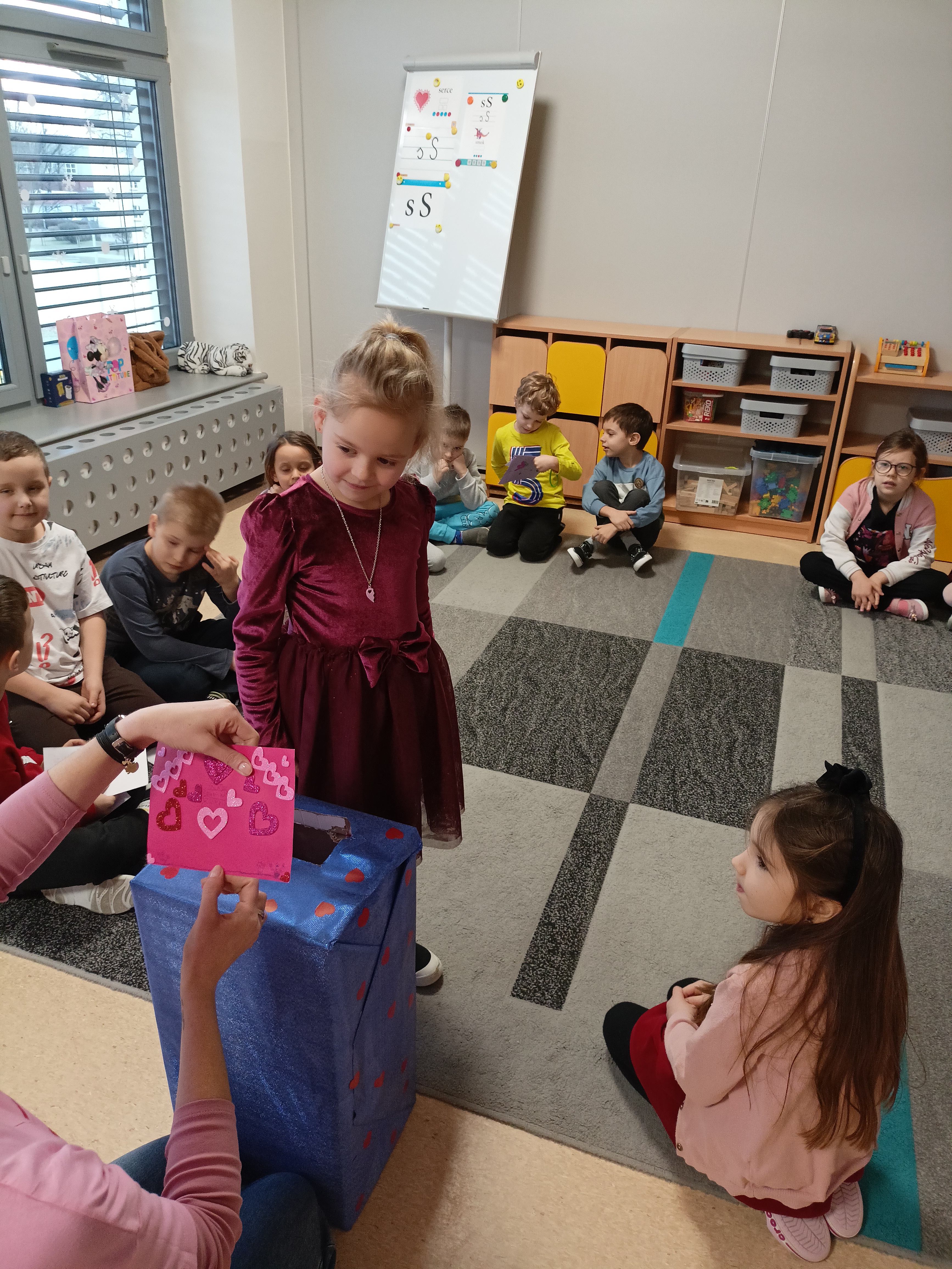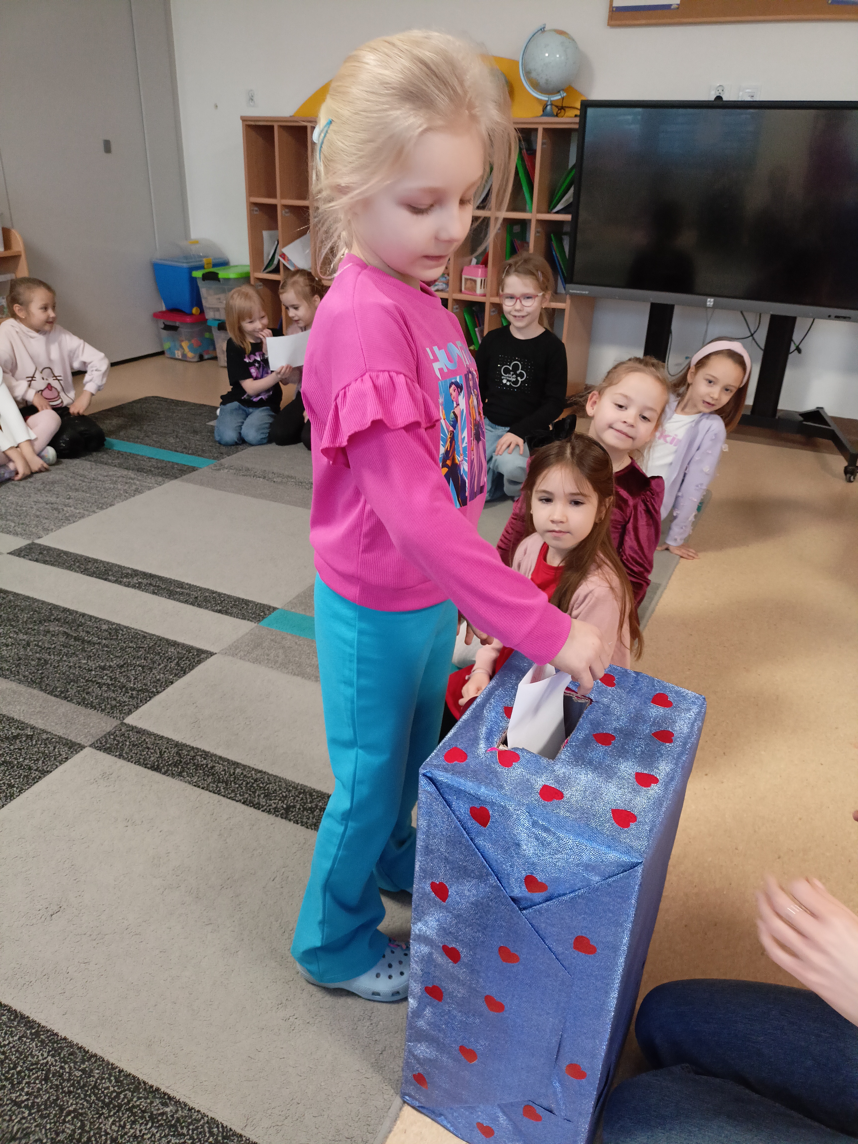 Dziś dzień pełen miłości, przyjaźni i życzliwości. Dzieci i panie otrzymały walentynki od wielbicieli ;) Sami też tworzyli kartki dla najbliższych. Z miłą wizytą przybył dziś też do nas pan Jarek z zabawami muzycznymi.
