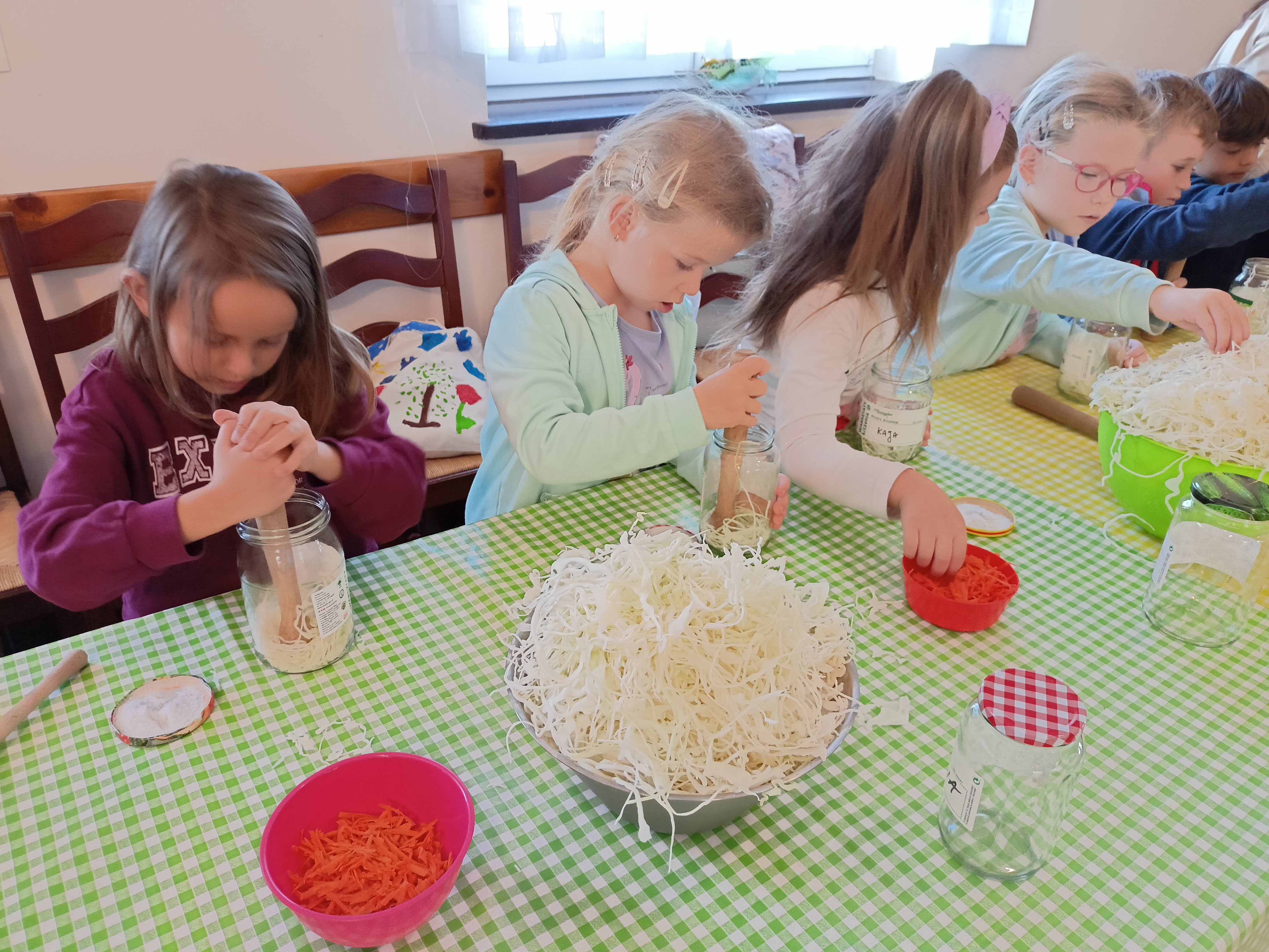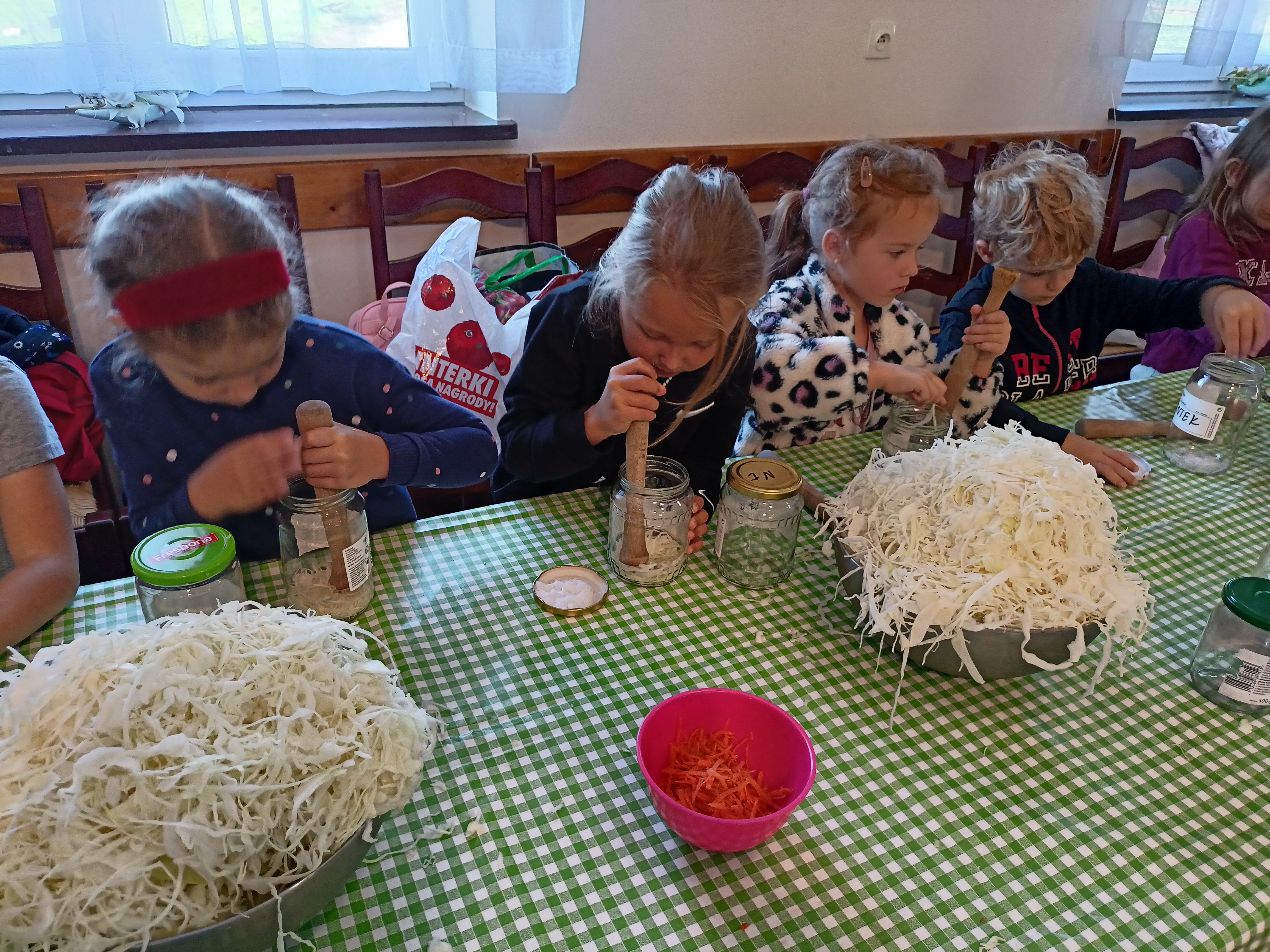 Dzieci z grupy Żwirki wybrały się na wycieczkę, by poznać tajniki kiszenia warzyw. Sami zakisili kapustę oraz zrobili surówkę z kiszonej kapusty. Degustowali kiszonki i soki z kiszonych buraków, ogórków czy kapusty. Byli bardzo odważni, bo były naprawdę kwaśne ;) Spróbowali też swoich sił na polu z ziemniakami, ale też był czas na zabawy oraz piknik. To był dzień pełen wrażeń :)