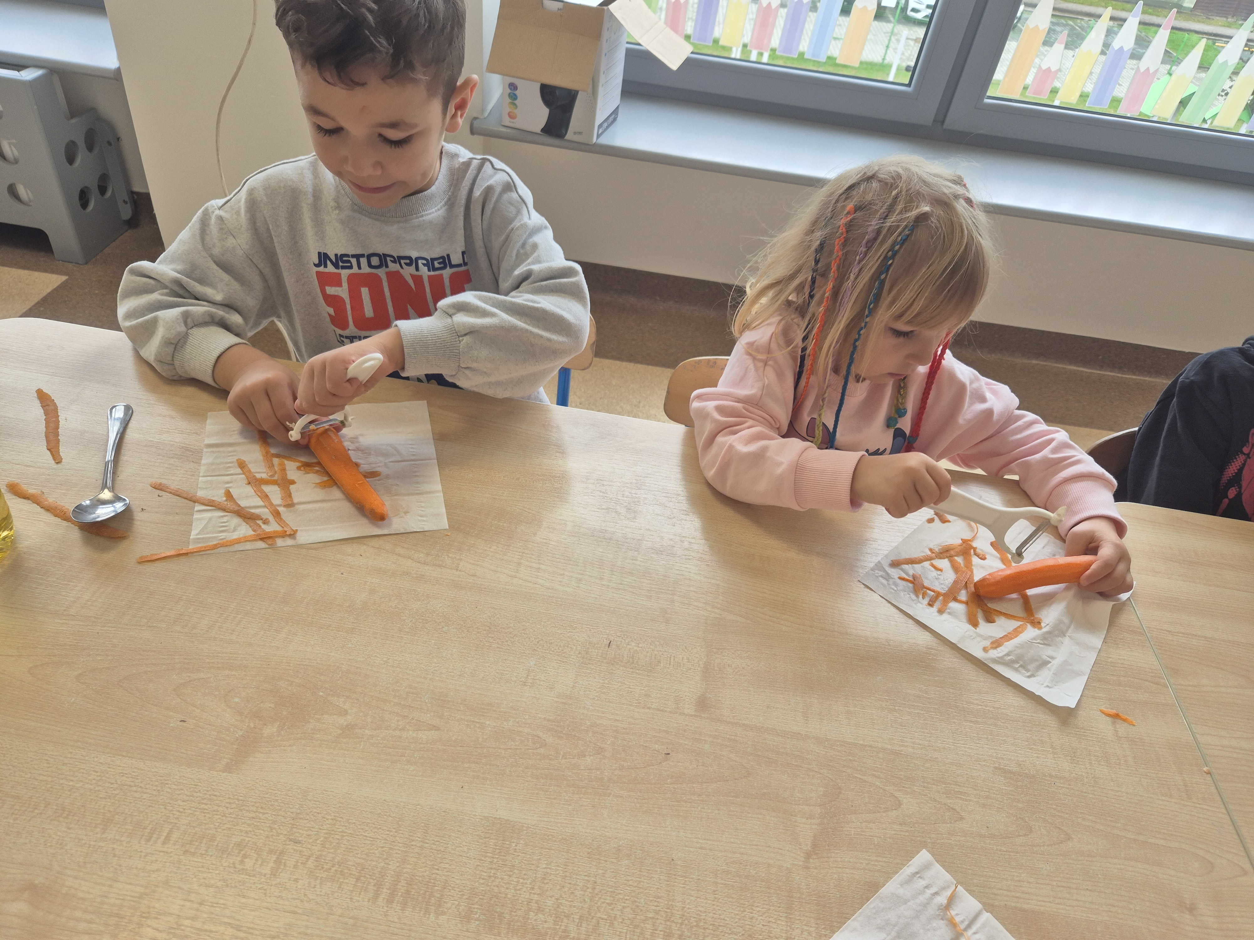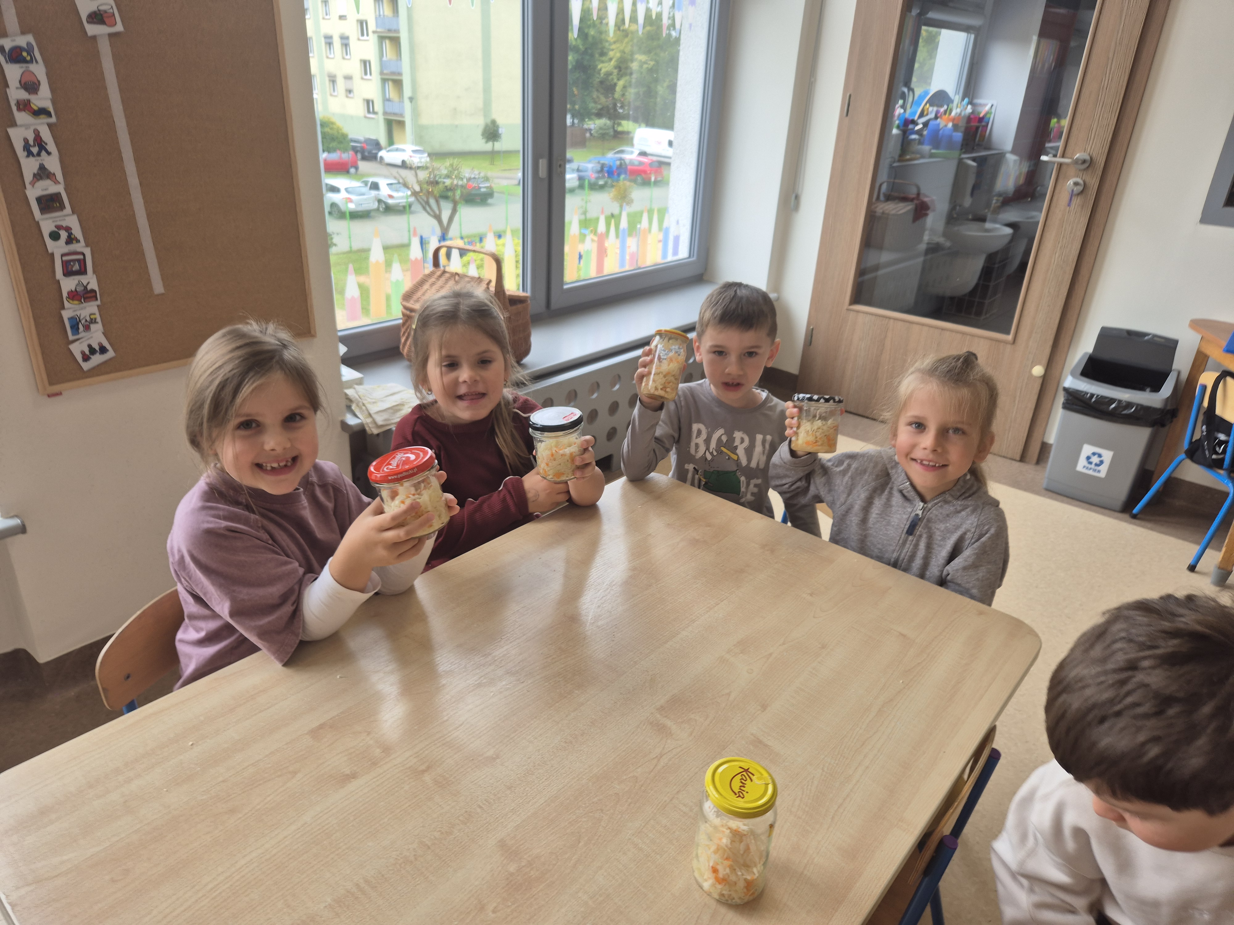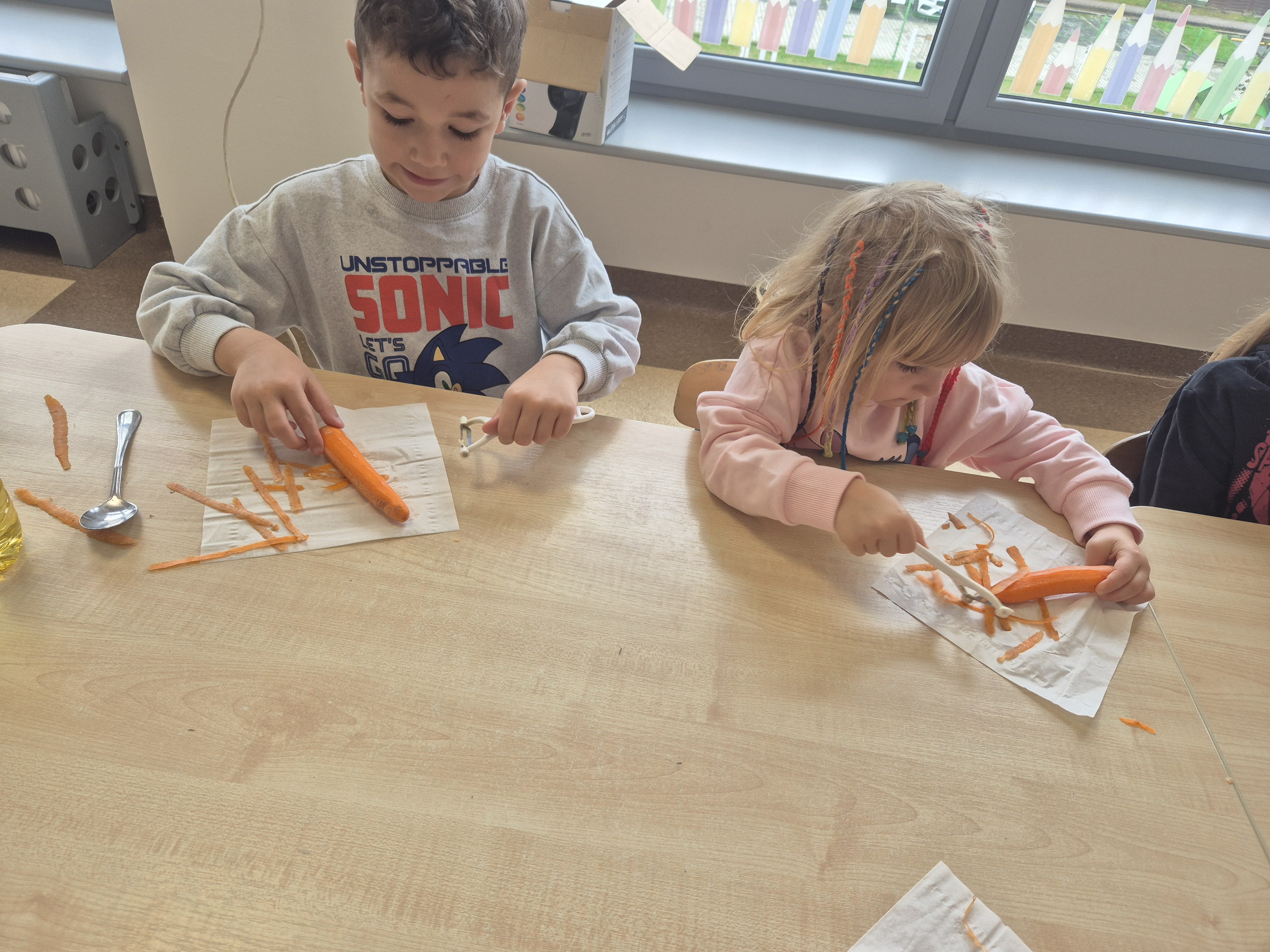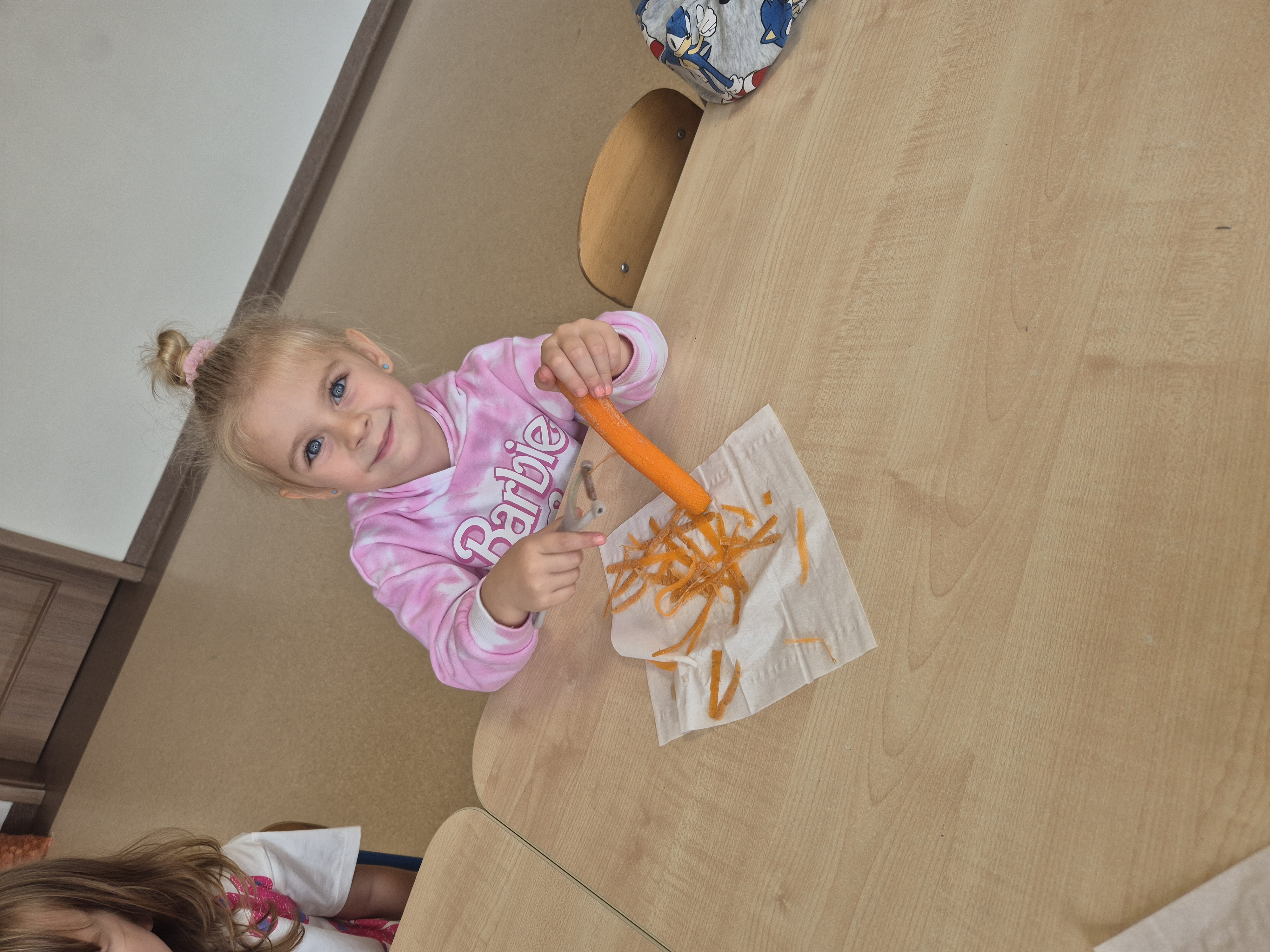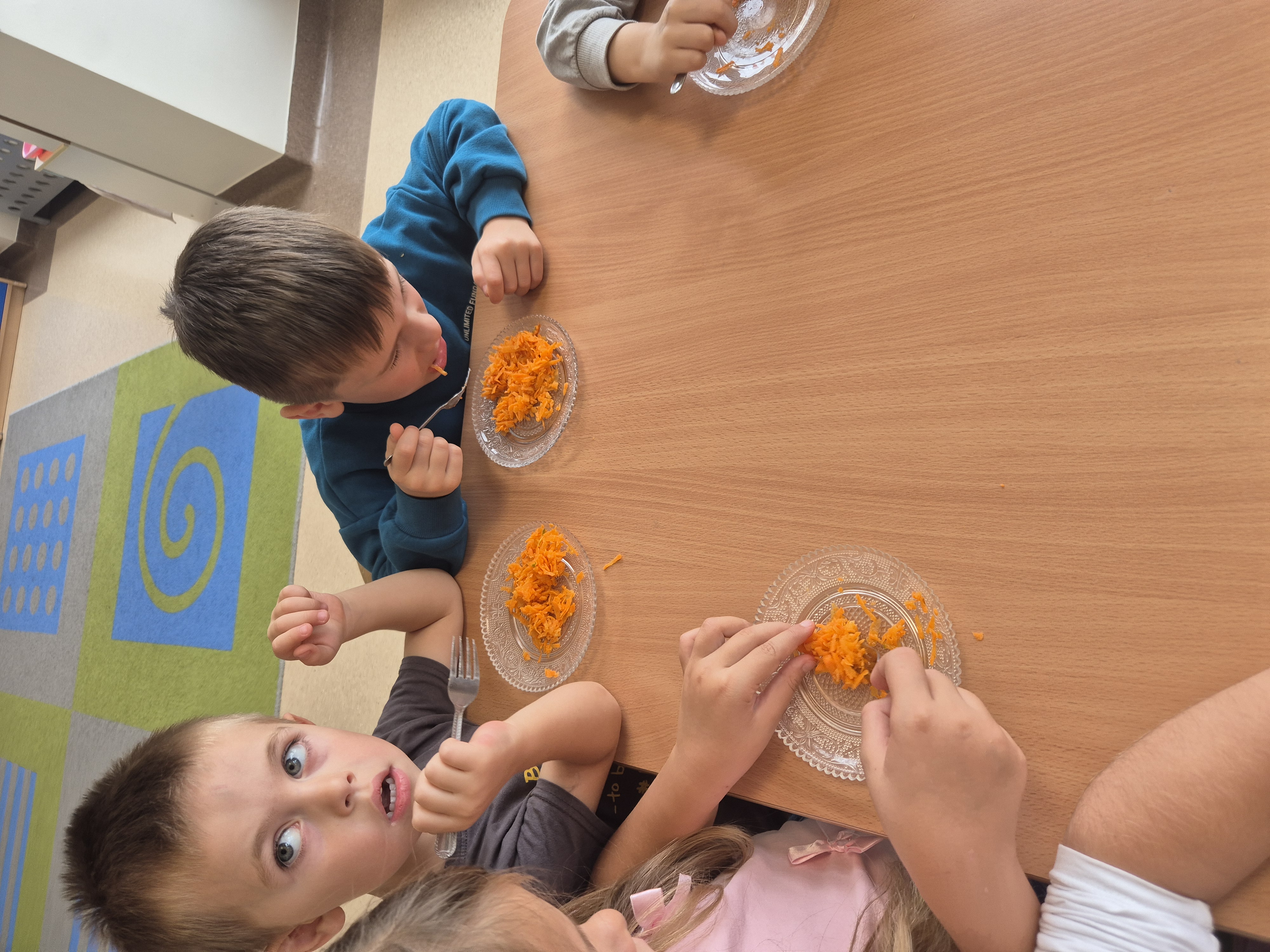 W zeszÅ‚ym tygodniu grupa Muchomorki miaÅ‚a warsztaty warzywne. Dzieci poznaÅ‚y jakie sÄ… jesienne warzywa i co można z nich zrobić. WybraliÅ›my siÄ™ do warzywniaka na zakupy, a nastÄ™pnie zrobiÅ‚y tartÄ… marchewkÄ™ i kiszonÄ… kapustÄ™. Później wspólnie doprawiaÅ‚y i próbowaÅ‚y. Dzieci podczas spożywania posiÅ‚ków w przedszkolu sÄ… codziennie zachÄ™cane do próbowania warzyw i surówek !