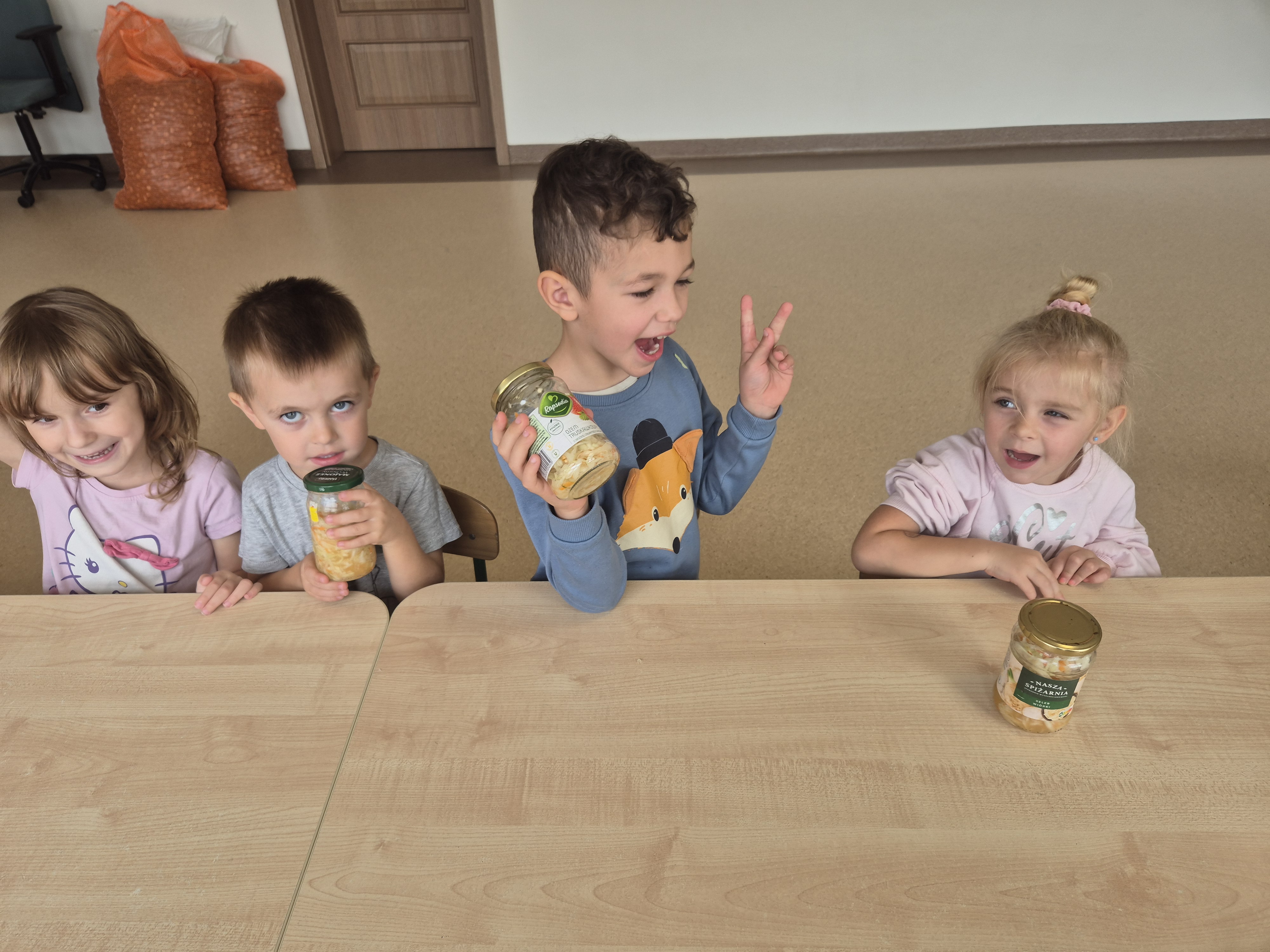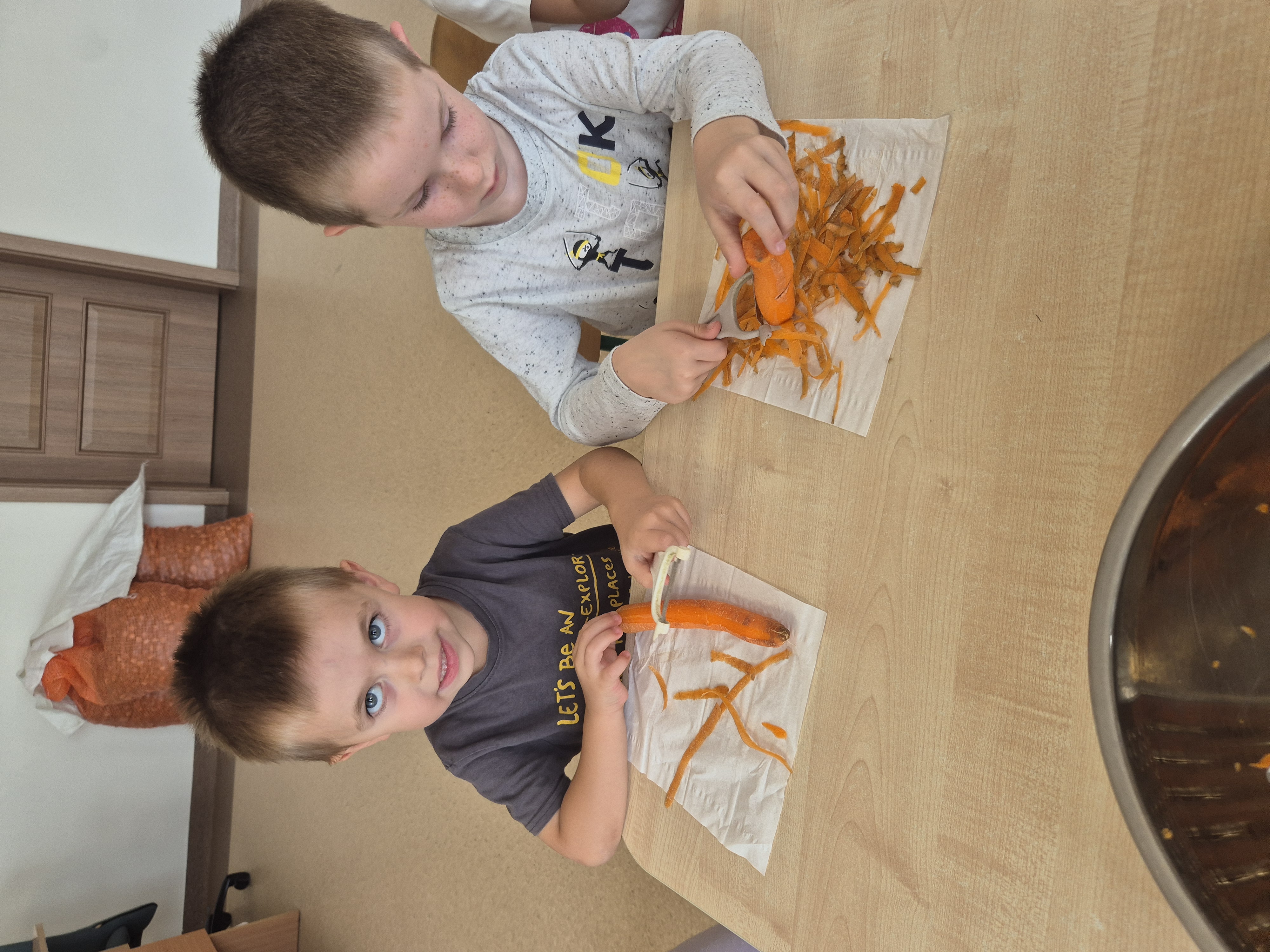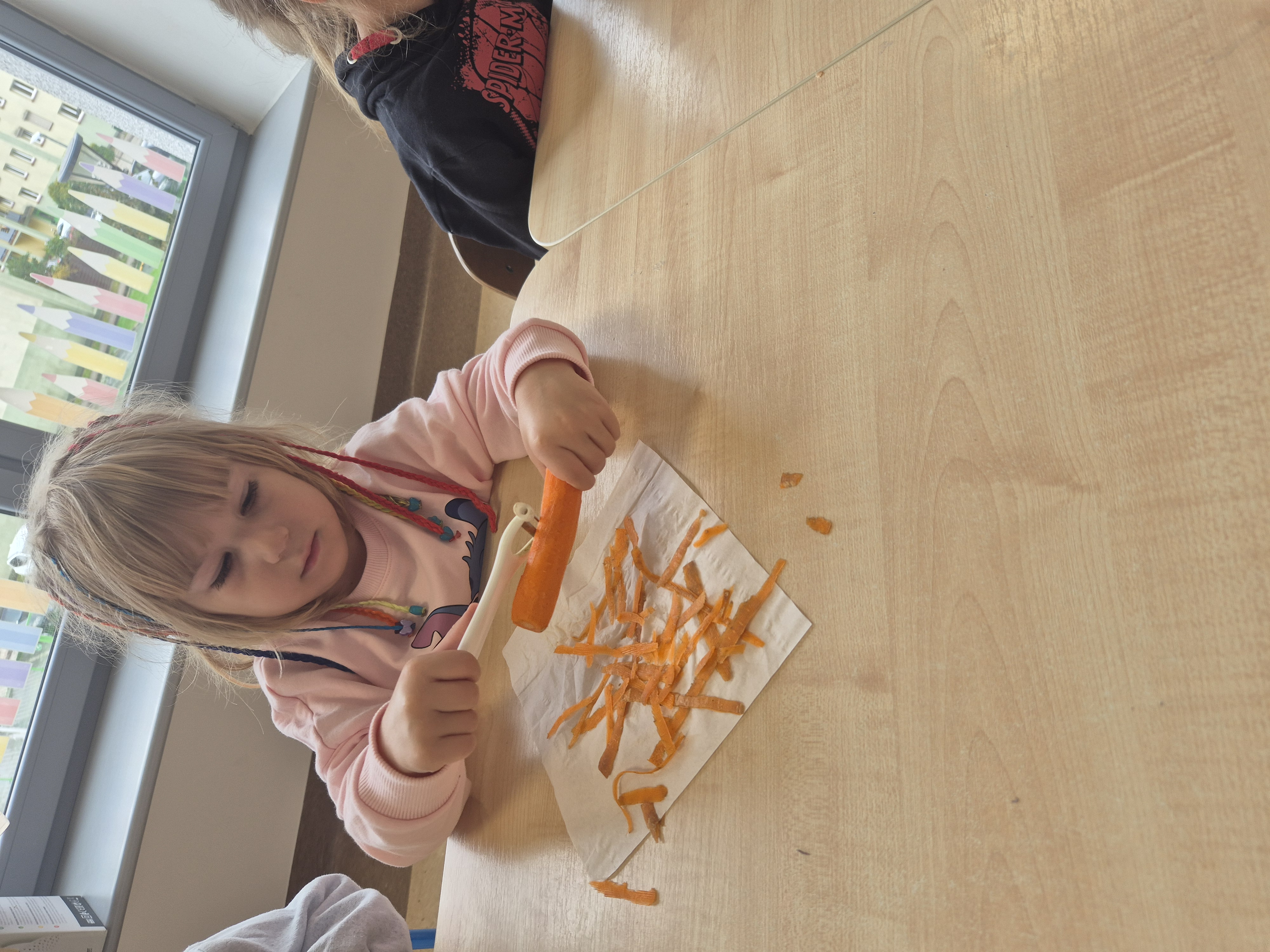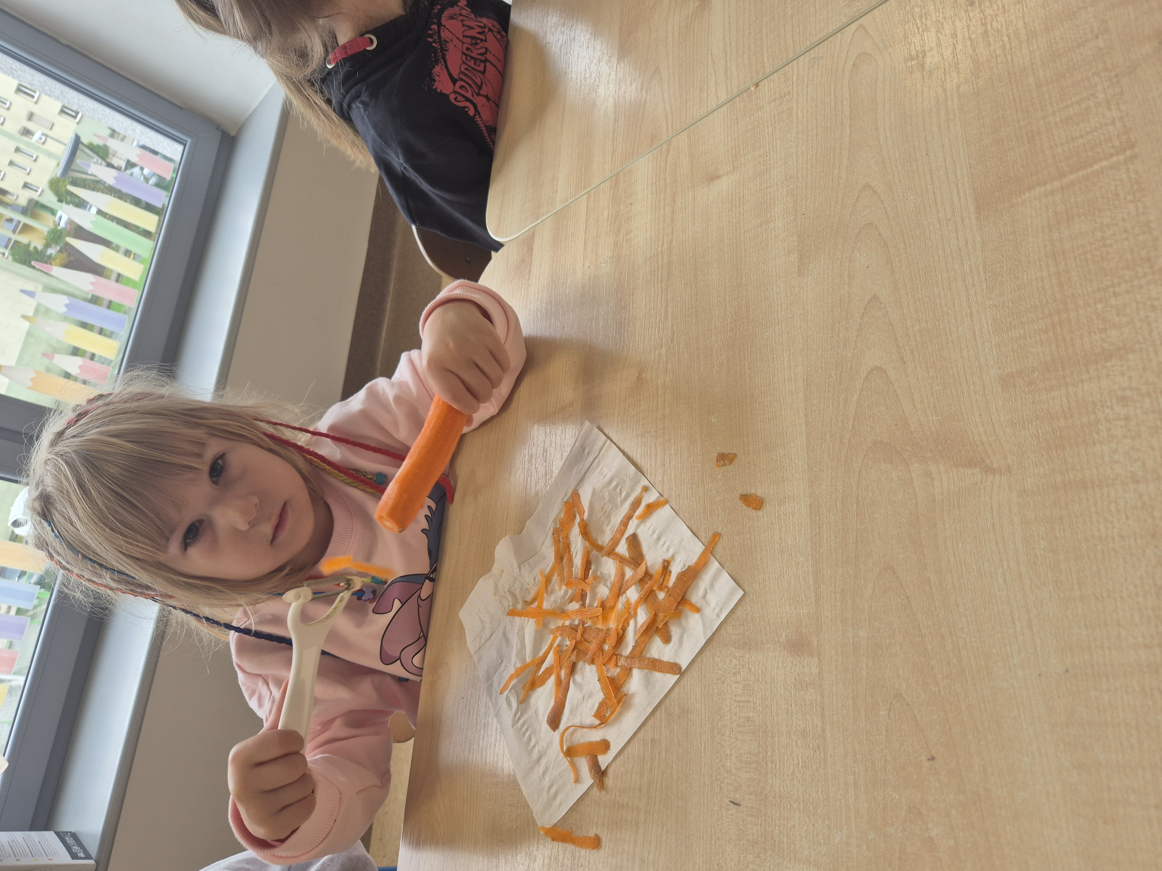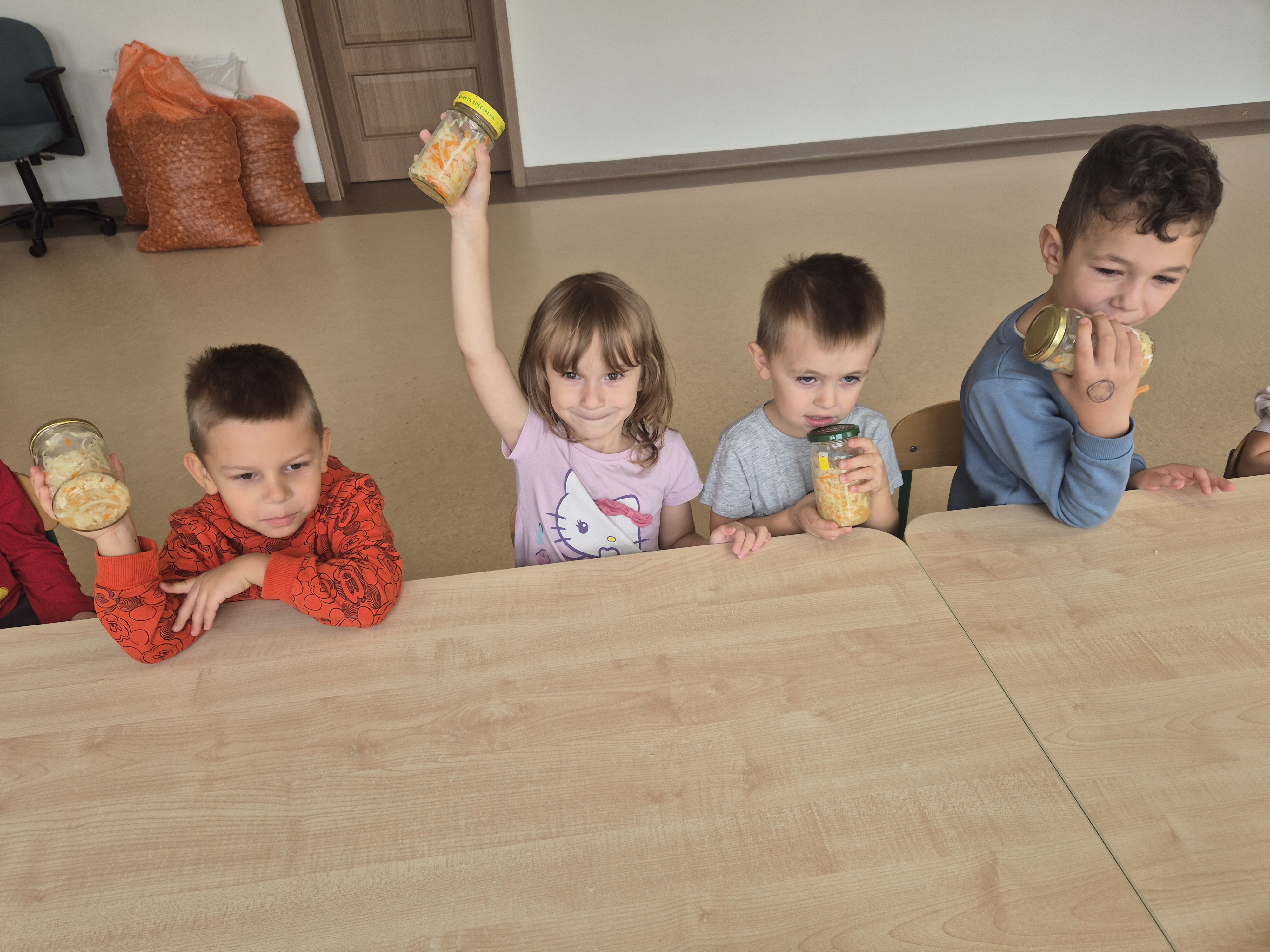 W zeszÅ‚ym tygodniu grupa Muchomorki miaÅ‚a warsztaty warzywne. Dzieci poznaÅ‚y jakie sÄ… jesienne warzywa i co można z nich zrobić. WybraliÅ›my siÄ™ do warzywniaka na zakupy, a nastÄ™pnie zrobiÅ‚y tartÄ… marchewkÄ™ i kiszonÄ… kapustÄ™. Później wspólnie doprawiaÅ‚y i próbowaÅ‚y. Dzieci podczas spożywania posiÅ‚ków w przedszkolu sÄ… codziennie zachÄ™cane do próbowania warzyw i surówek !