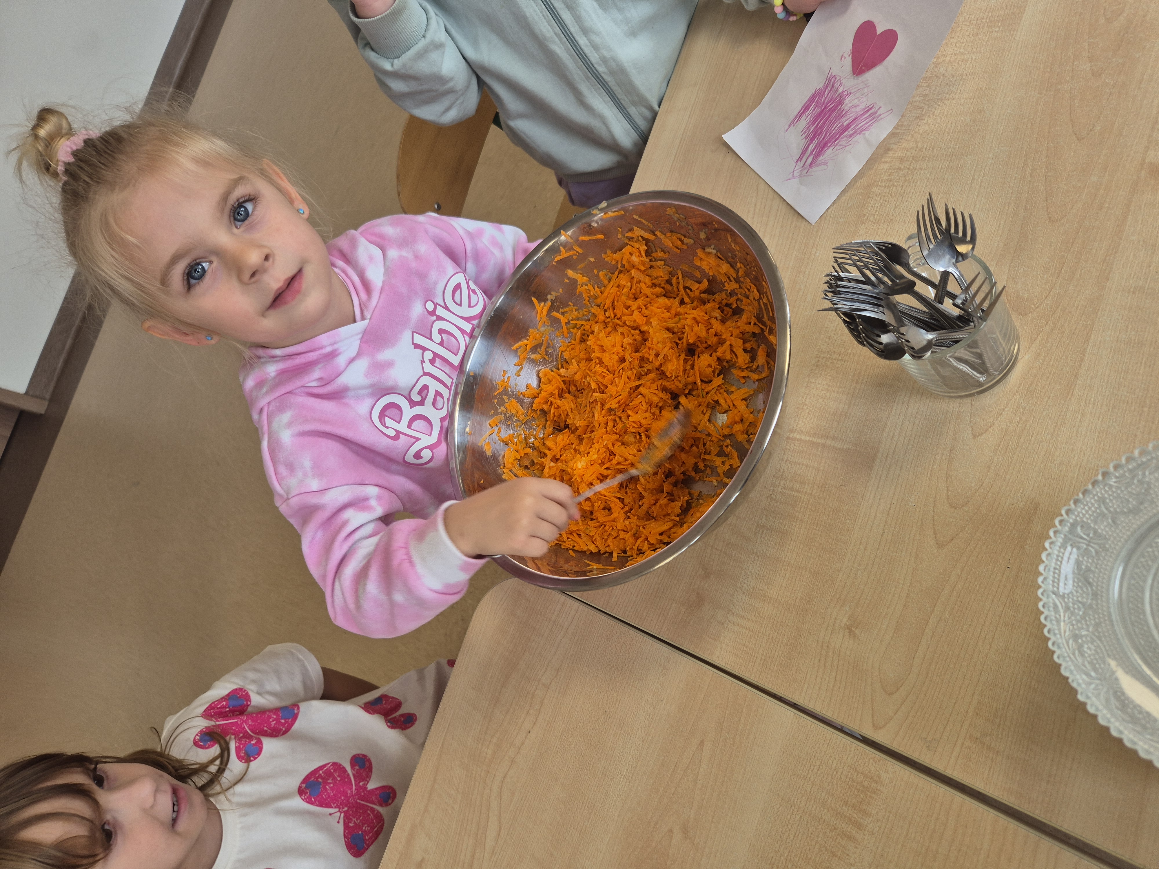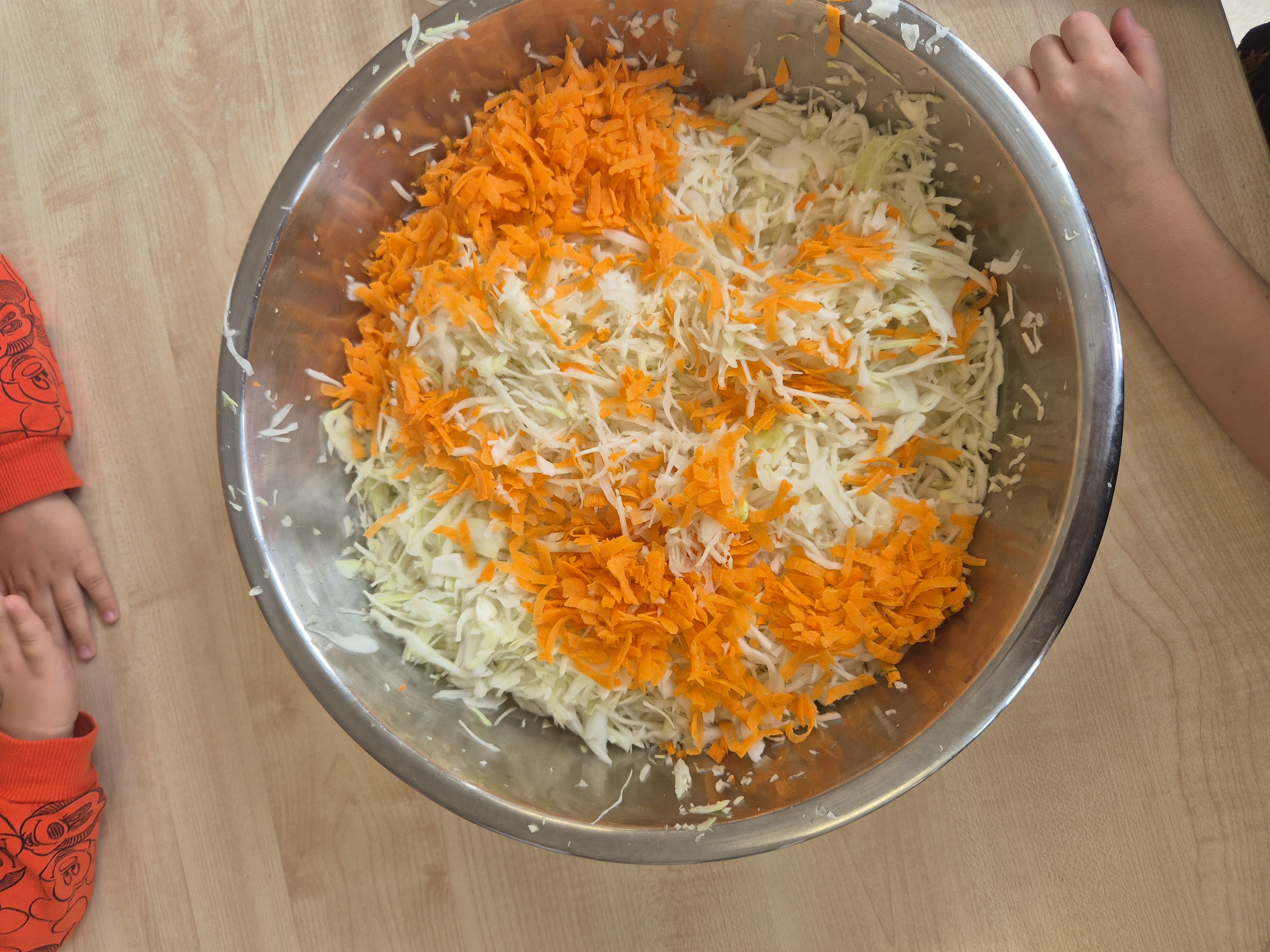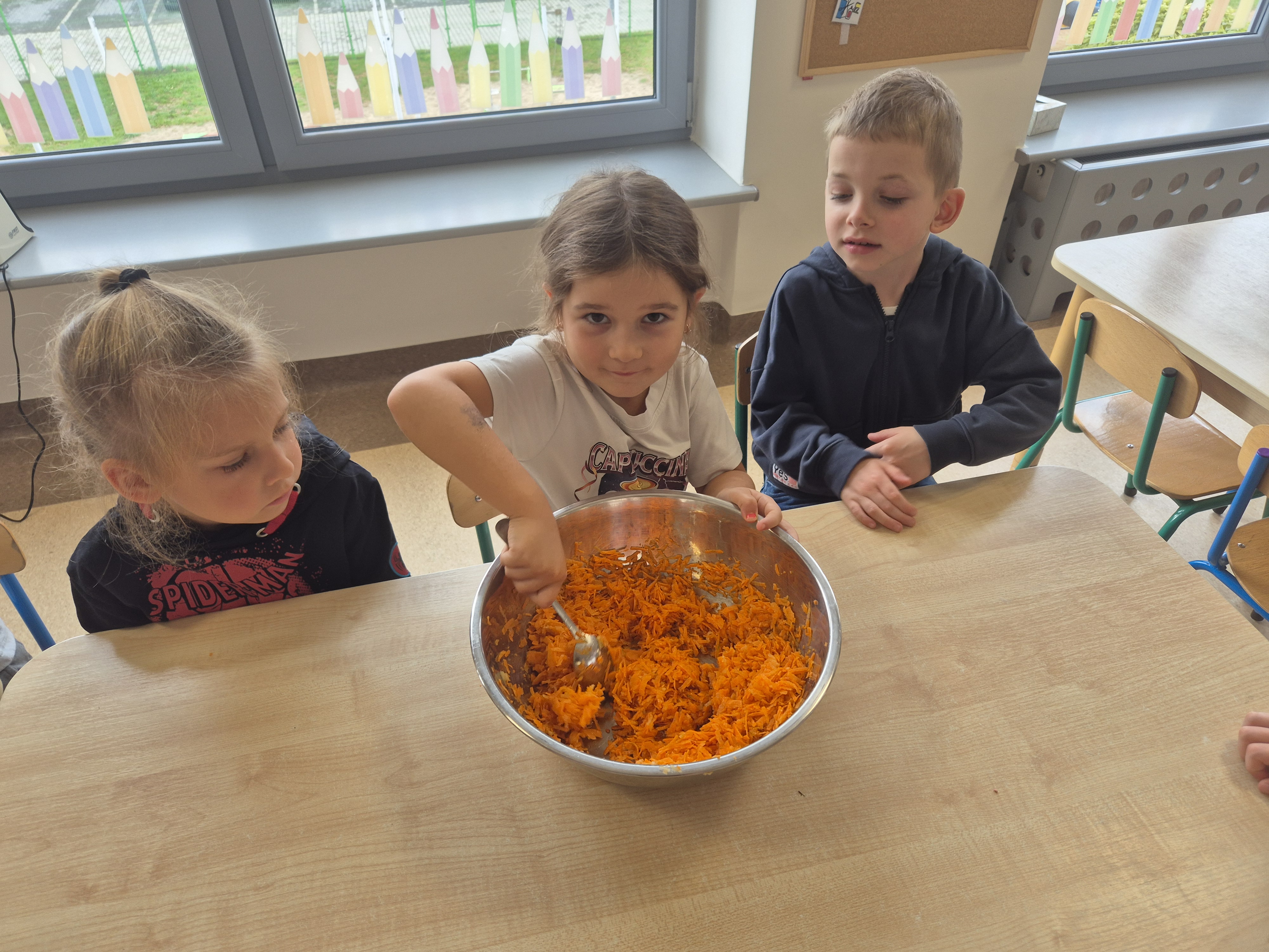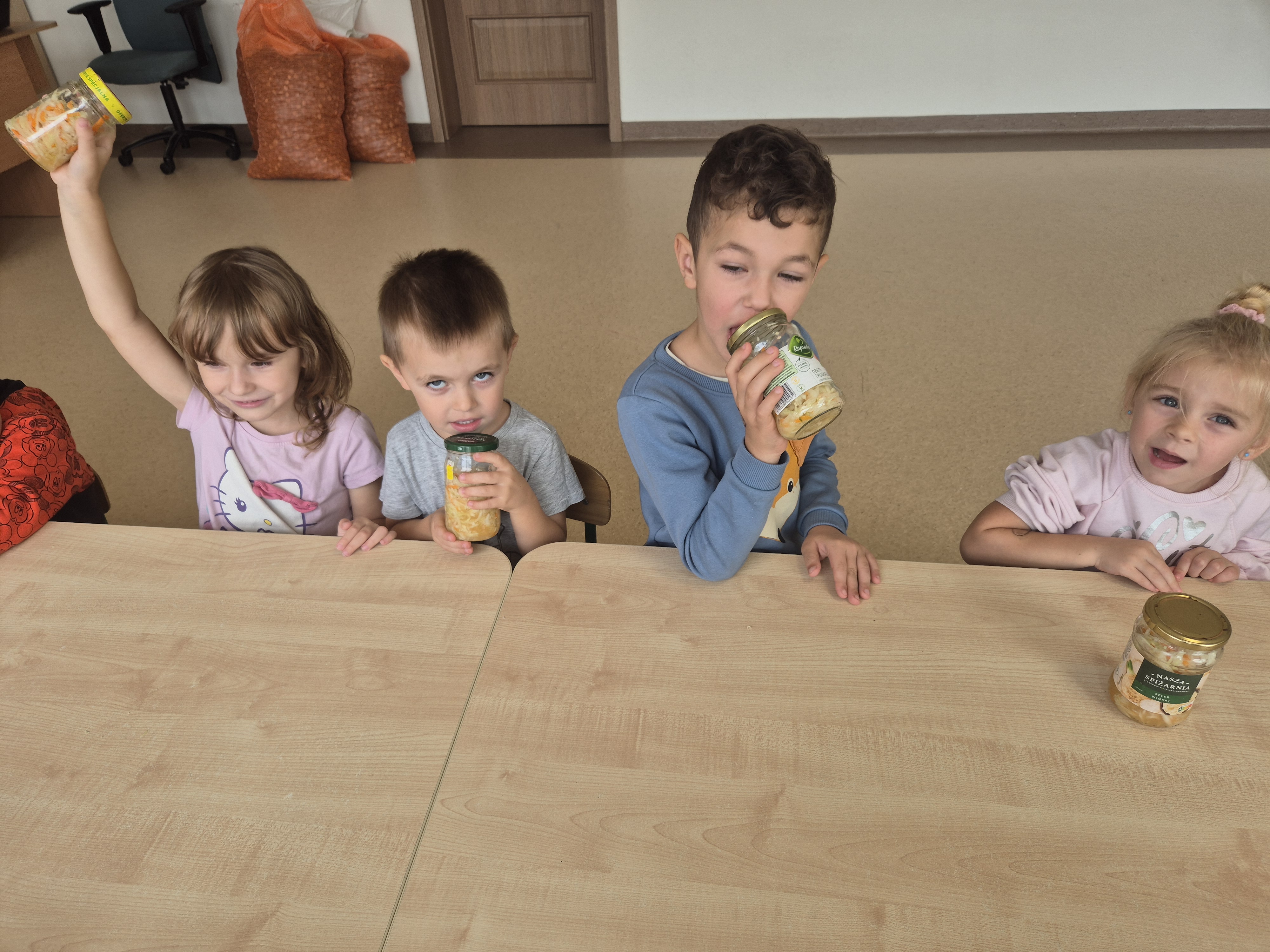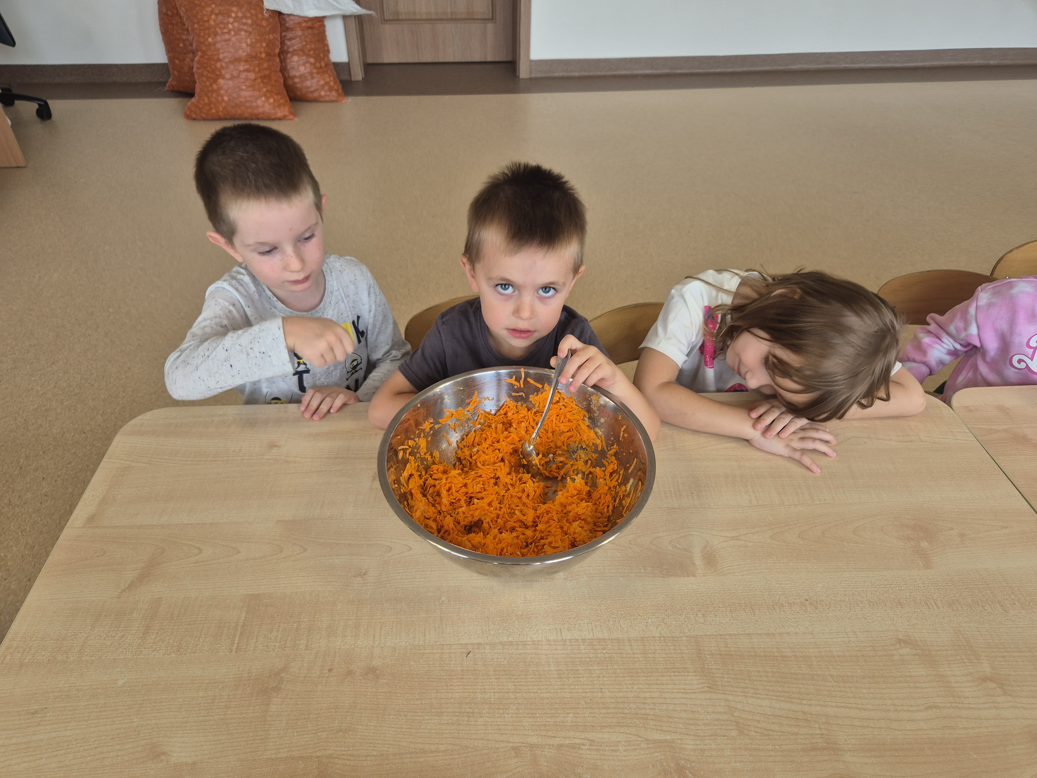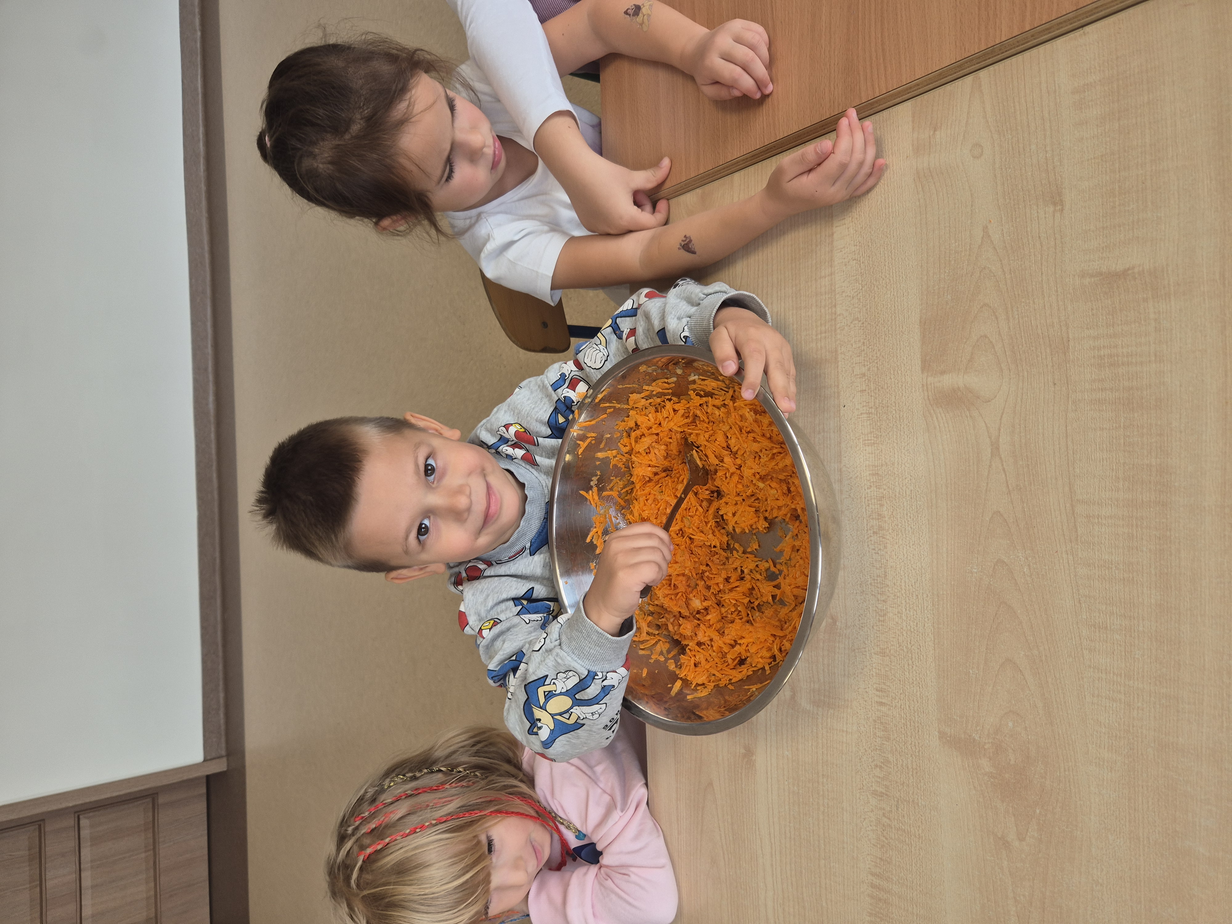 W zeszÅ‚ym tygodniu grupa Muchomorki miaÅ‚a warsztaty warzywne. Dzieci poznaÅ‚y jakie sÄ… jesienne warzywa i co można z nich zrobić. WybraliÅ›my siÄ™ do warzywniaka na zakupy, a nastÄ™pnie zrobiÅ‚y tartÄ… marchewkÄ™ i kiszonÄ… kapustÄ™. Później wspólnie doprawiaÅ‚y i próbowaÅ‚y. Dzieci podczas spożywania posiÅ‚ków w przedszkolu sÄ… codziennie zachÄ™cane do próbowania warzyw i surówek !