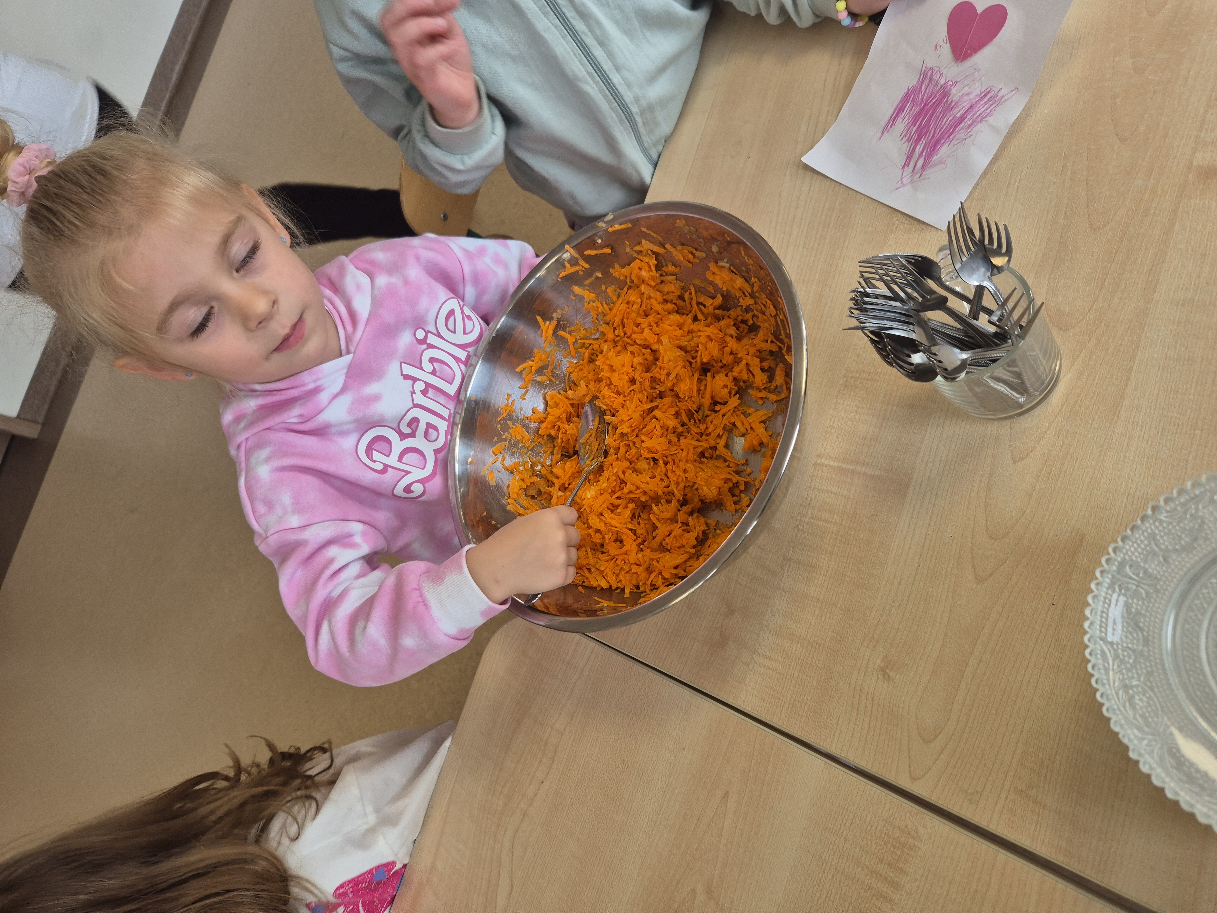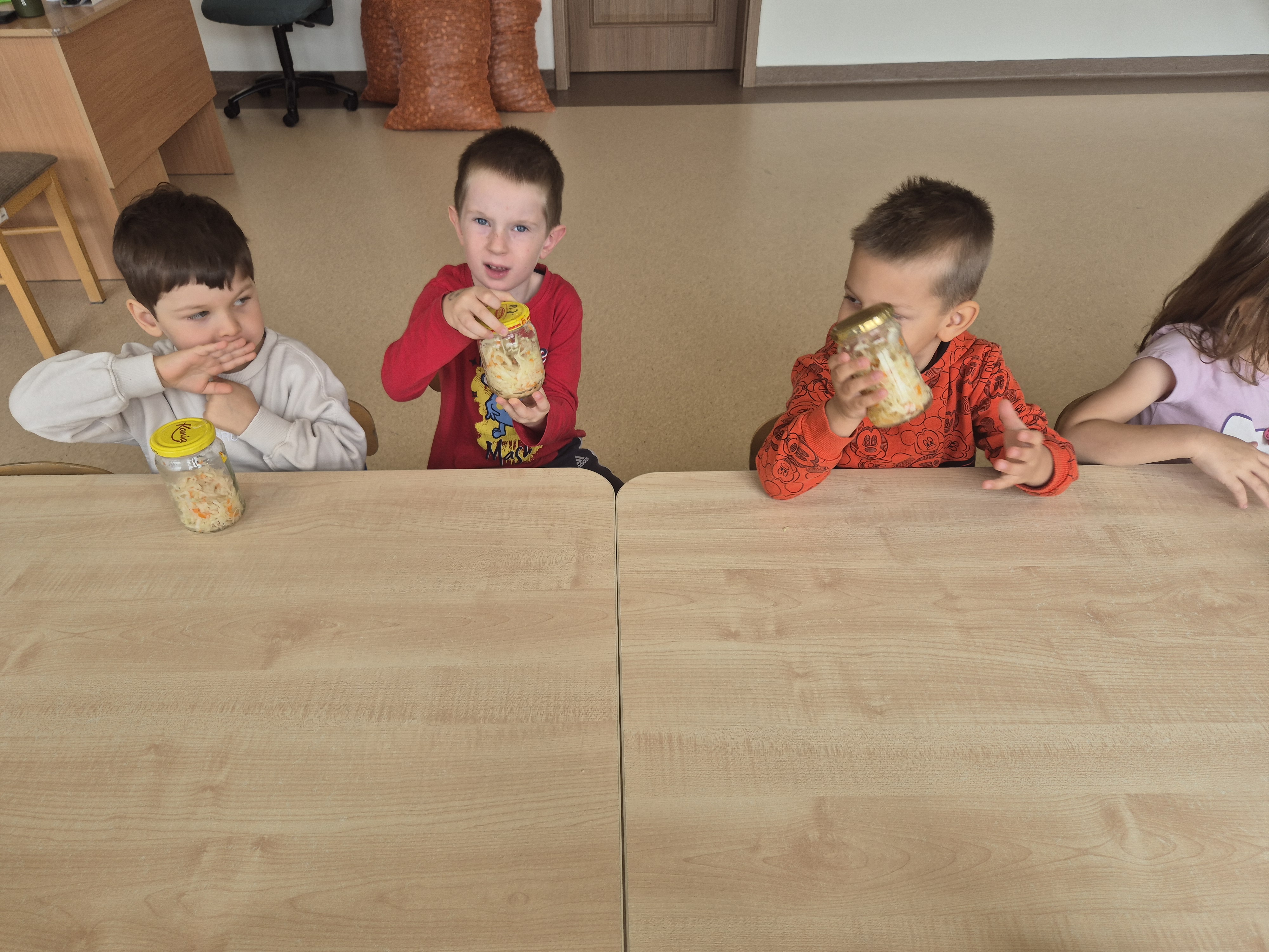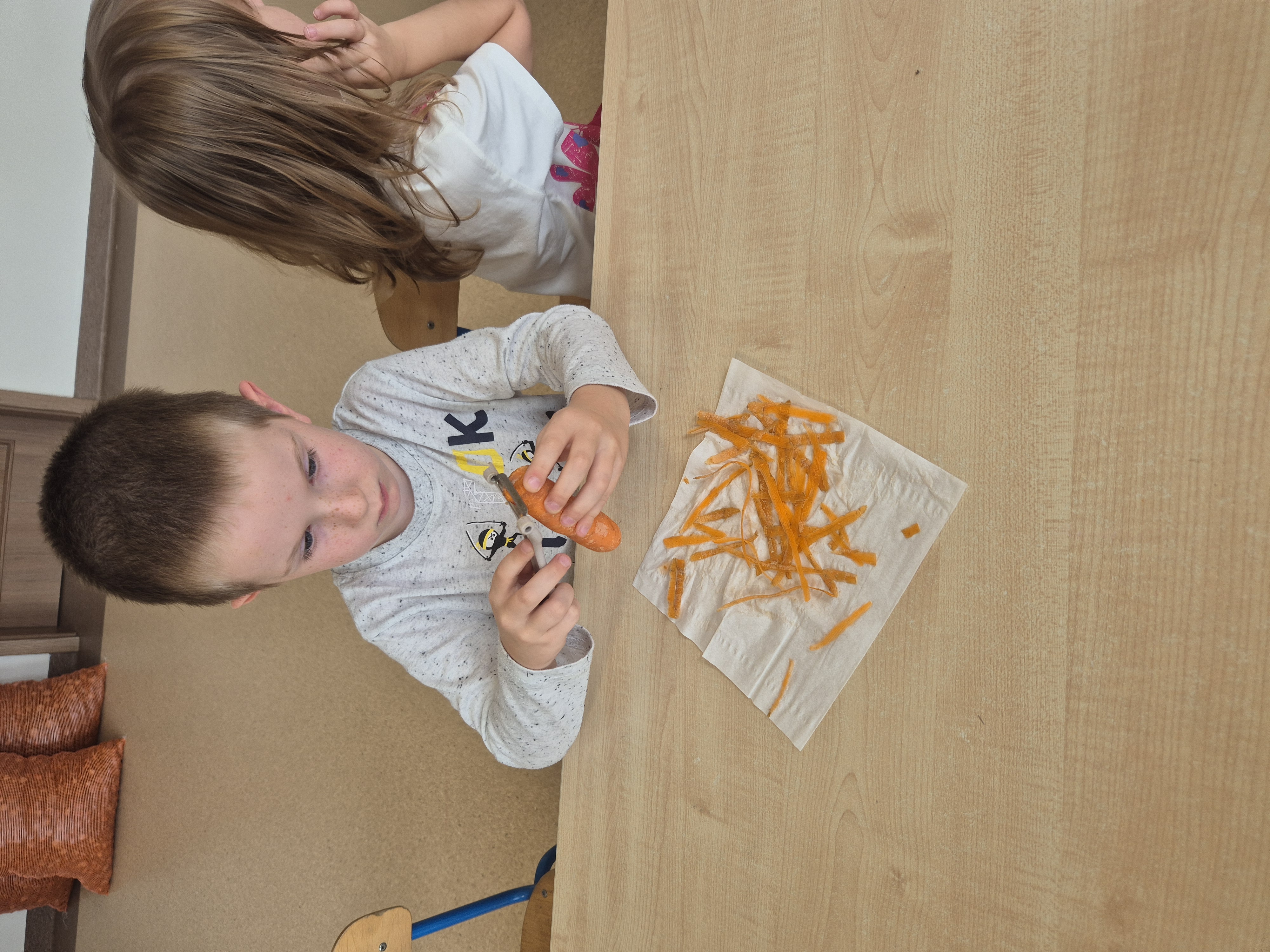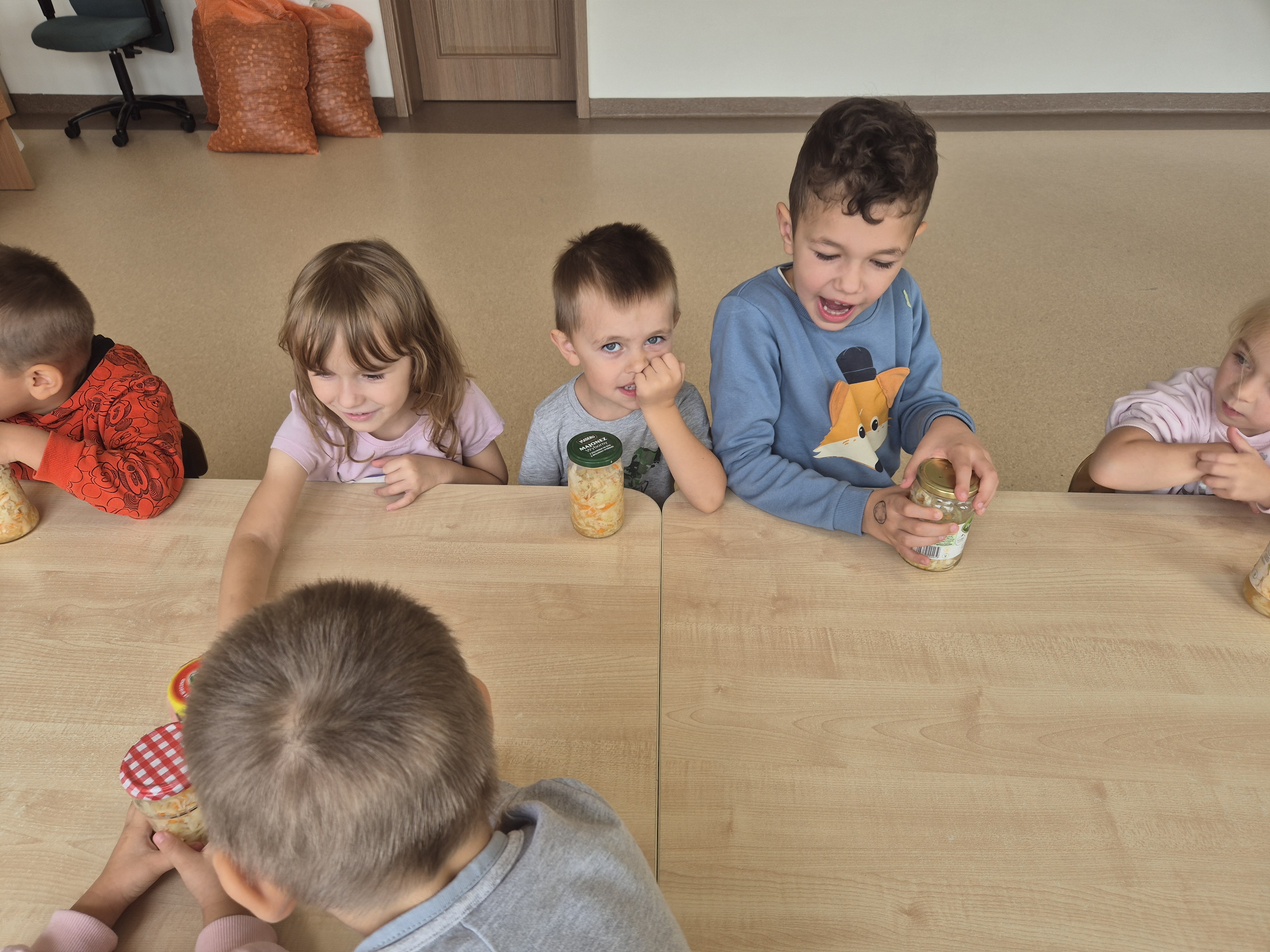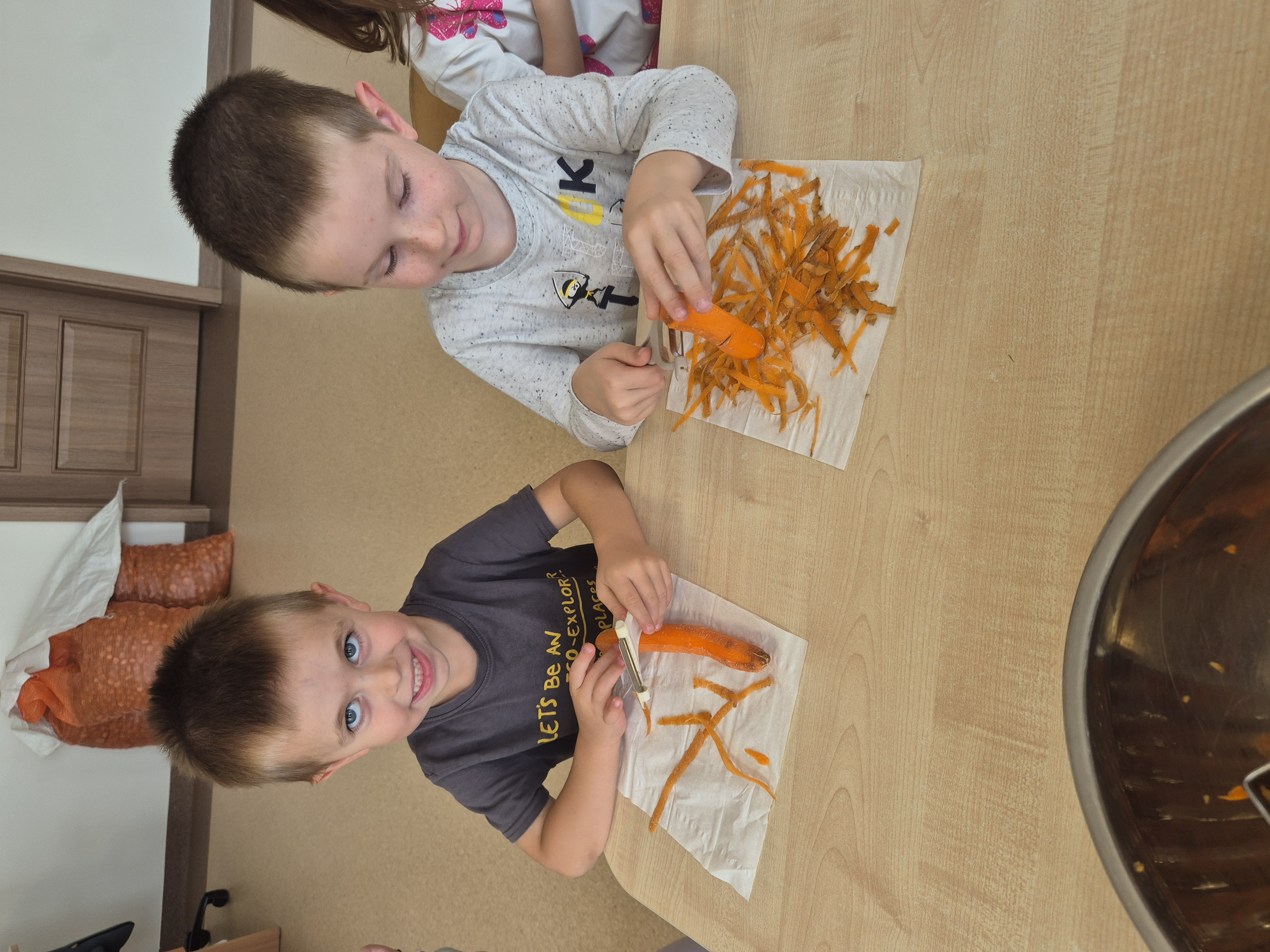 W zeszÅ‚ym tygodniu grupa Muchomorki miaÅ‚a warsztaty warzywne. Dzieci poznaÅ‚y jakie sÄ… jesienne warzywa i co można z nich zrobić. WybraliÅ›my siÄ™ do warzywniaka na zakupy, a nastÄ™pnie zrobiÅ‚y tartÄ… marchewkÄ™ i kiszonÄ… kapustÄ™. Później wspólnie doprawiaÅ‚y i próbowaÅ‚y. Dzieci podczas spożywania posiÅ‚ków w przedszkolu sÄ… codziennie zachÄ™cane do próbowania warzyw i surówek !
