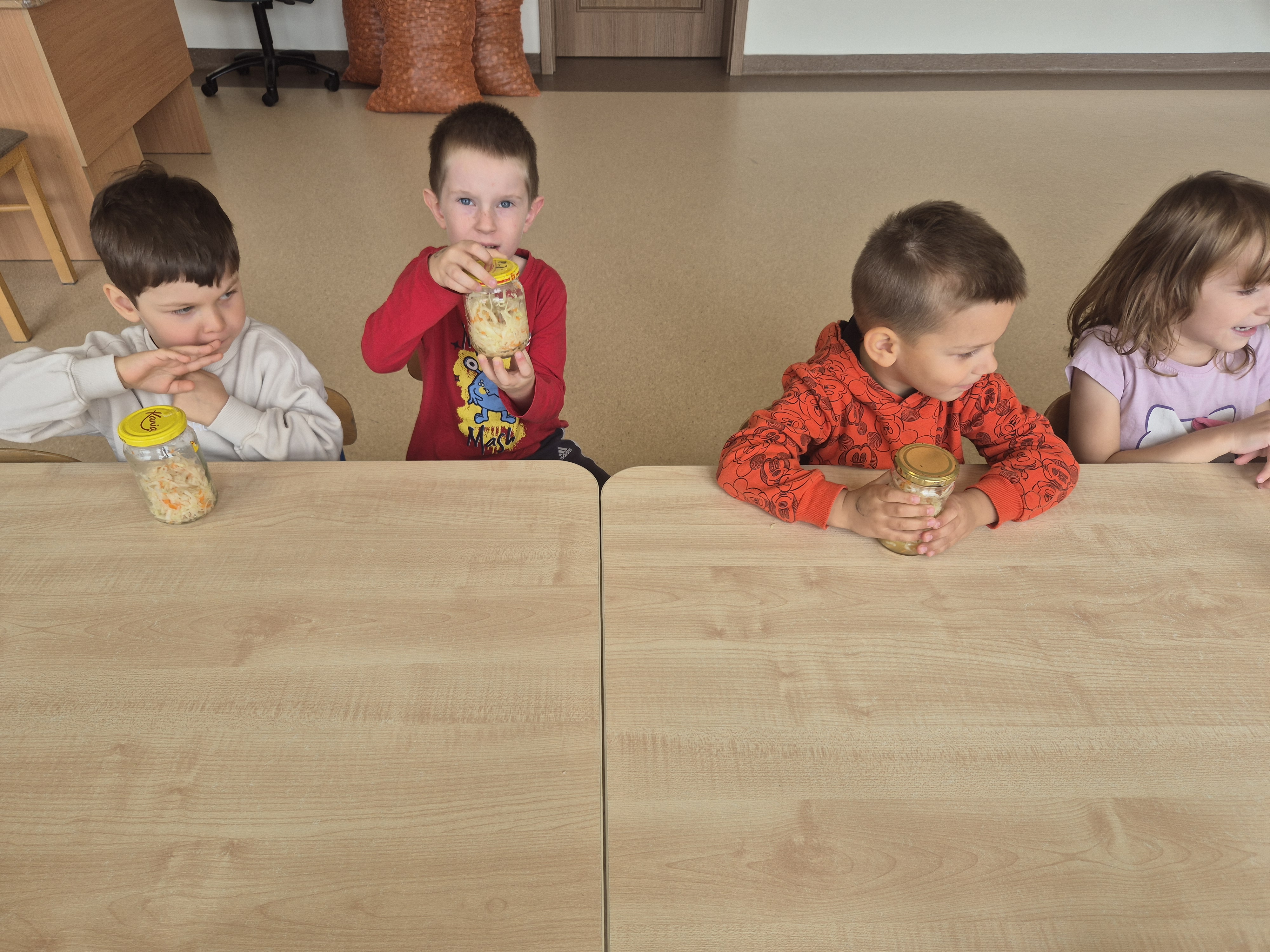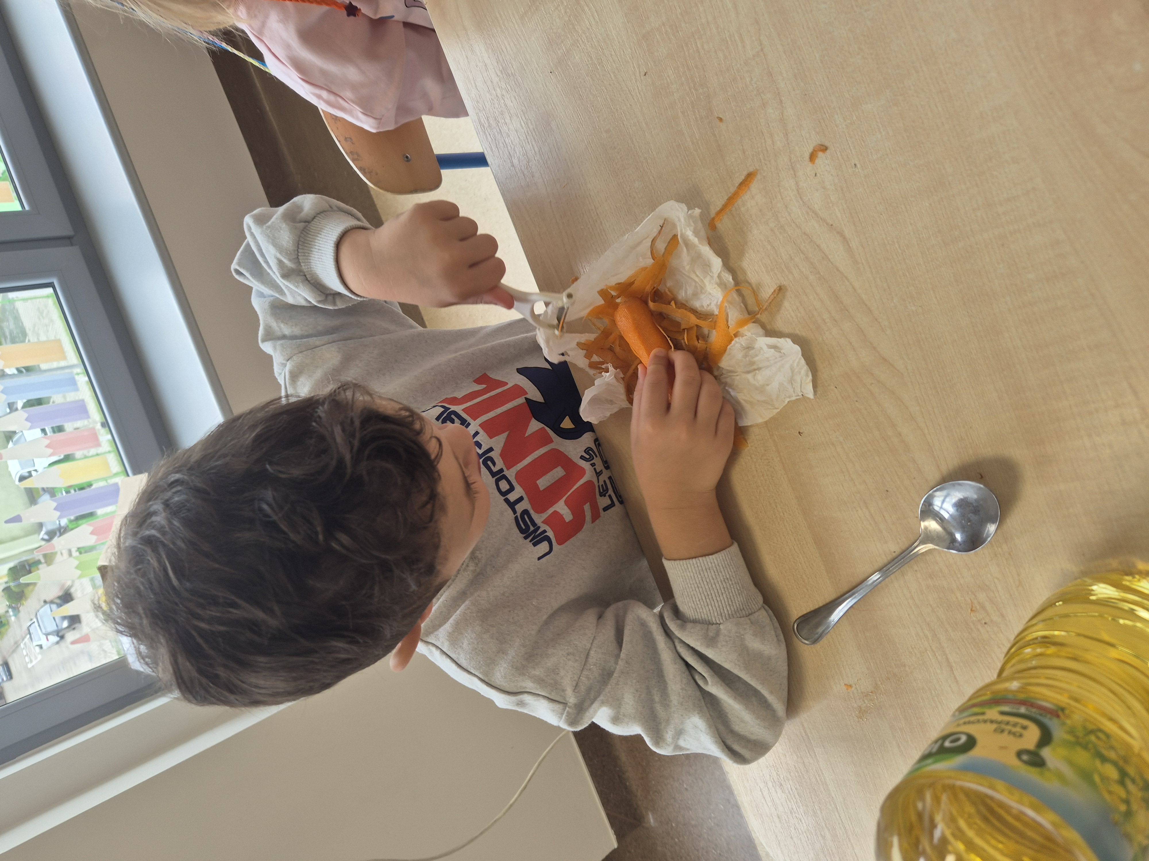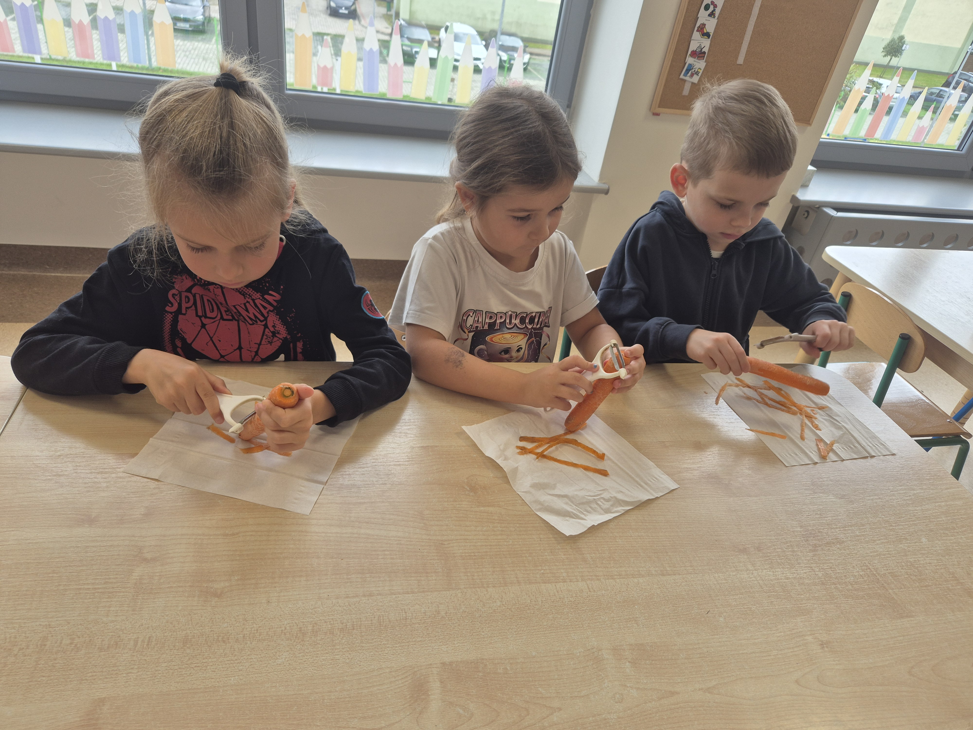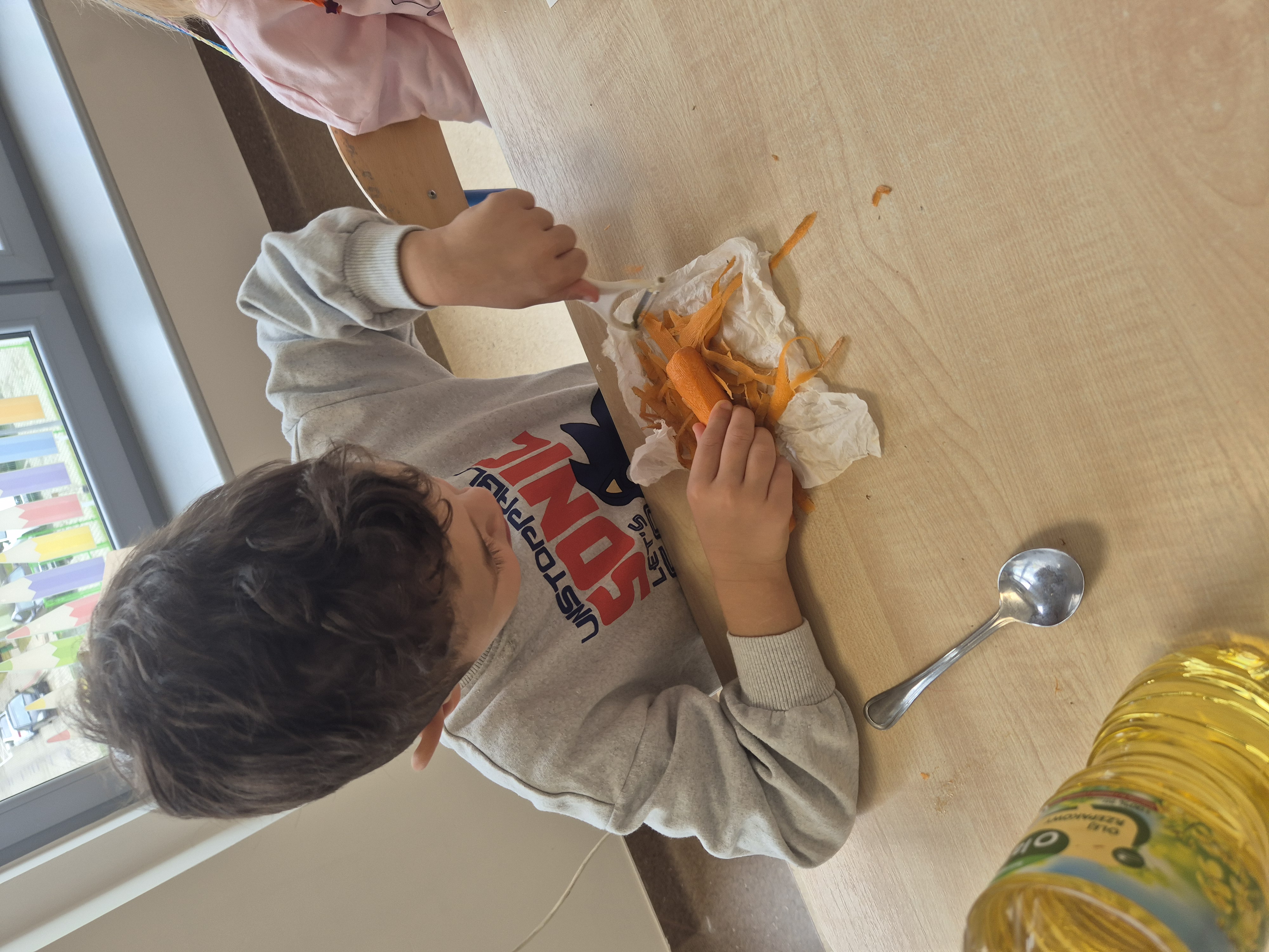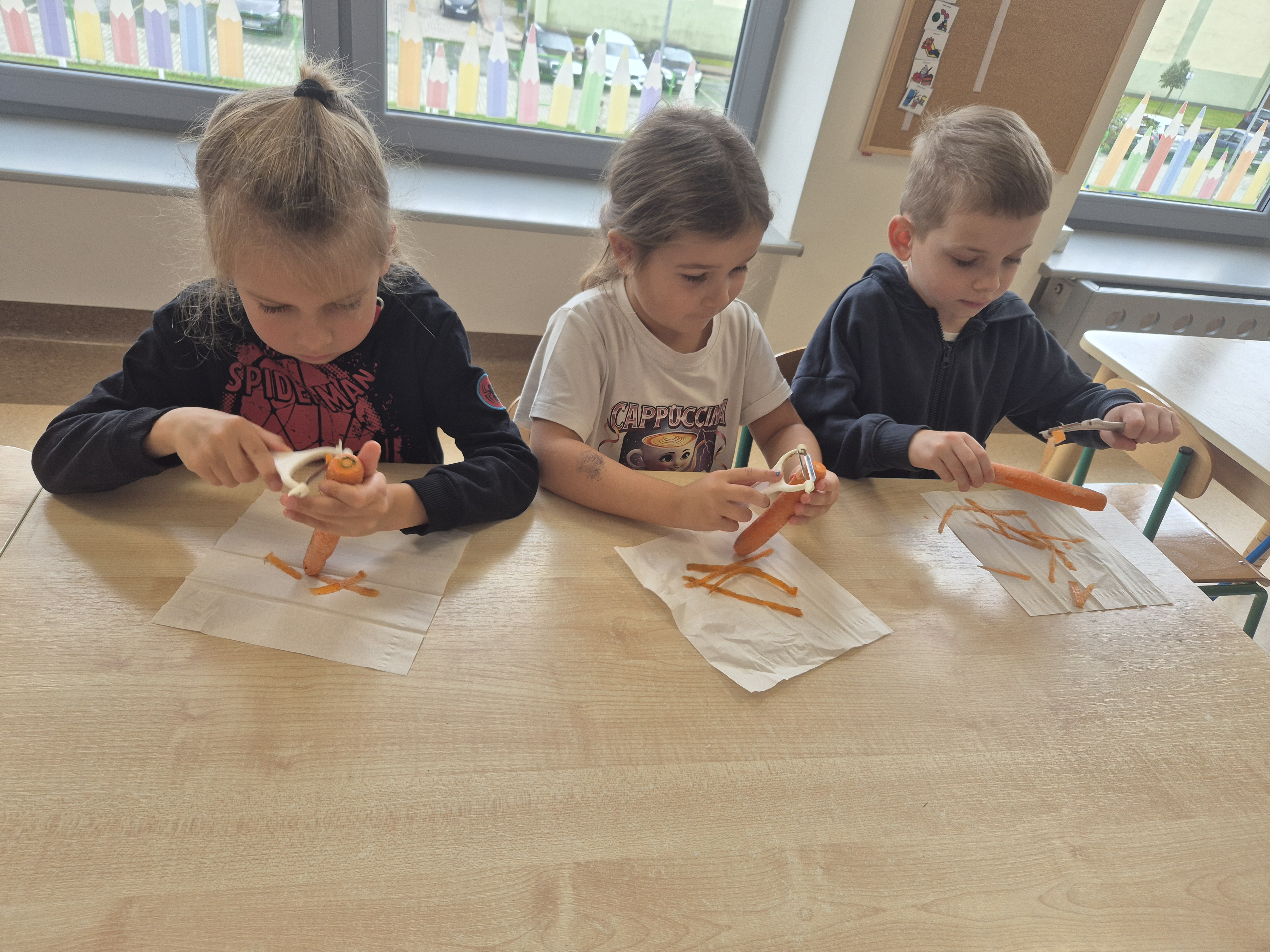 W zeszÅ‚ym tygodniu grupa Muchomorki miaÅ‚a warsztaty warzywne. Dzieci poznaÅ‚y jakie sÄ… jesienne warzywa i co można z nich zrobić. WybraliÅ›my siÄ™ do warzywniaka na zakupy, a nastÄ™pnie zrobiÅ‚y tartÄ… marchewkÄ™ i kiszonÄ… kapustÄ™. Później wspólnie doprawiaÅ‚y i próbowaÅ‚y. Dzieci podczas spożywania posiÅ‚ków w przedszkolu sÄ… codziennie zachÄ™cane do próbowania warzyw i surówek !