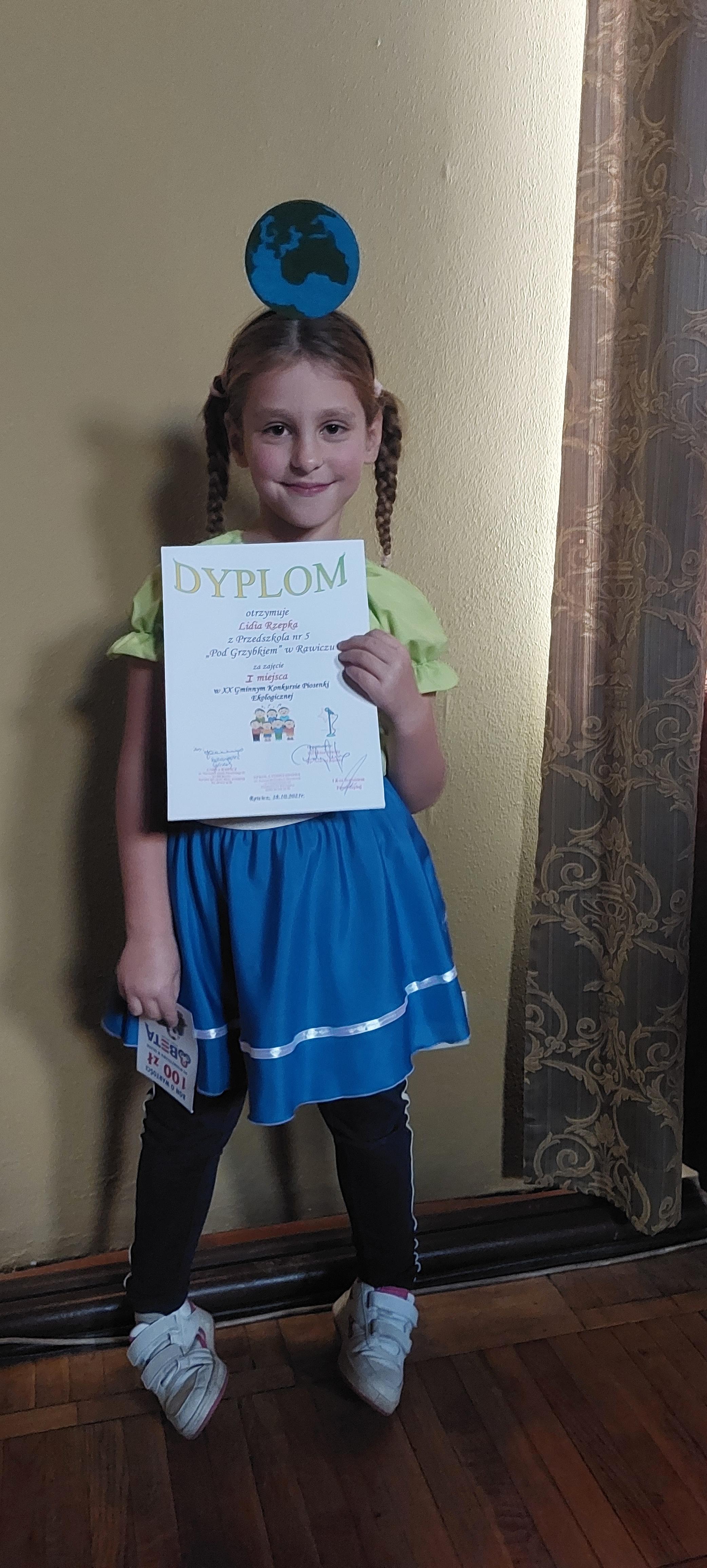 Pod koniec października w Domu Kultury w Rawiczu odbył się Gminny Konkurs Piosenki Ekologicznej. Była to już XX edycja. Wszyscy wykonawcy przygotowali utwory o tematyce przyrodniczej, ukazując troskę o planetę w sposób pełen wrażliwości i kreatywności. Na scenie pojawiła się również Nasza koleżanka z grupy- Lidka. Zaprezentowała piosenkę pt. "Ziemia, wyspa zielona". Lidka odniosła bardzo ogromny sukces, zajmując I miejsce w kategorii soliści. Wielkie brawa i gratulacje dla Lidki. Życzymy dalszych sukcesów!