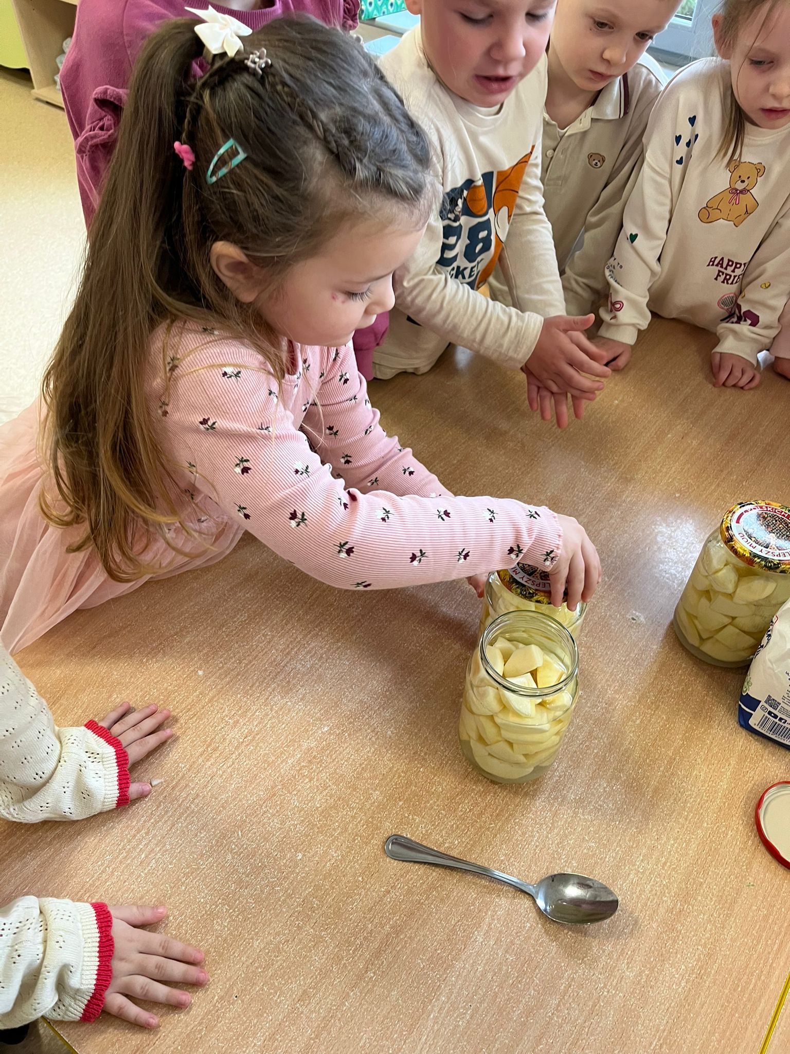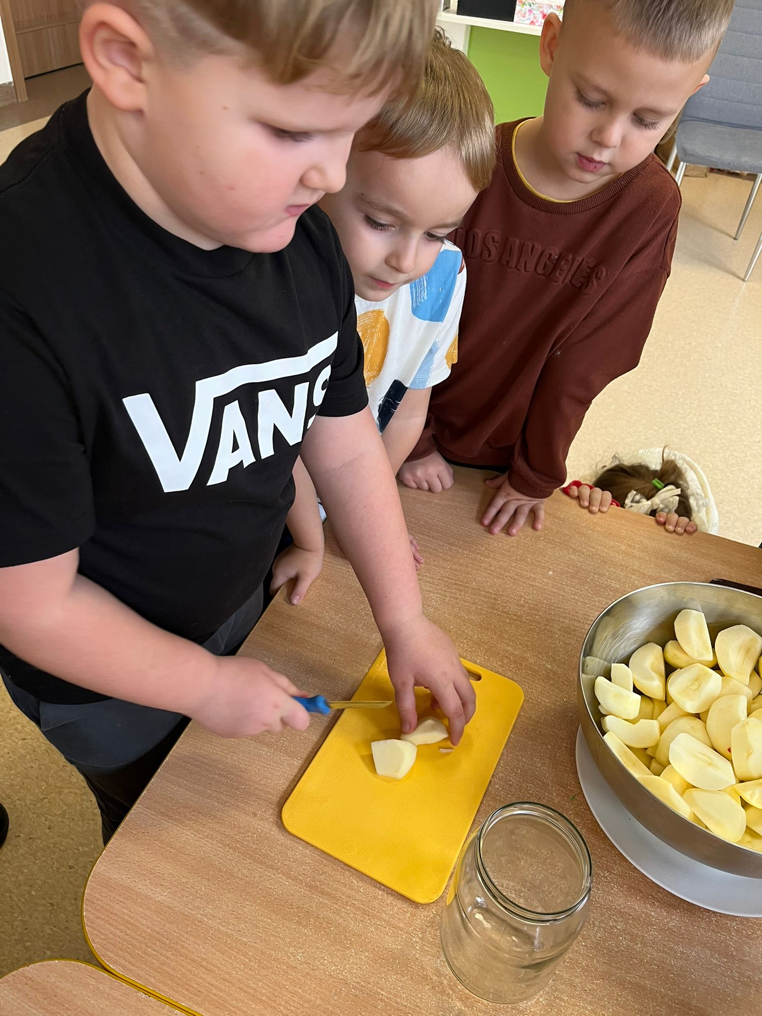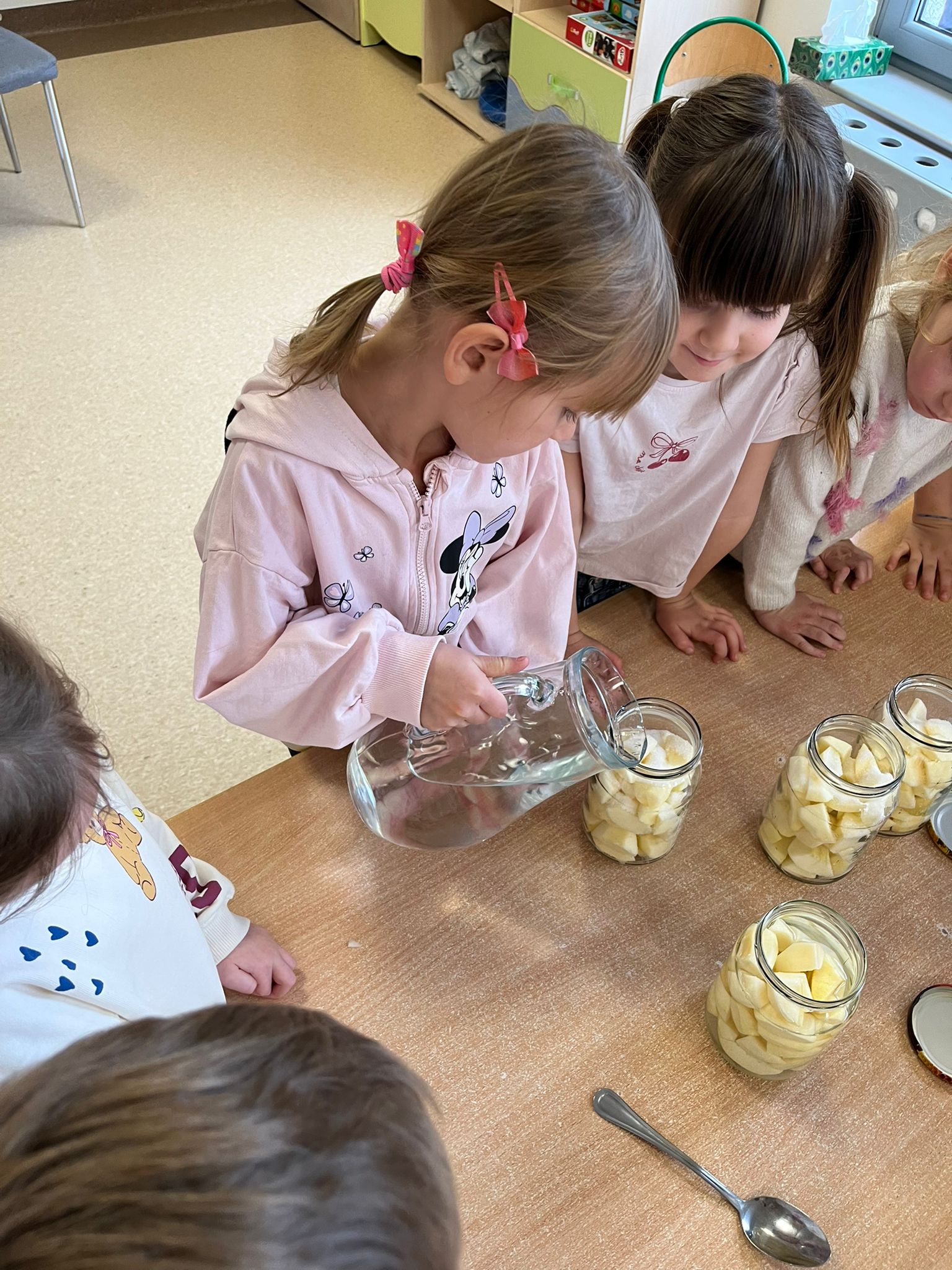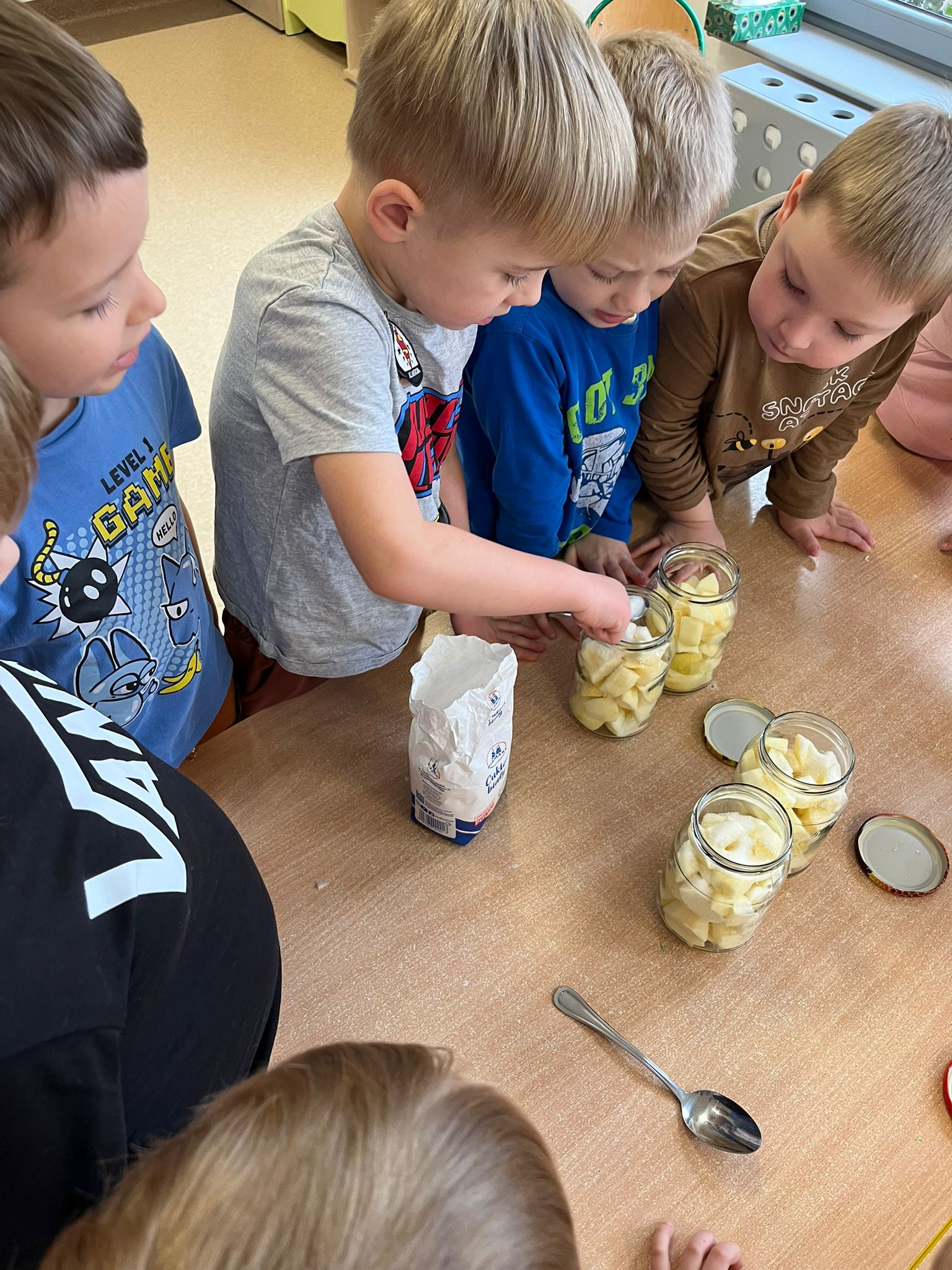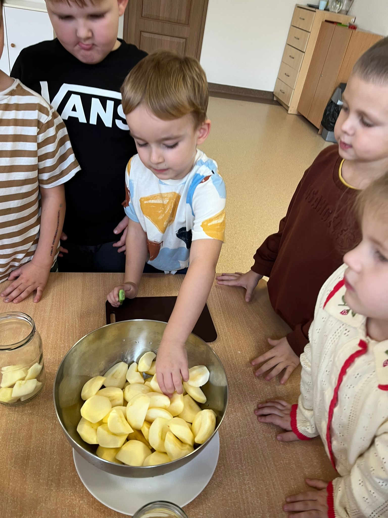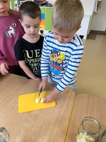 Zgodnie z naszym programem kulinarnym Wiem, co jem przyrządzamy coś zdrowego. Tym razem był to kompot. Dzieci z dużym zaangażowaniem pomagały i za kilka dni kompot przejdzie testy smaku.