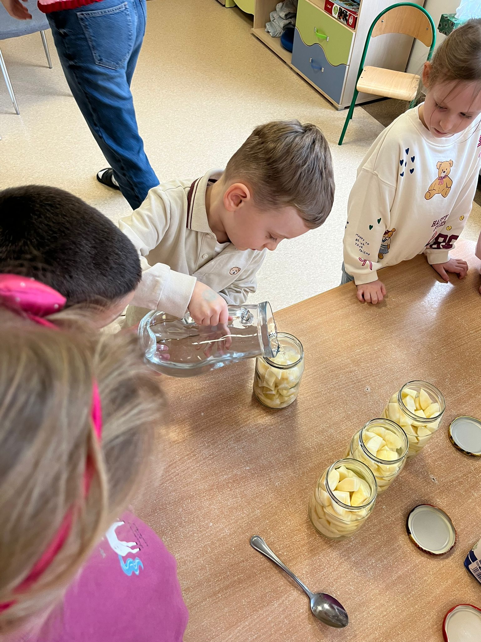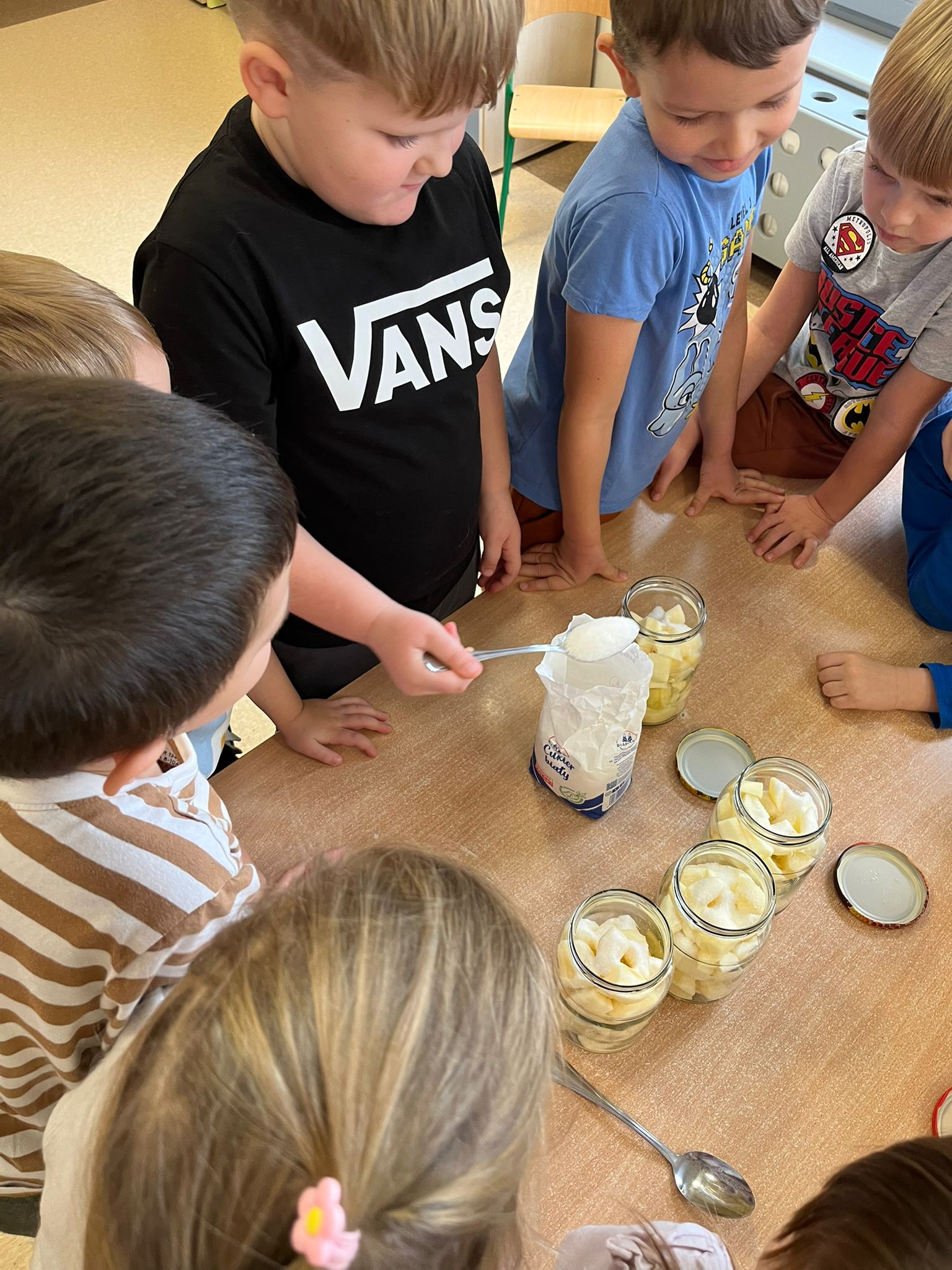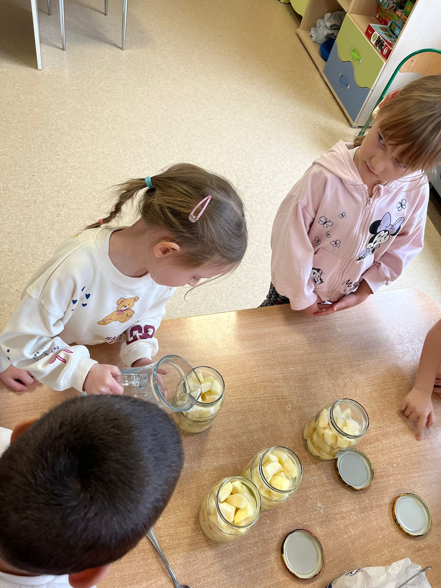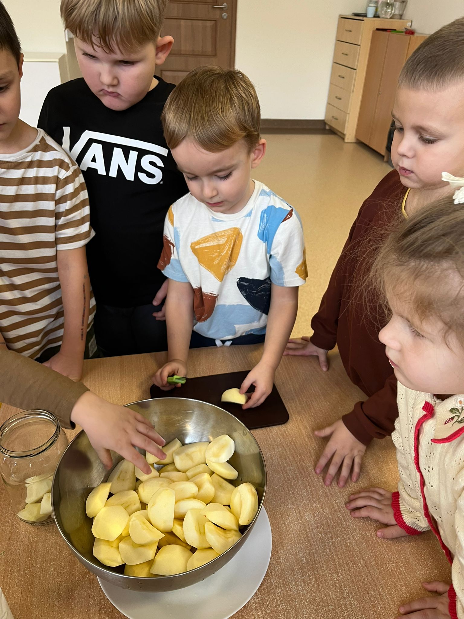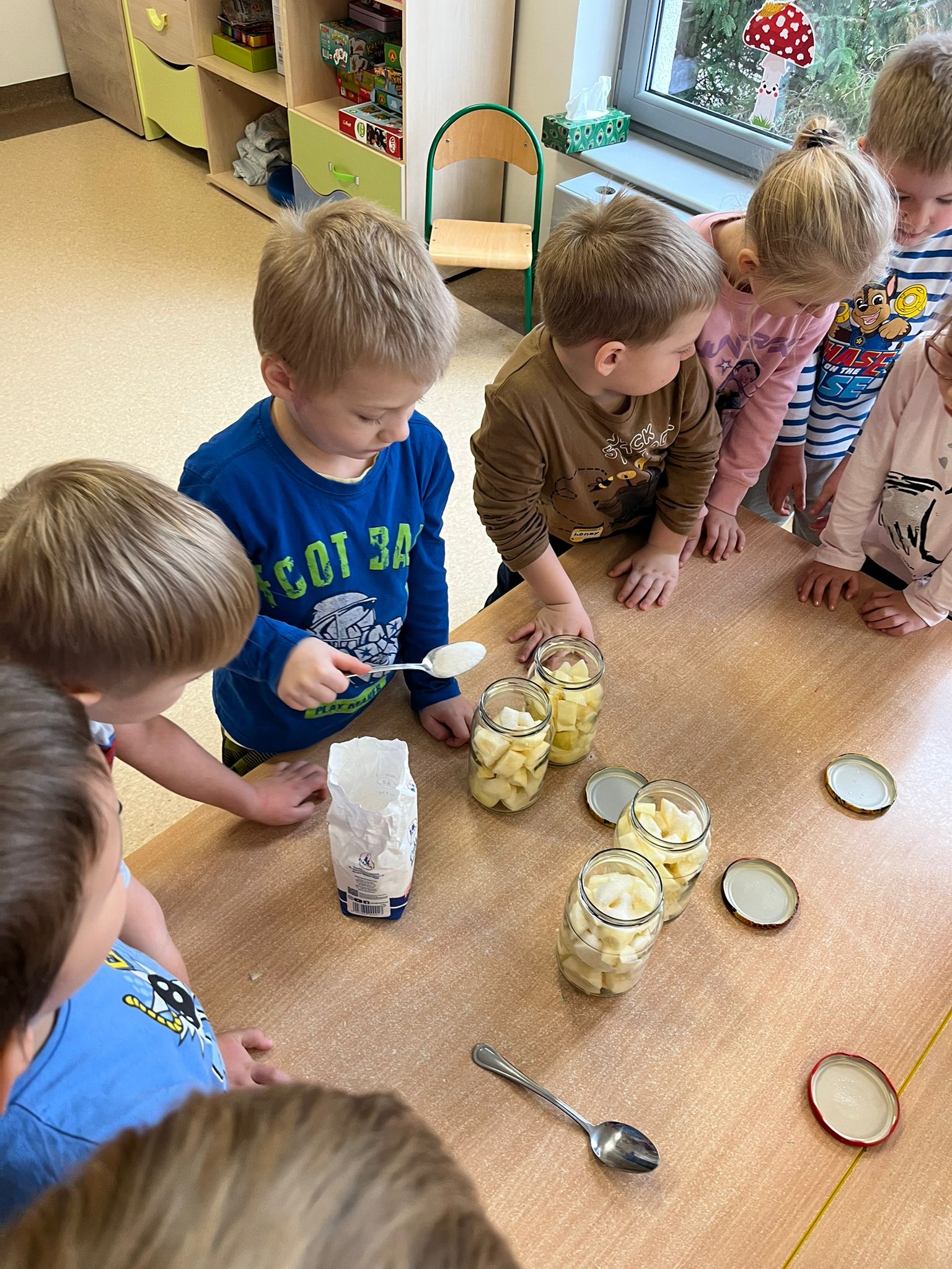 Zgodnie z naszym programem kulinarnym Wiem, co jem przyrządzamy coś zdrowego. Tym razem był to kompot. Dzieci z dużym zaangażowaniem pomagały i za kilka dni kompot przejdzie testy smaku.