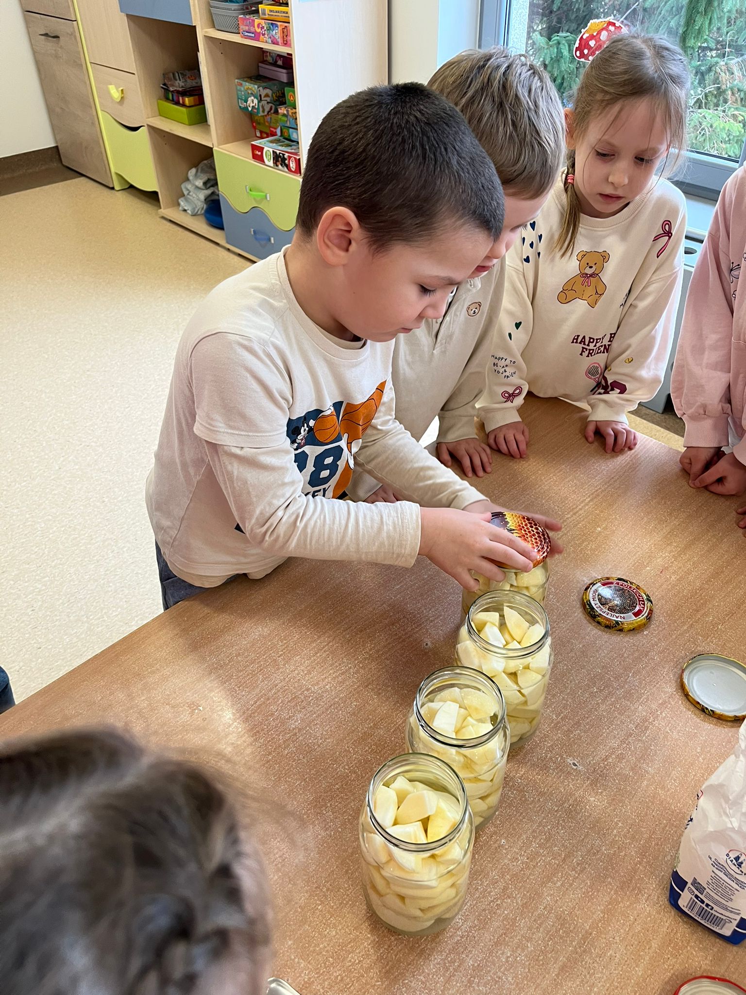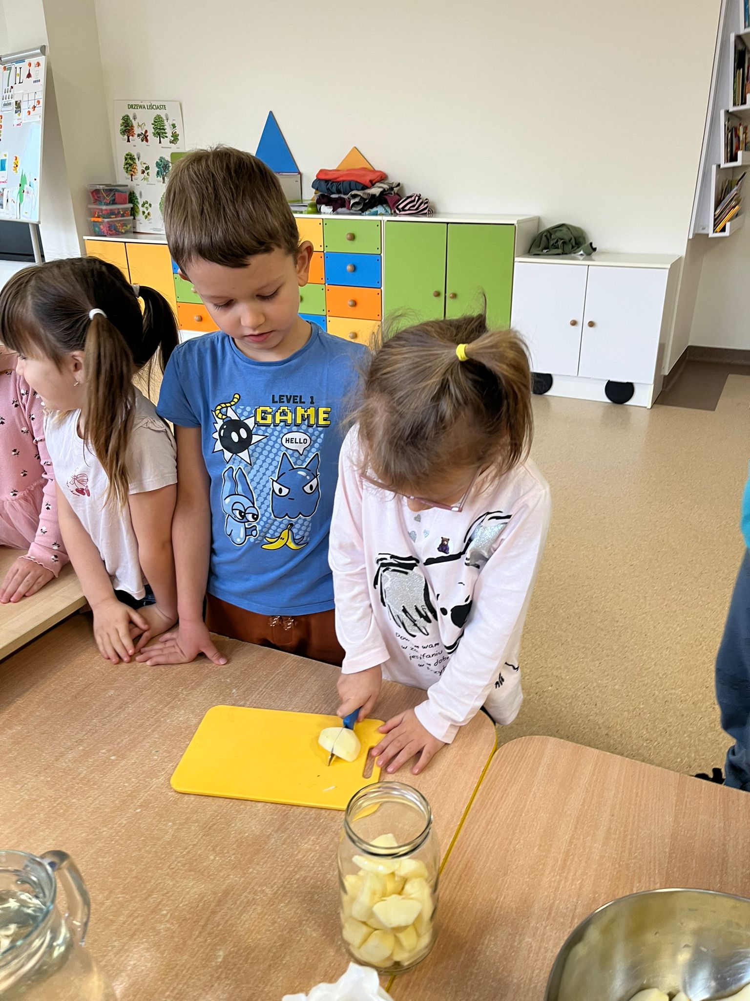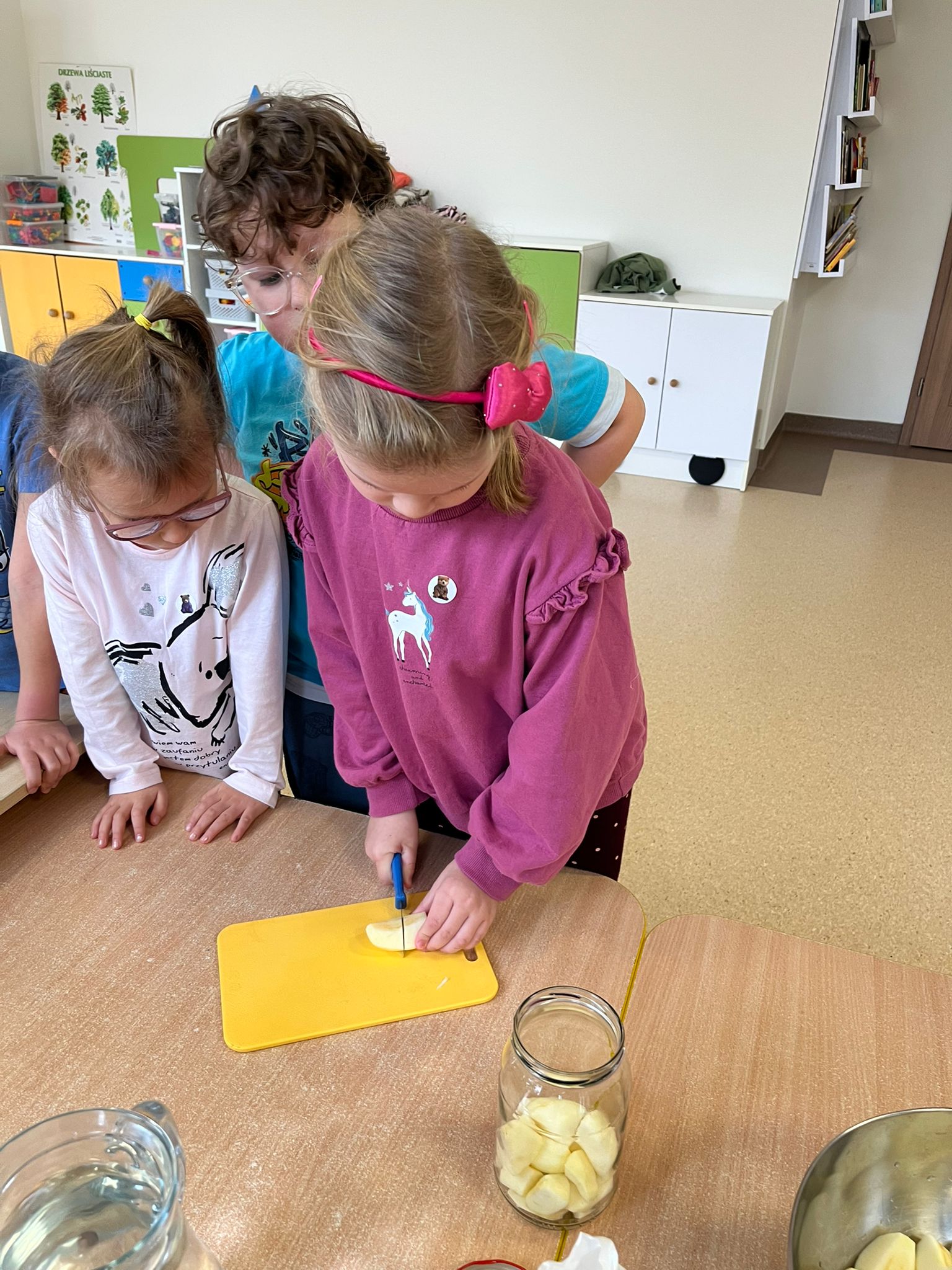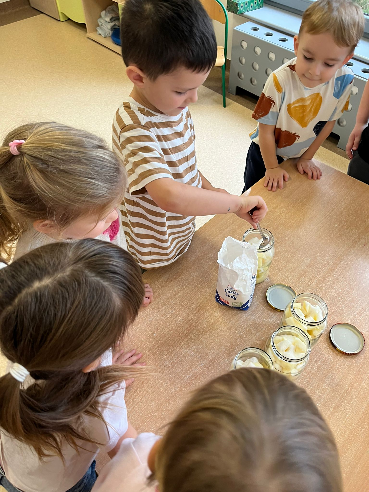 Zgodnie z naszym programem kulinarnym Wiem, co jem przyrządzamy coś zdrowego. Tym razem był to kompot. Dzieci z dużym zaangażowaniem pomagały i za kilka dni kompot przejdzie testy smaku.