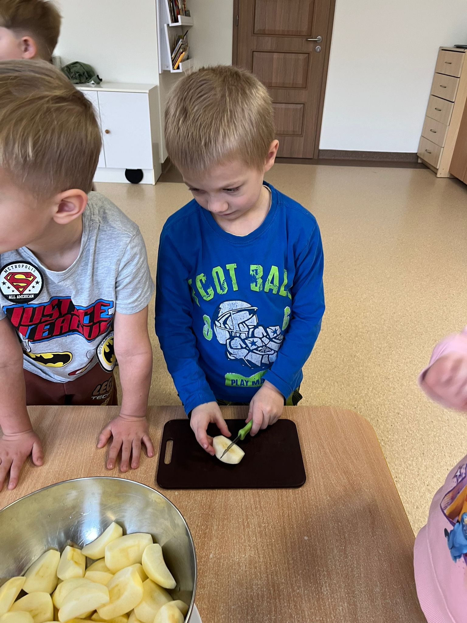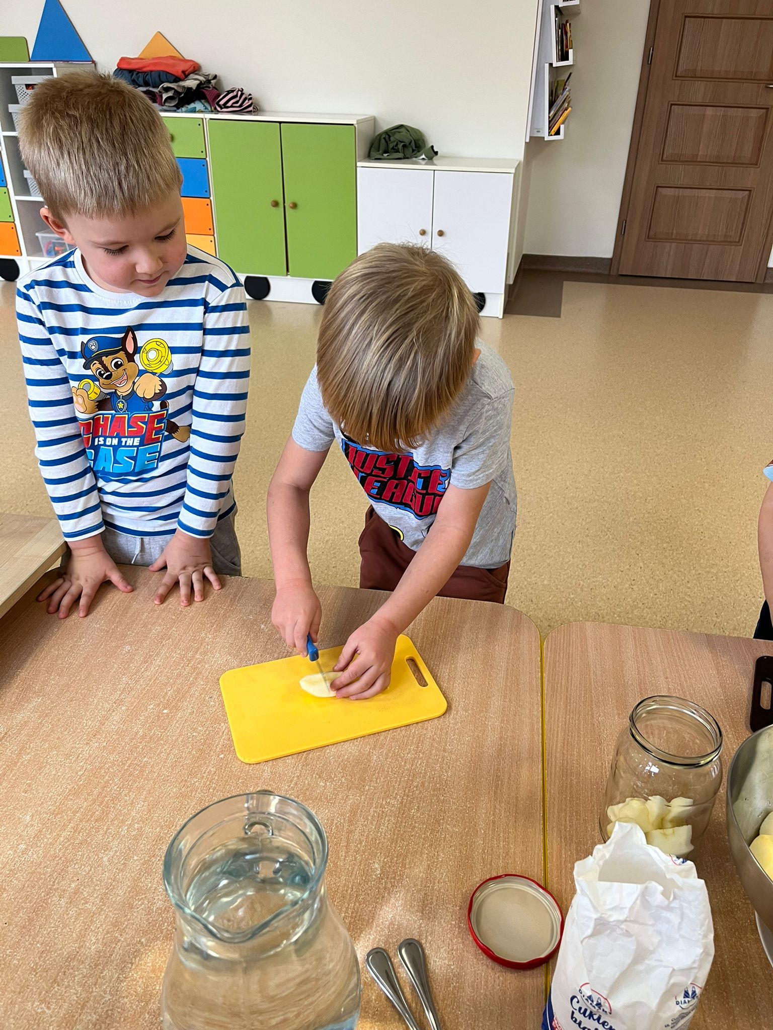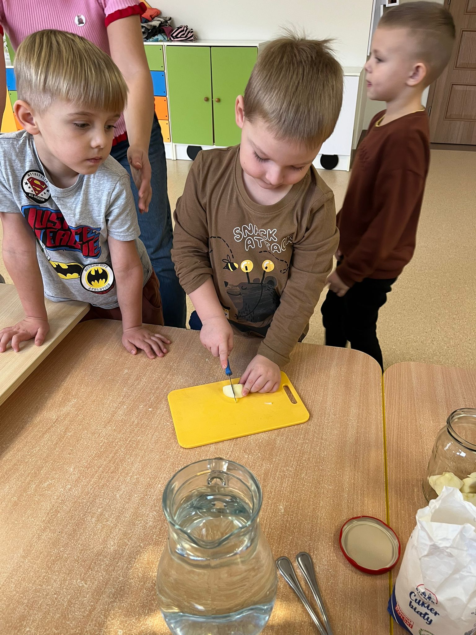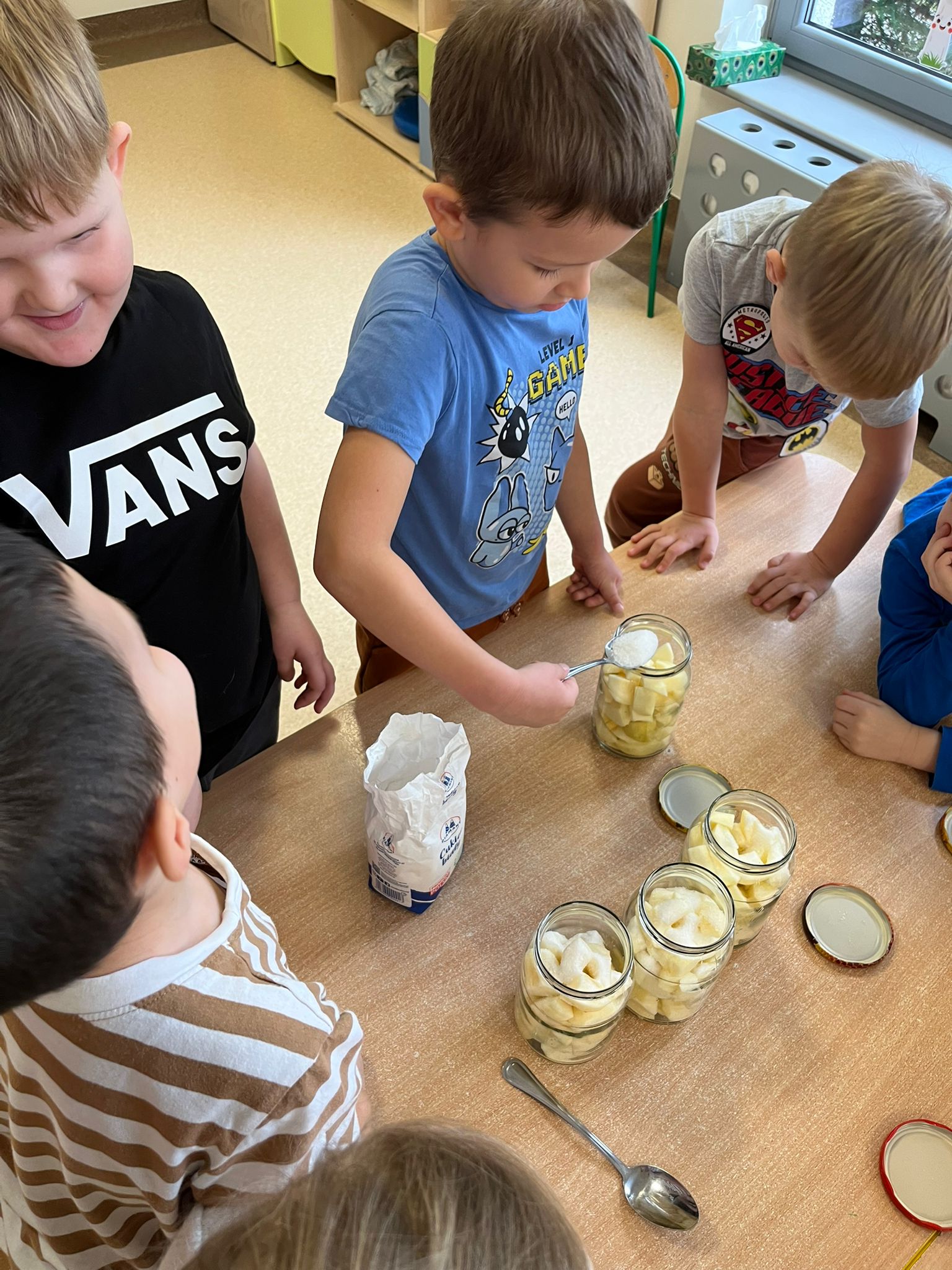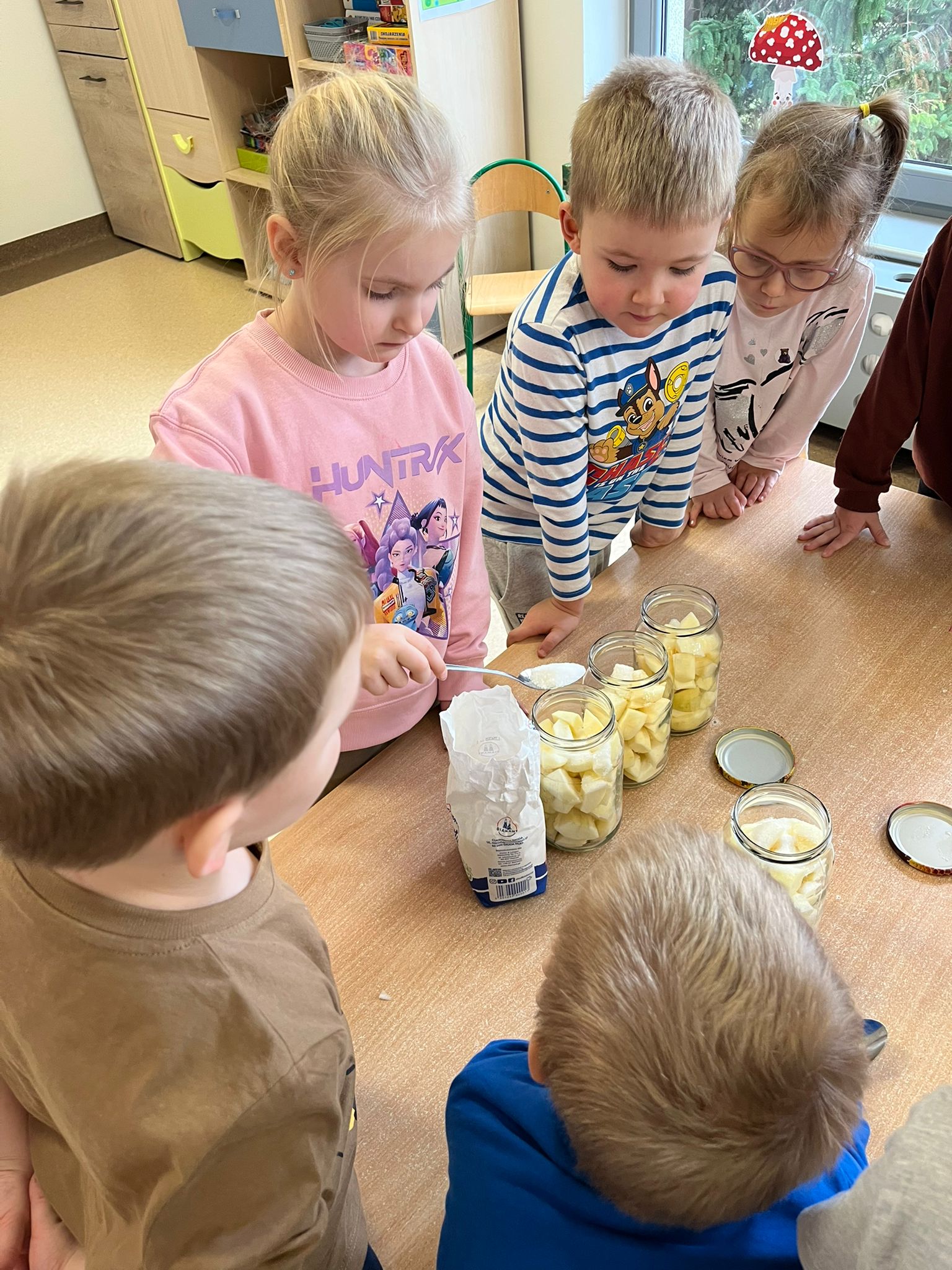 Zgodnie z naszym programem kulinarnym Wiem, co jem przyrządzamy coś zdrowego. Tym razem był to kompot. Dzieci z dużym zaangażowaniem pomagały i za kilka dni kompot przejdzie testy smaku.