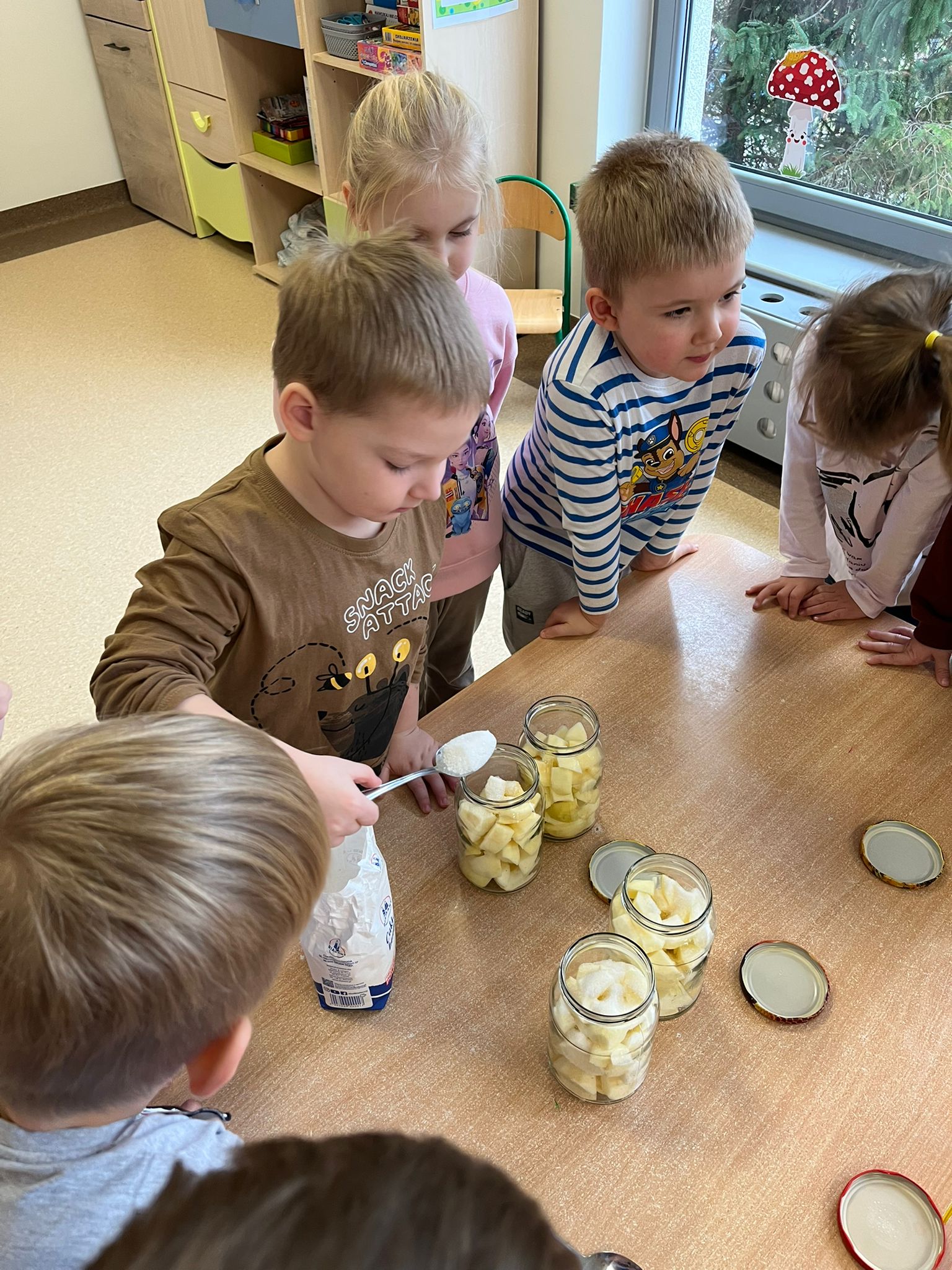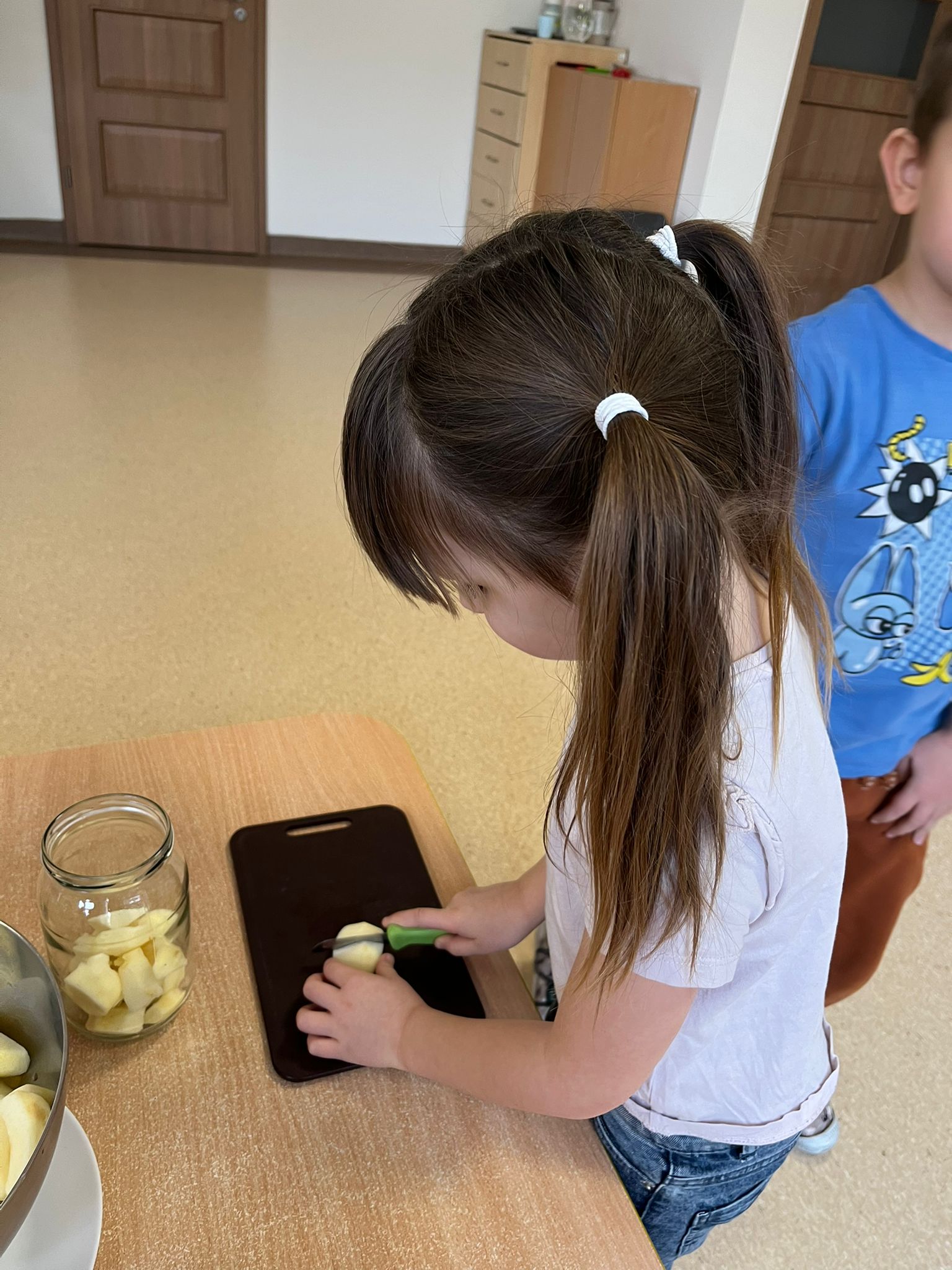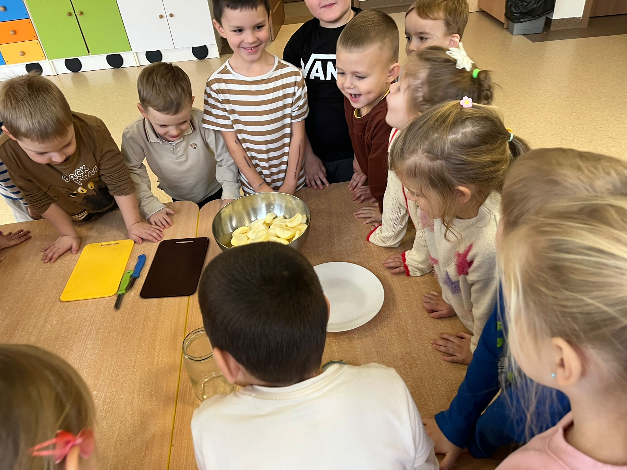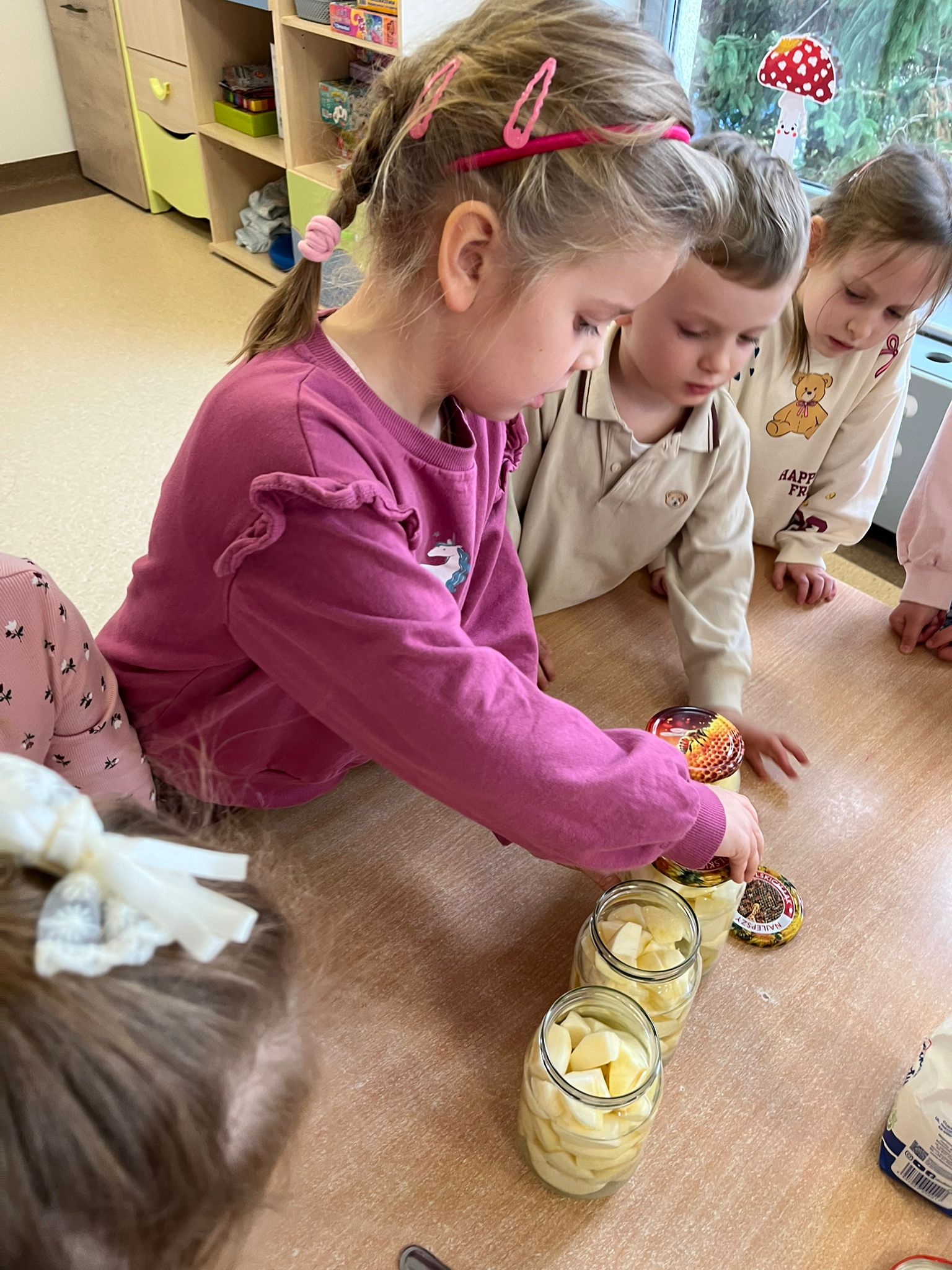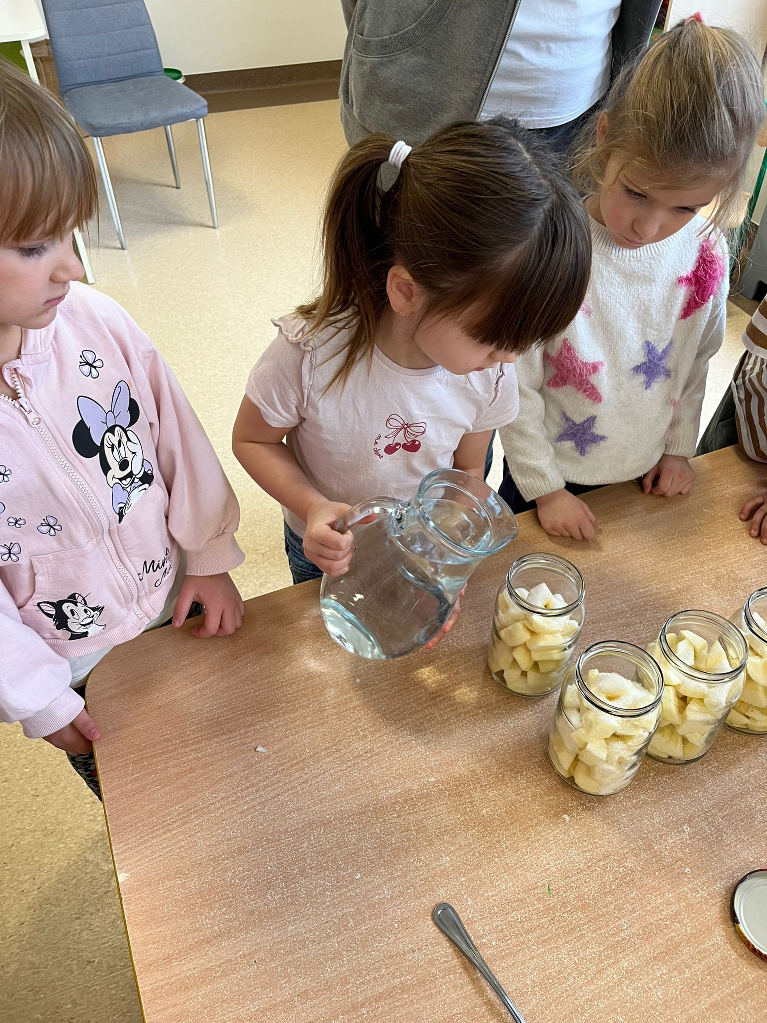 Zgodnie z naszym programem kulinarnym Wiem, co jem przyrządzamy coś zdrowego. Tym razem był to kompot. Dzieci z dużym zaangażowaniem pomagały i za kilka dni kompot przejdzie testy smaku.