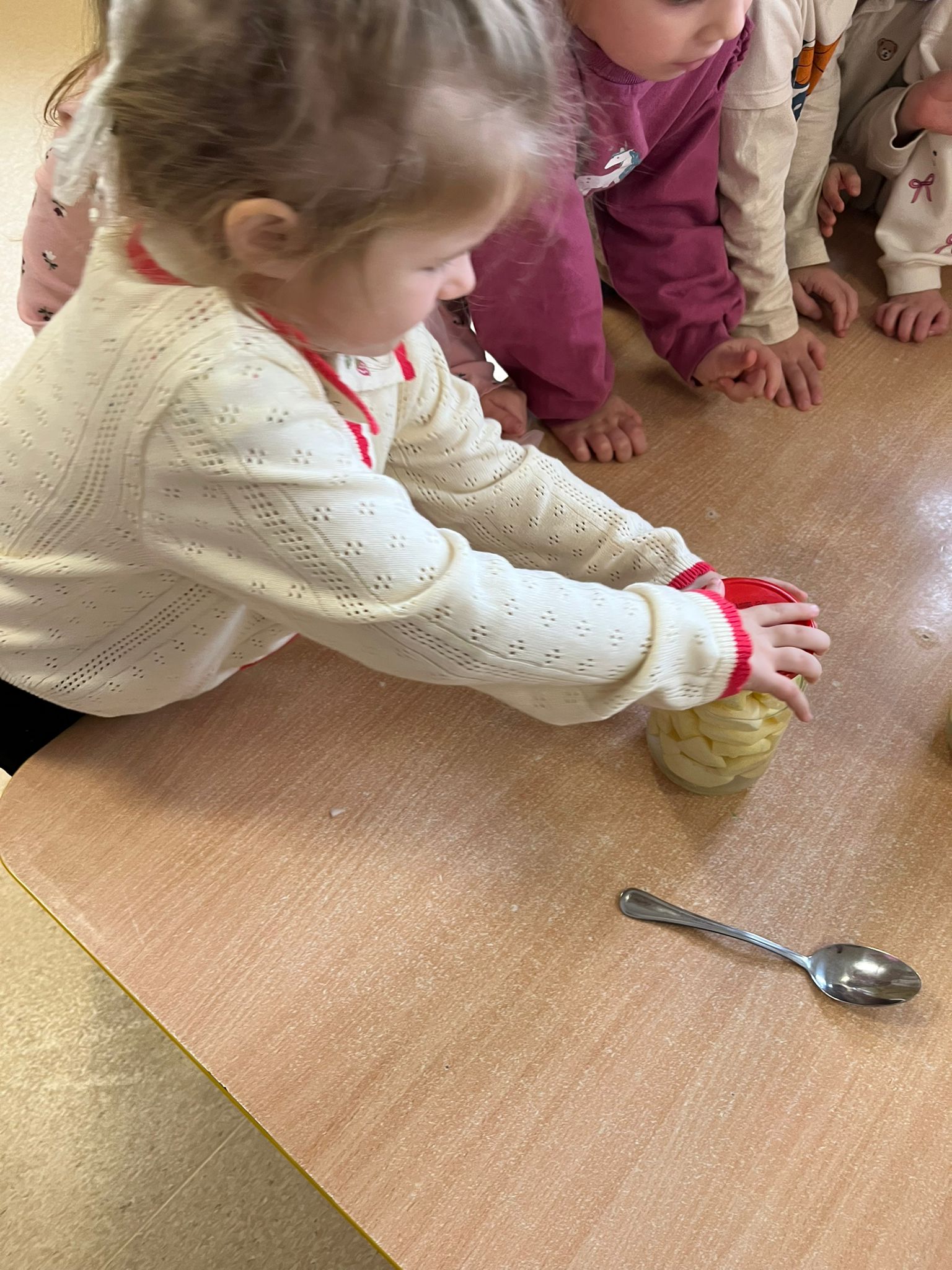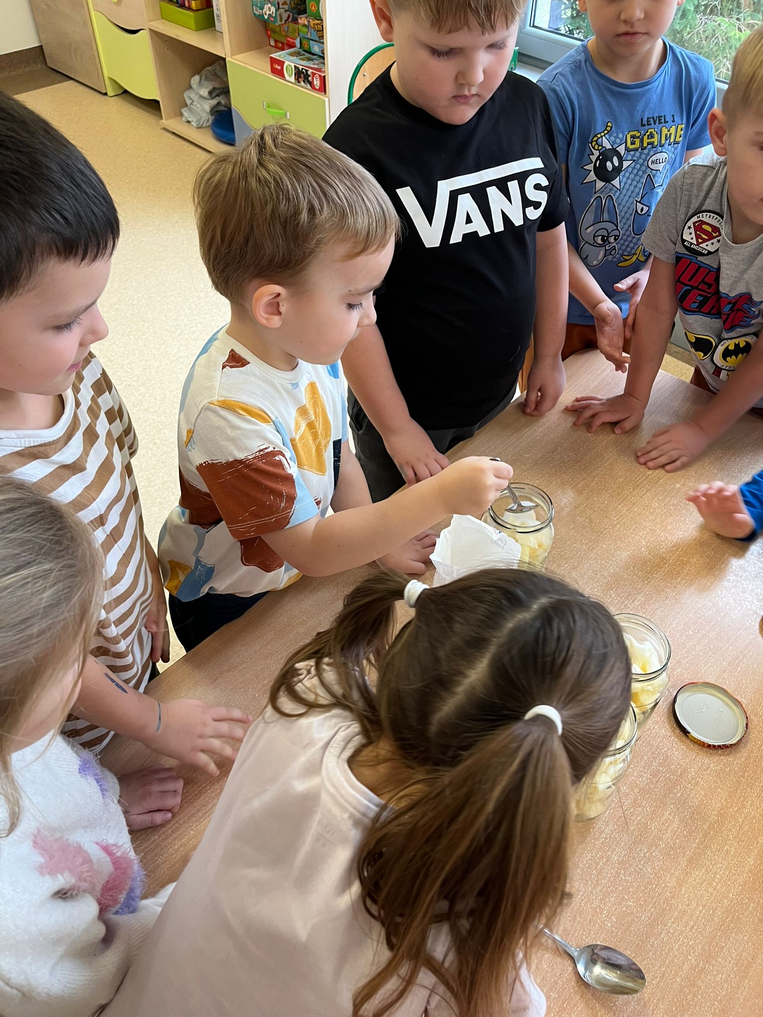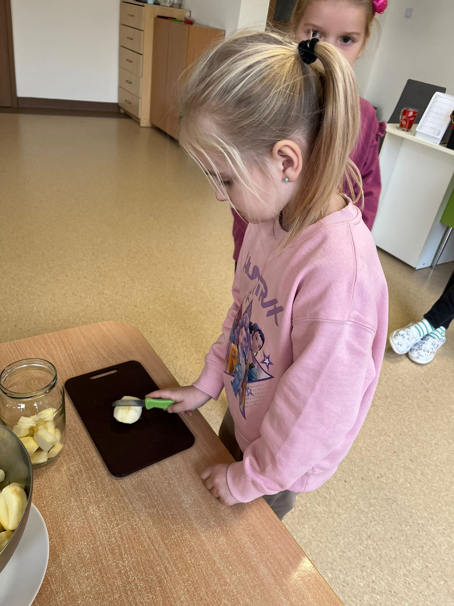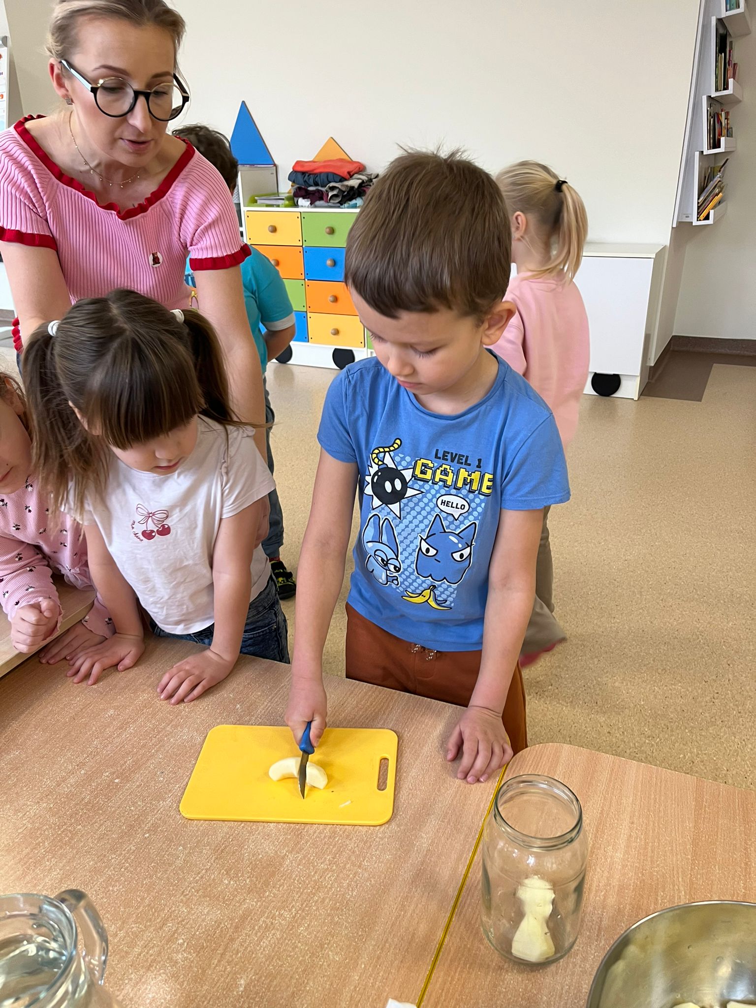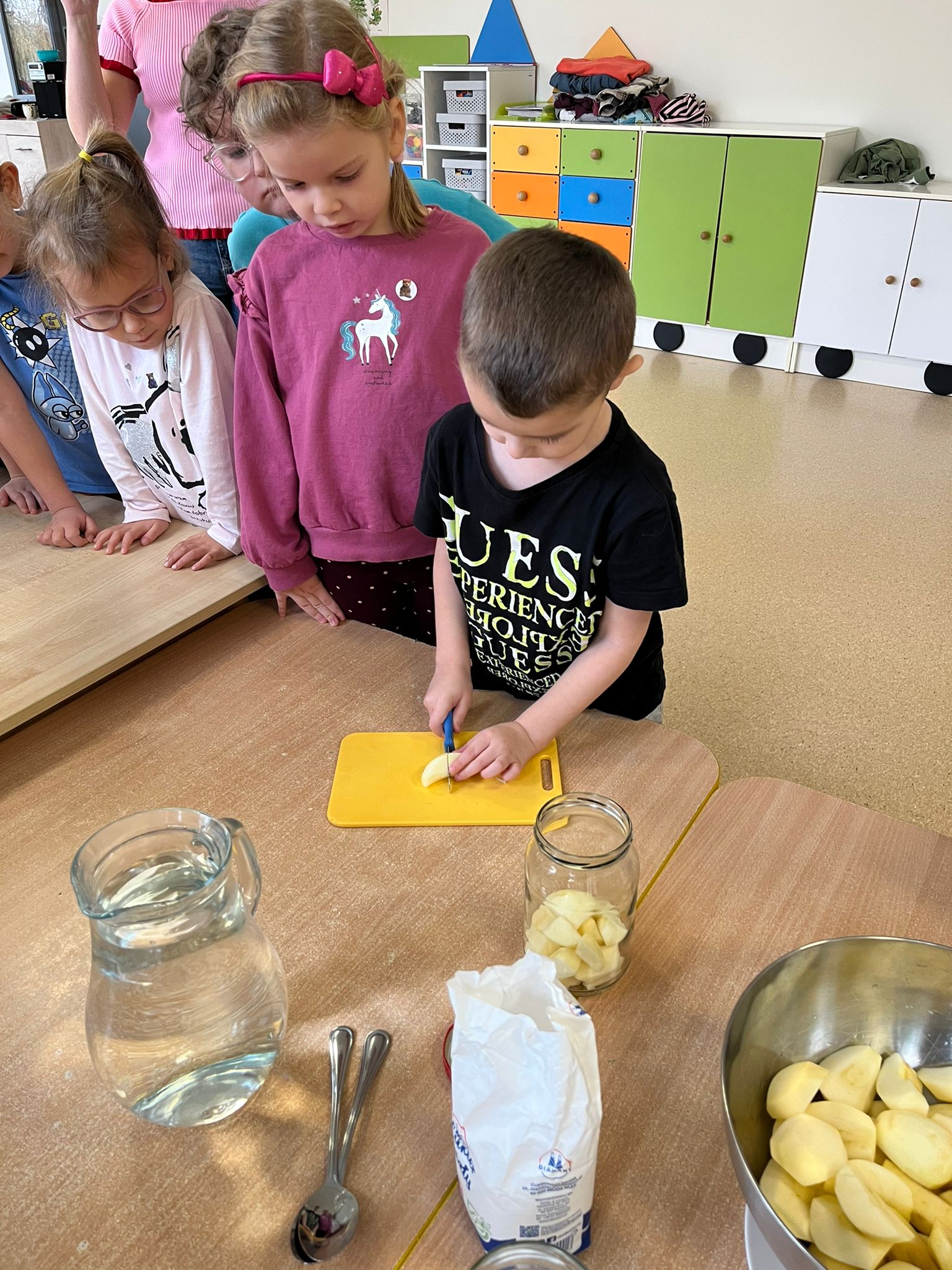 Zgodnie z naszym programem kulinarnym Wiem, co jem przyrządzamy coś zdrowego. Tym razem był to kompot. Dzieci z dużym zaangażowaniem pomagały i za kilka dni kompot przejdzie testy smaku.