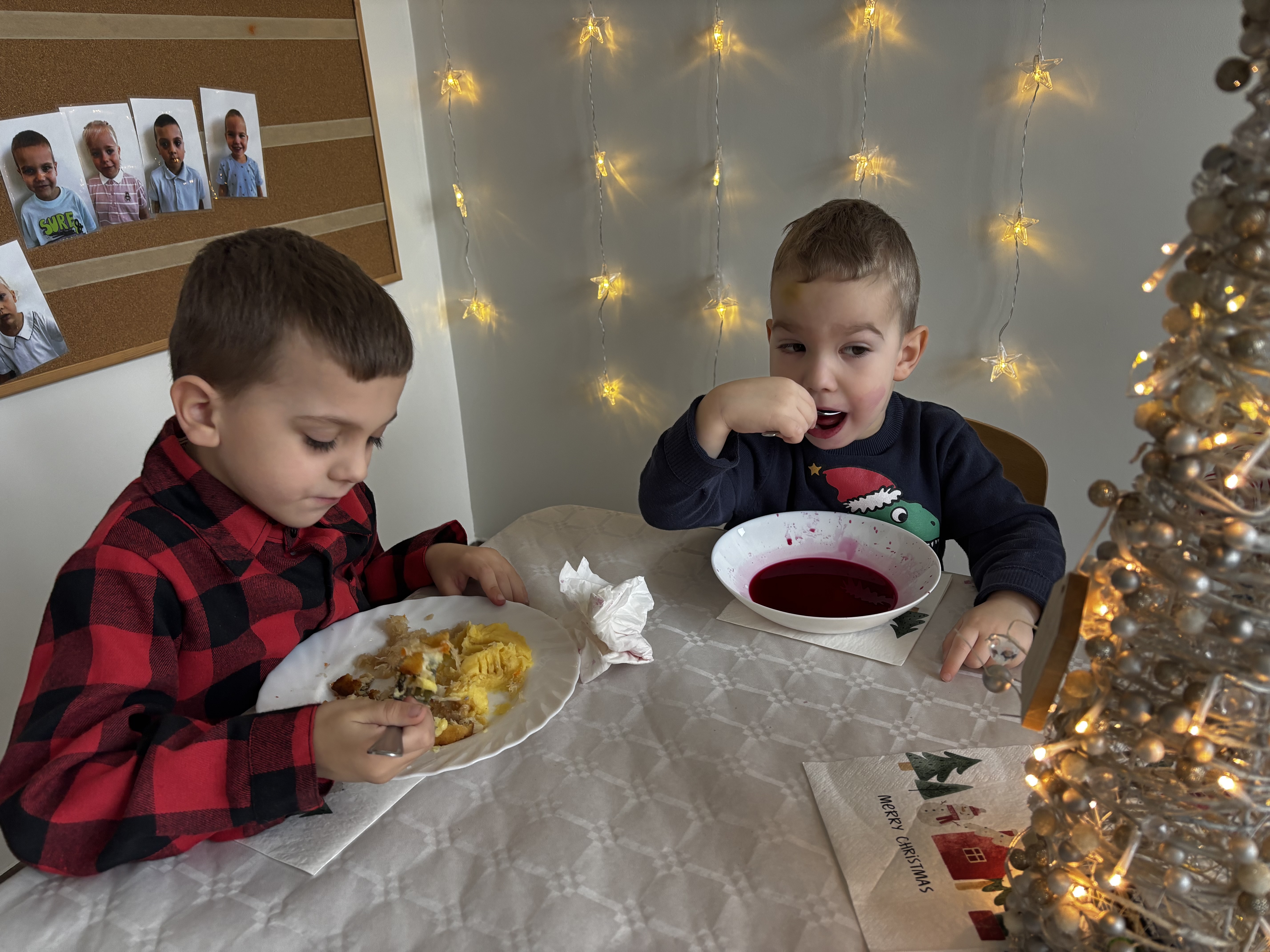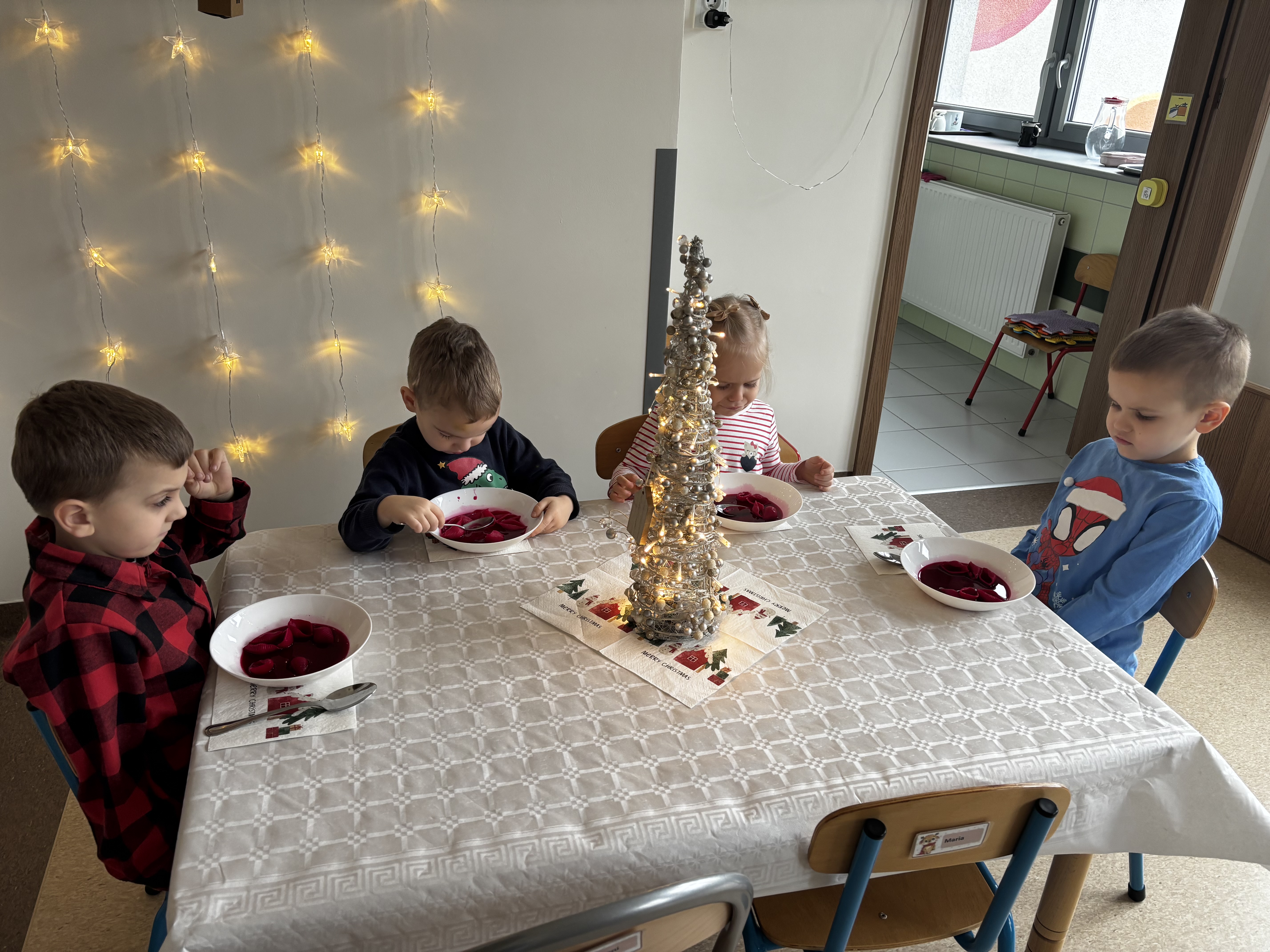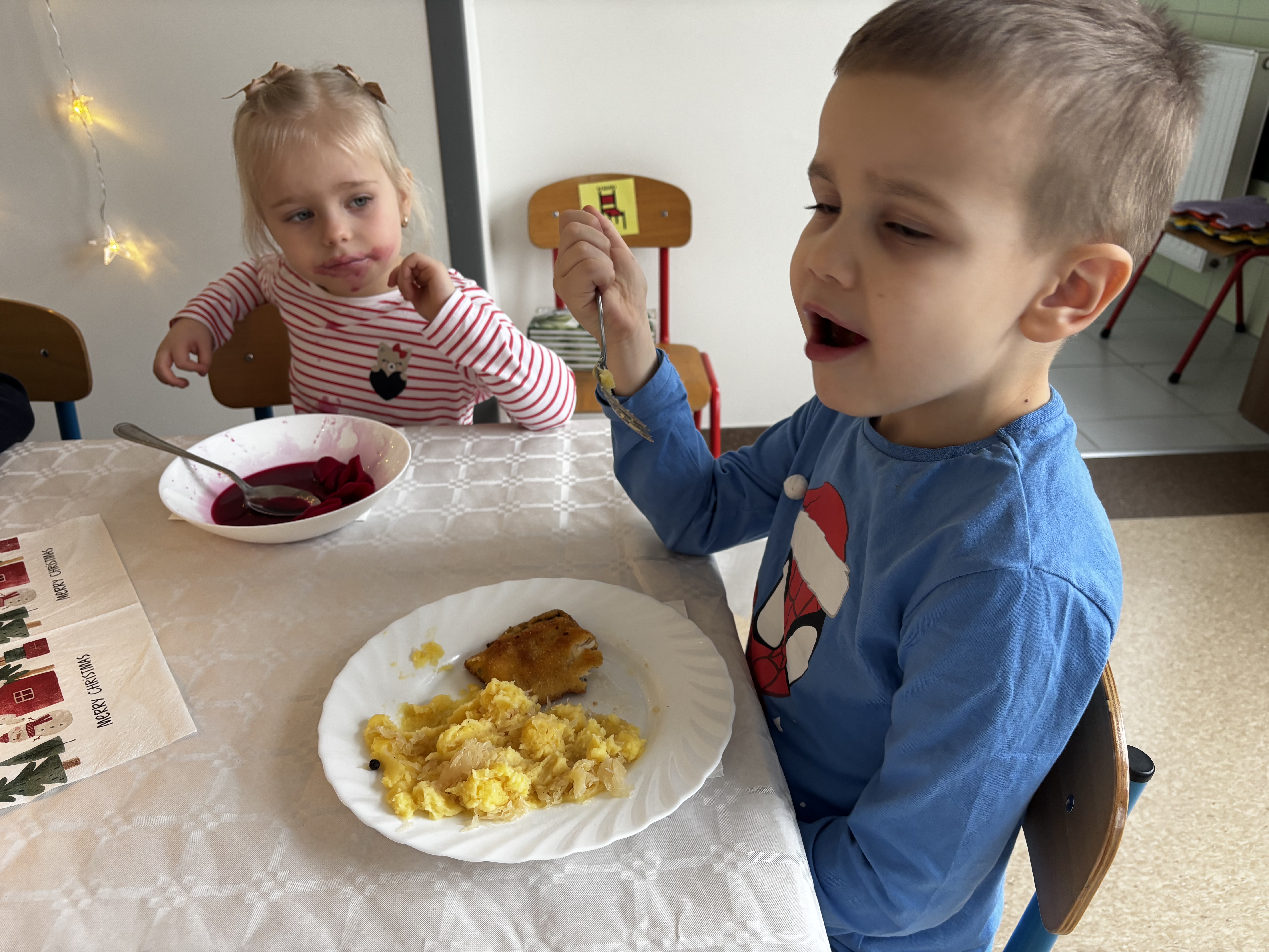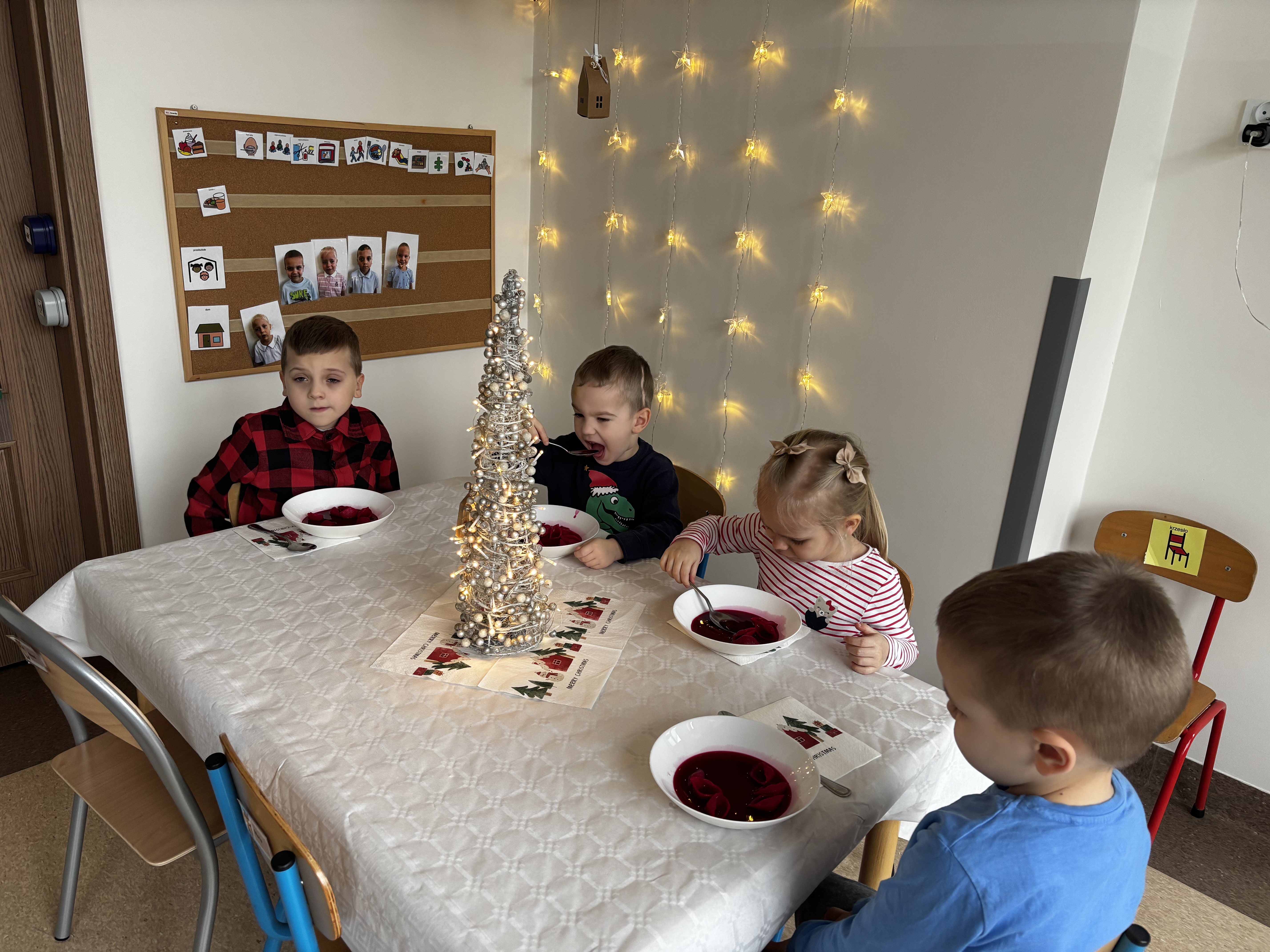 Dziś w naszej sali zapanował prawdziwie świąteczny klimat. W tle rozbrzmiewały kolędy, a wspólny świąteczny obiad wprowadził wszystkich w radosny, ciepły nastrój. Był to czas pełen uśmiechów, spokoju i wyjątkowych chwil, które uwieczniliśmy na pamiątkowych zdjęciach.