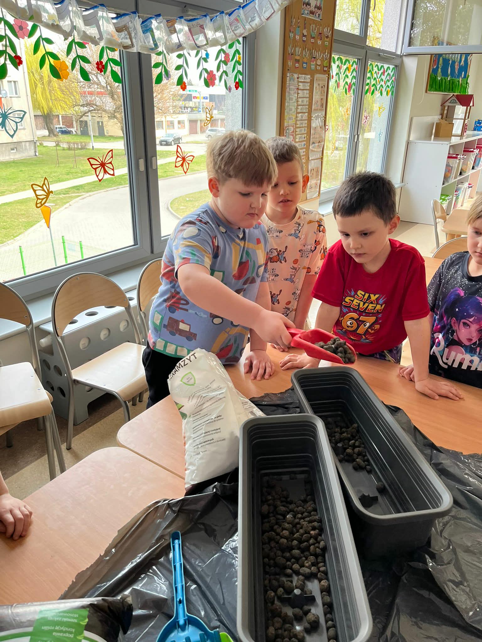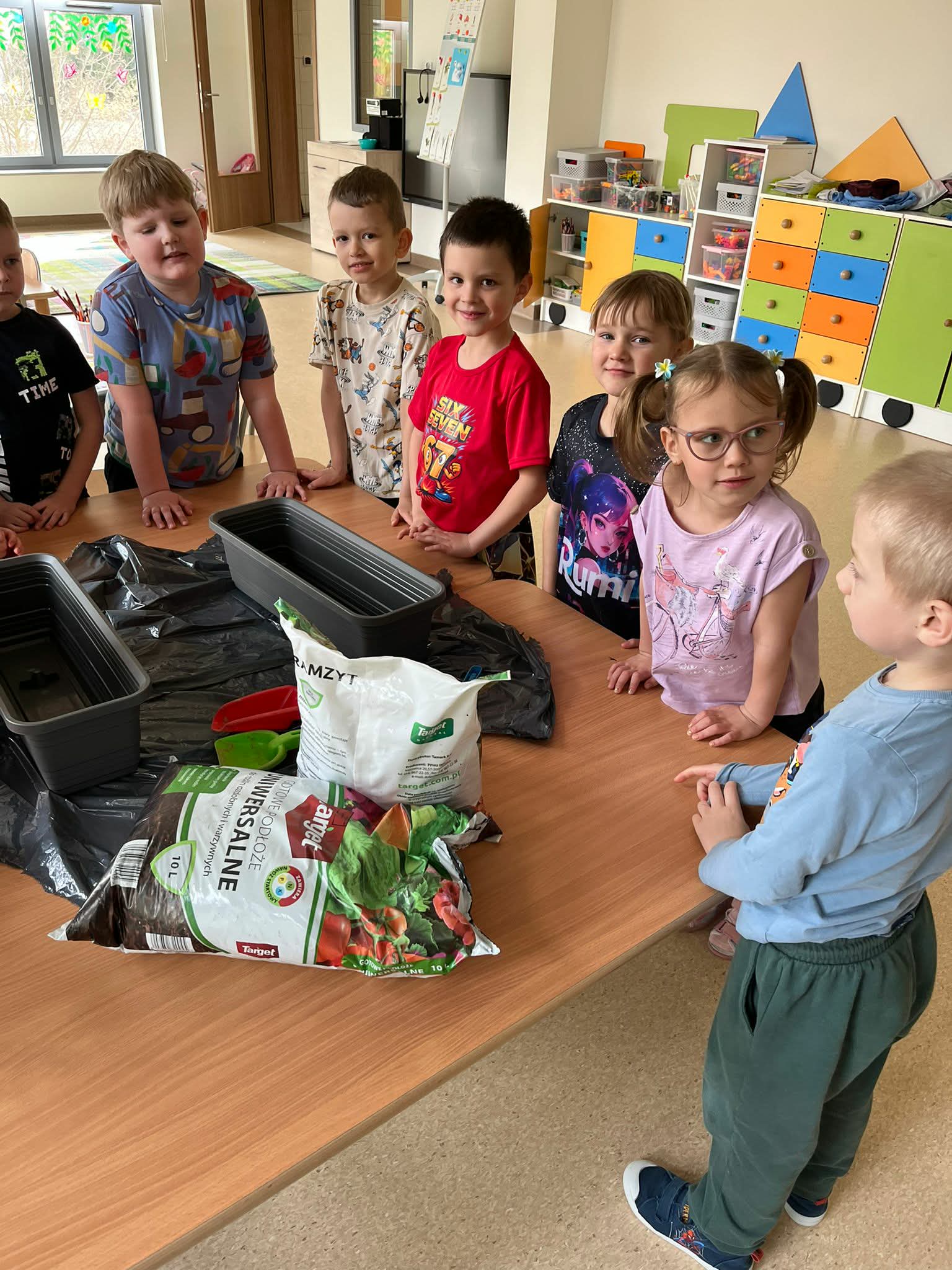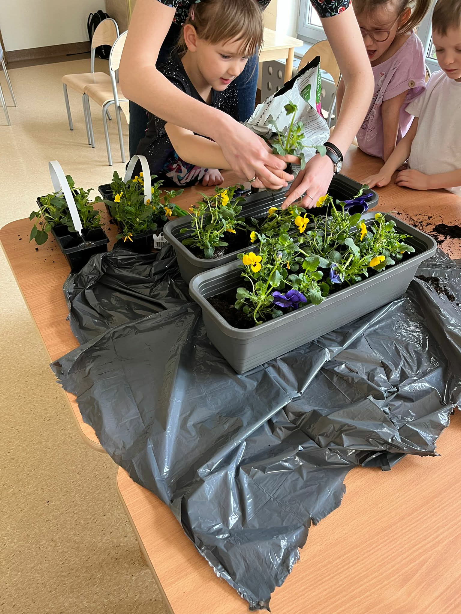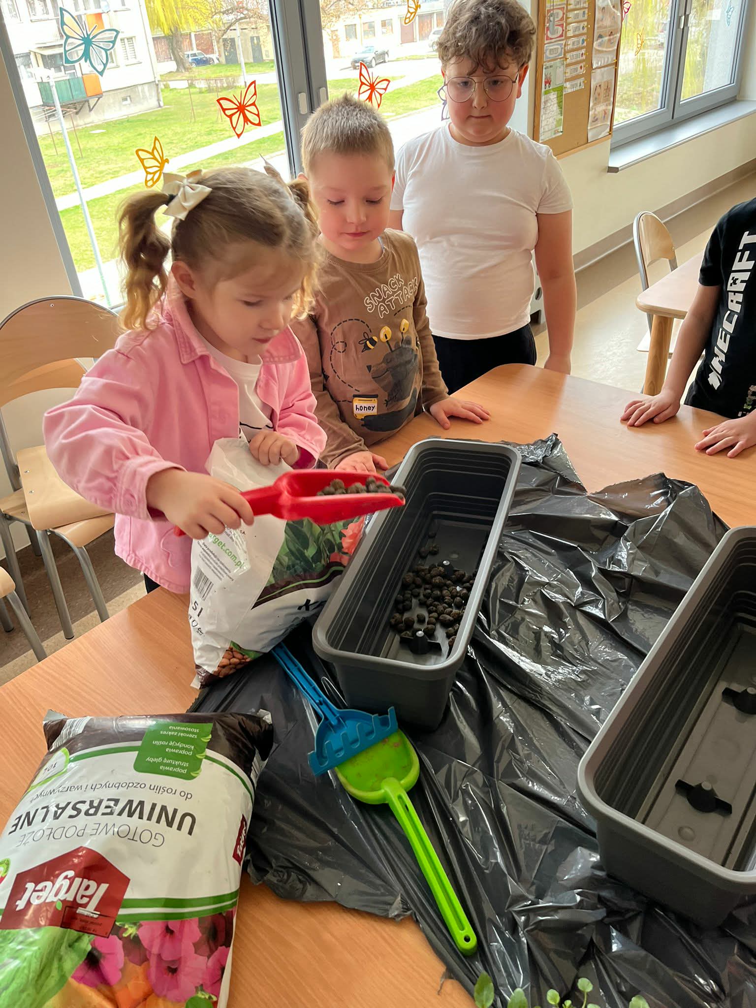Tym razem grupa Żuczków zamieniła się w prawdziwych ogrodników. Dzieci zapoznały się z czynnikami niezbędnymi roślinom do życia i wzięły się do pracy. Posadziliśmy bratki jak i fasolę, której wzrost będziemy obserwować na każdym etapie .