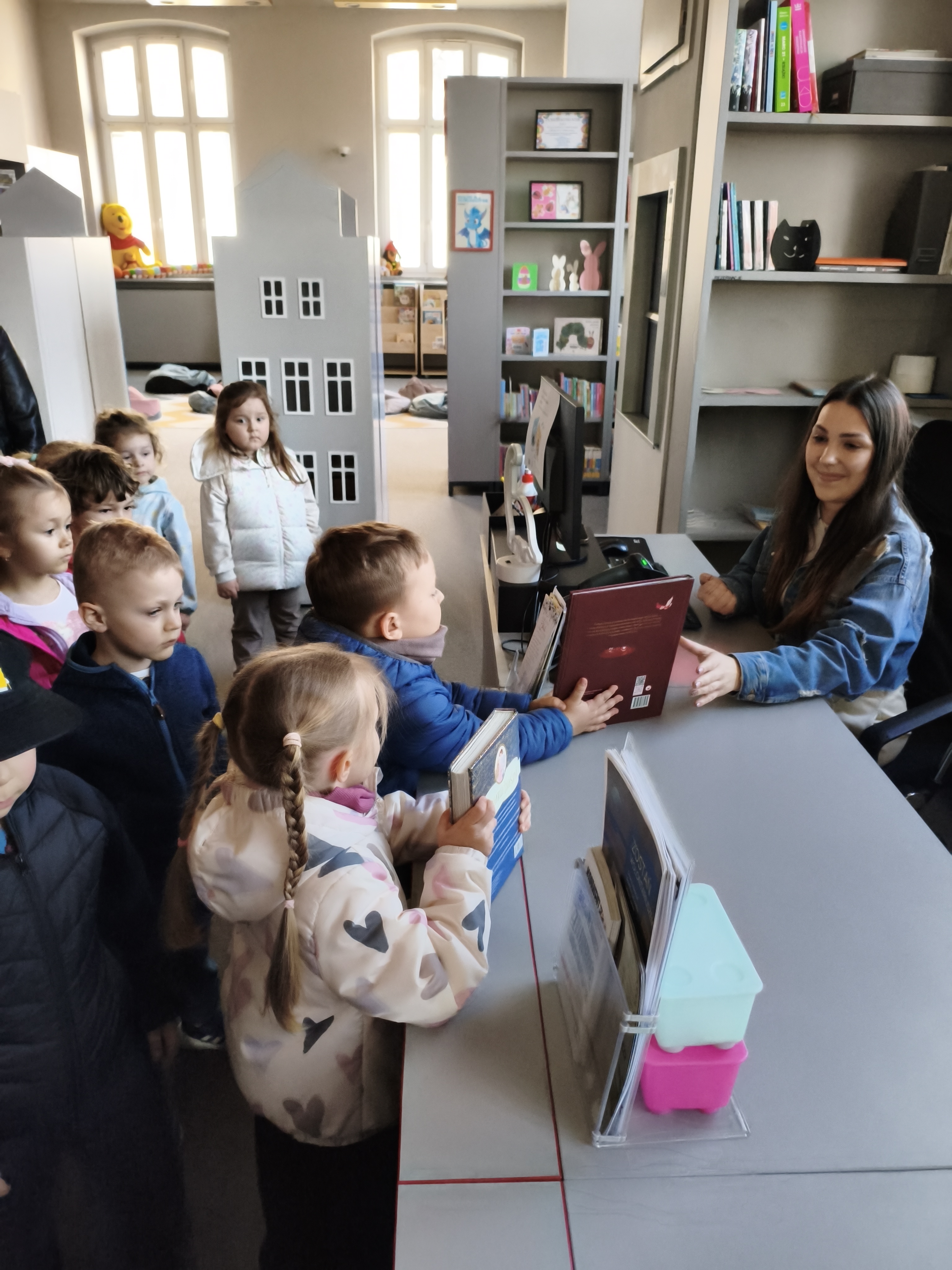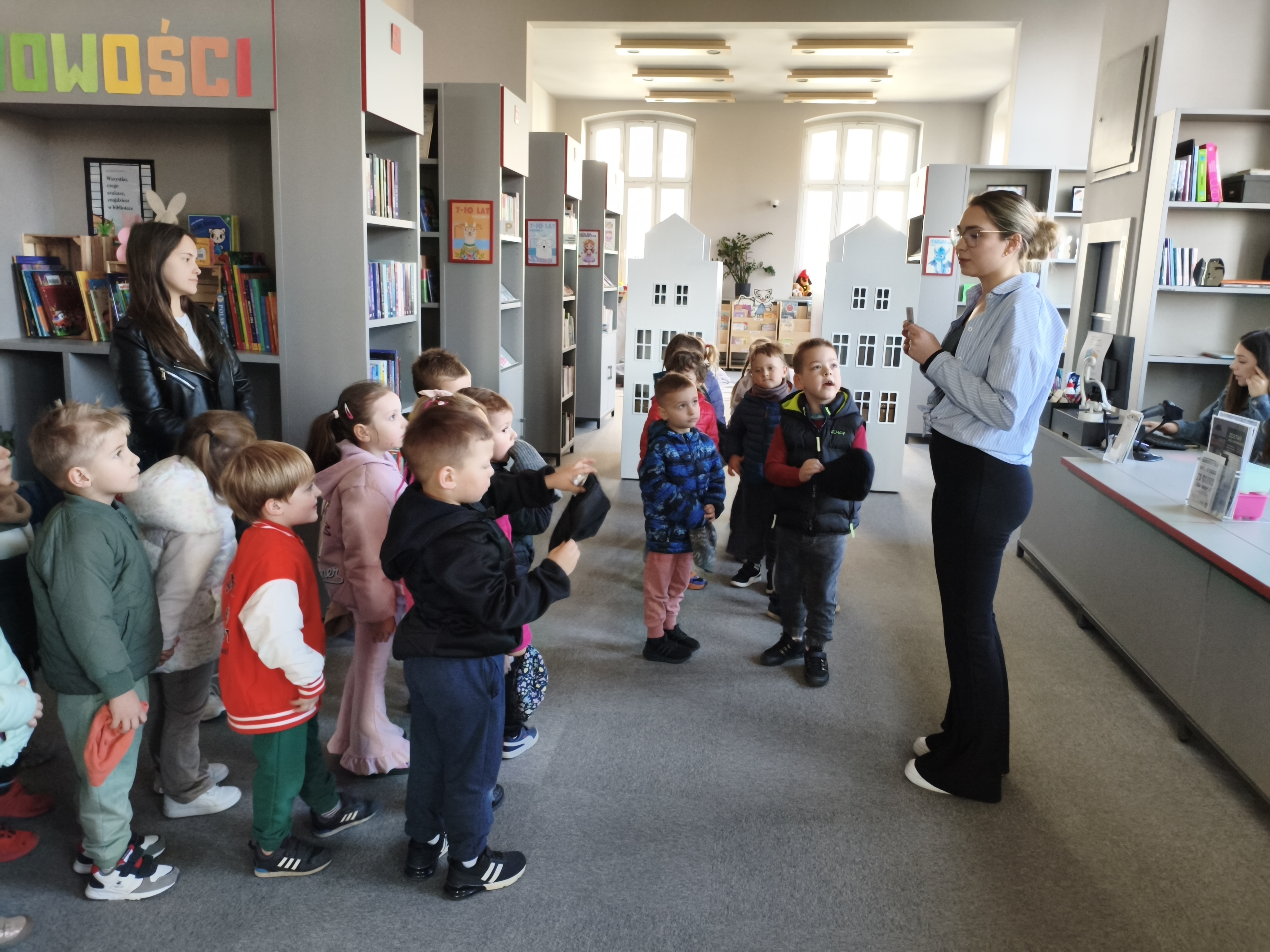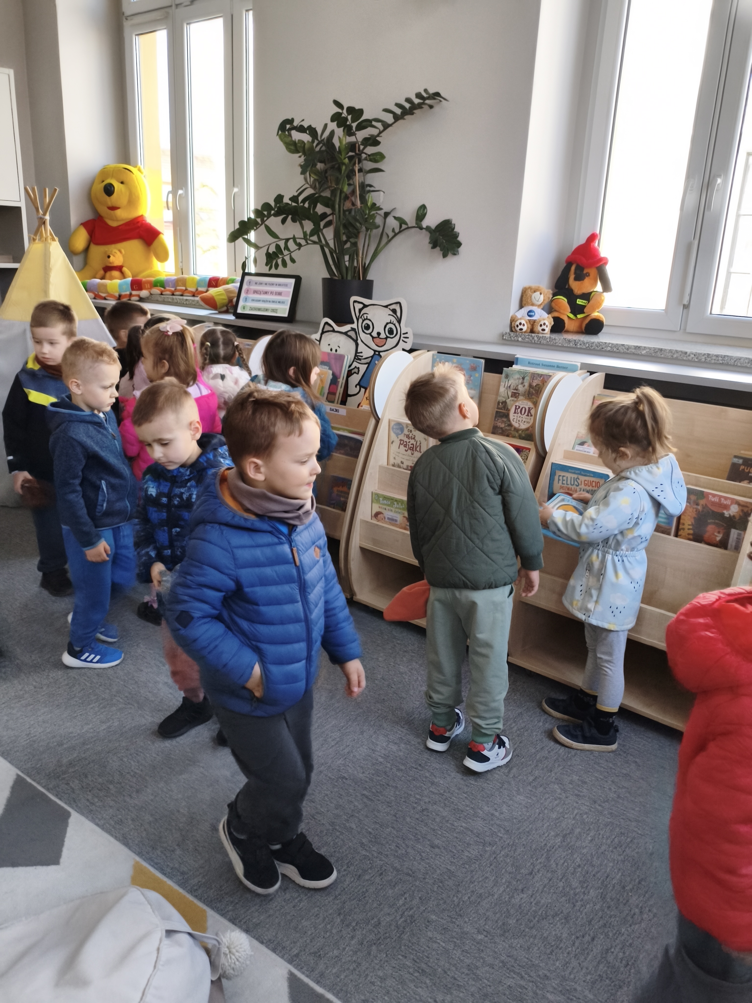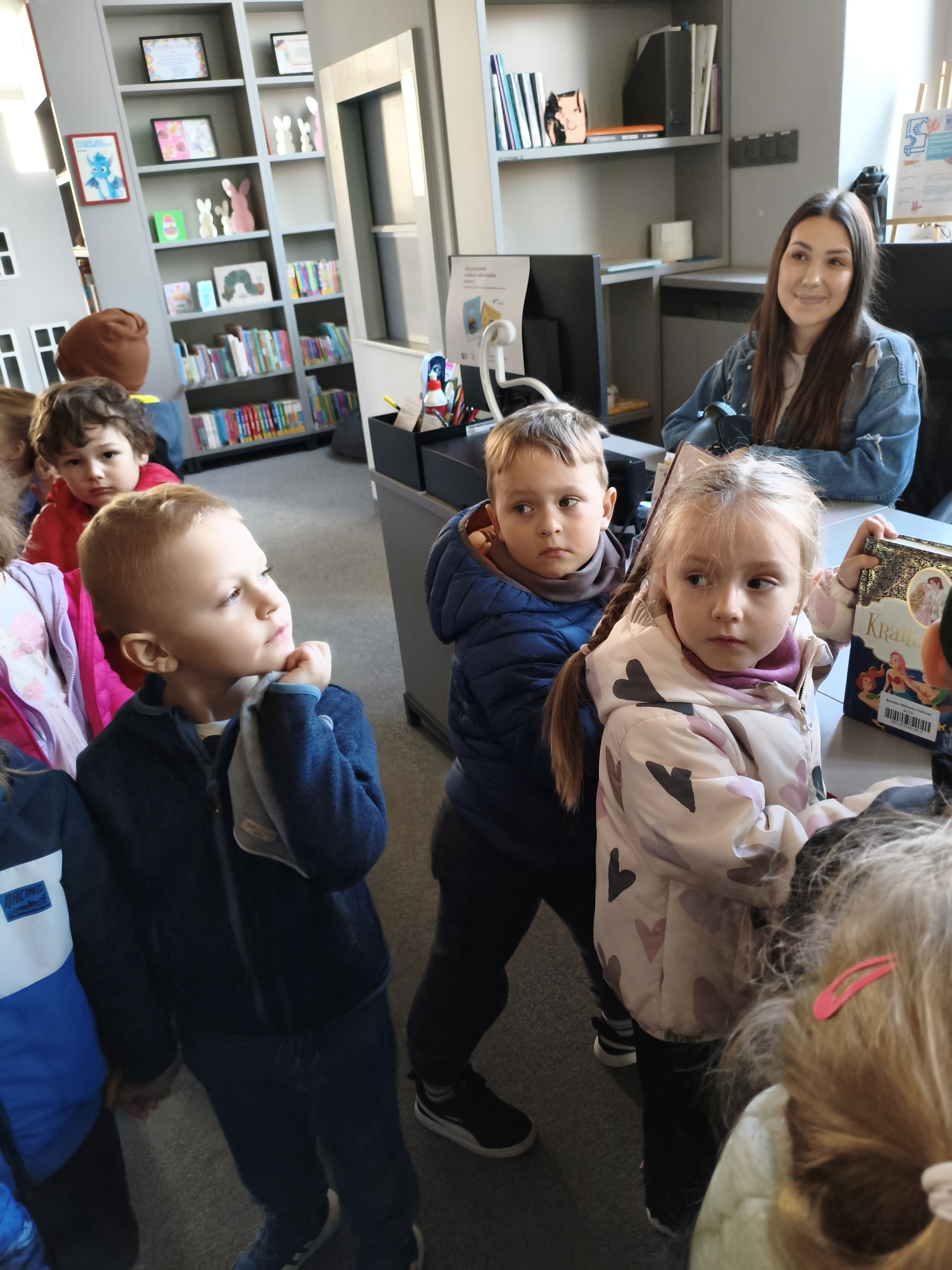 Przedszkolaki odwiedziły bibliotekę multimedialną, gdzie miały okazję poznać jej funkcjonowanie oraz zasady korzystania z książek i innych materiałów. Dzieci z zainteresowaniem oglądały regały pełne książek, dowiedziały się, jak wygląda wypożyczanie oraz zwracanie książek, a także poznały pracę bibliotekarza. Pani bibliotekarka opowiedziała dzieciom o różnych działach biblioteki i zachęciła je do częstego sięgania po książki. Na zakończenie wizyty przedszkolaki wraz z panią wypożyczyły kilka książek do wspólnego czytania w przedszkolu. Była to bardzo ciekawa i wartościowa wycieczka, która mamy nadzieję, rozbudziła w dzieciach zainteresowanie czytaniem.