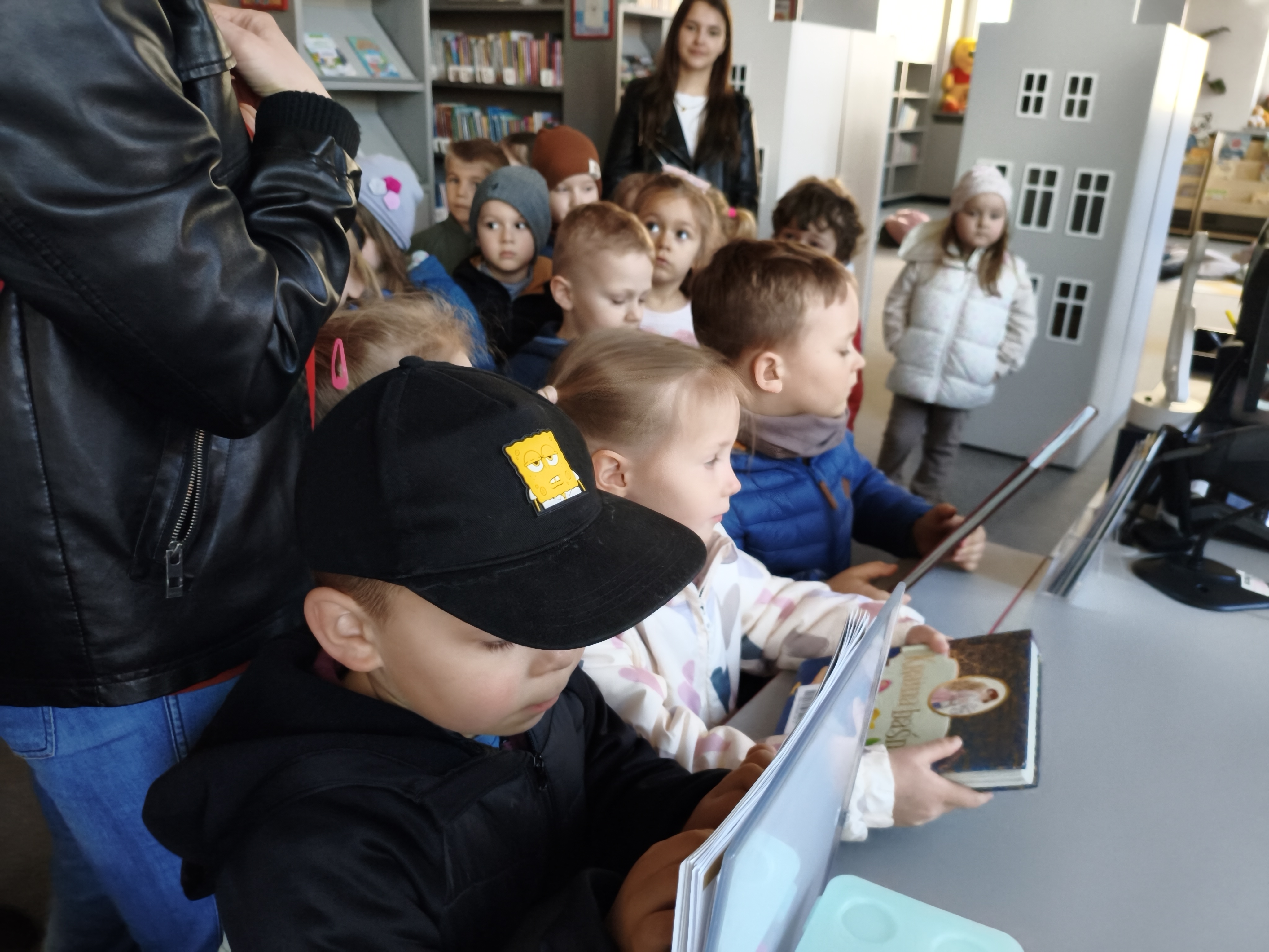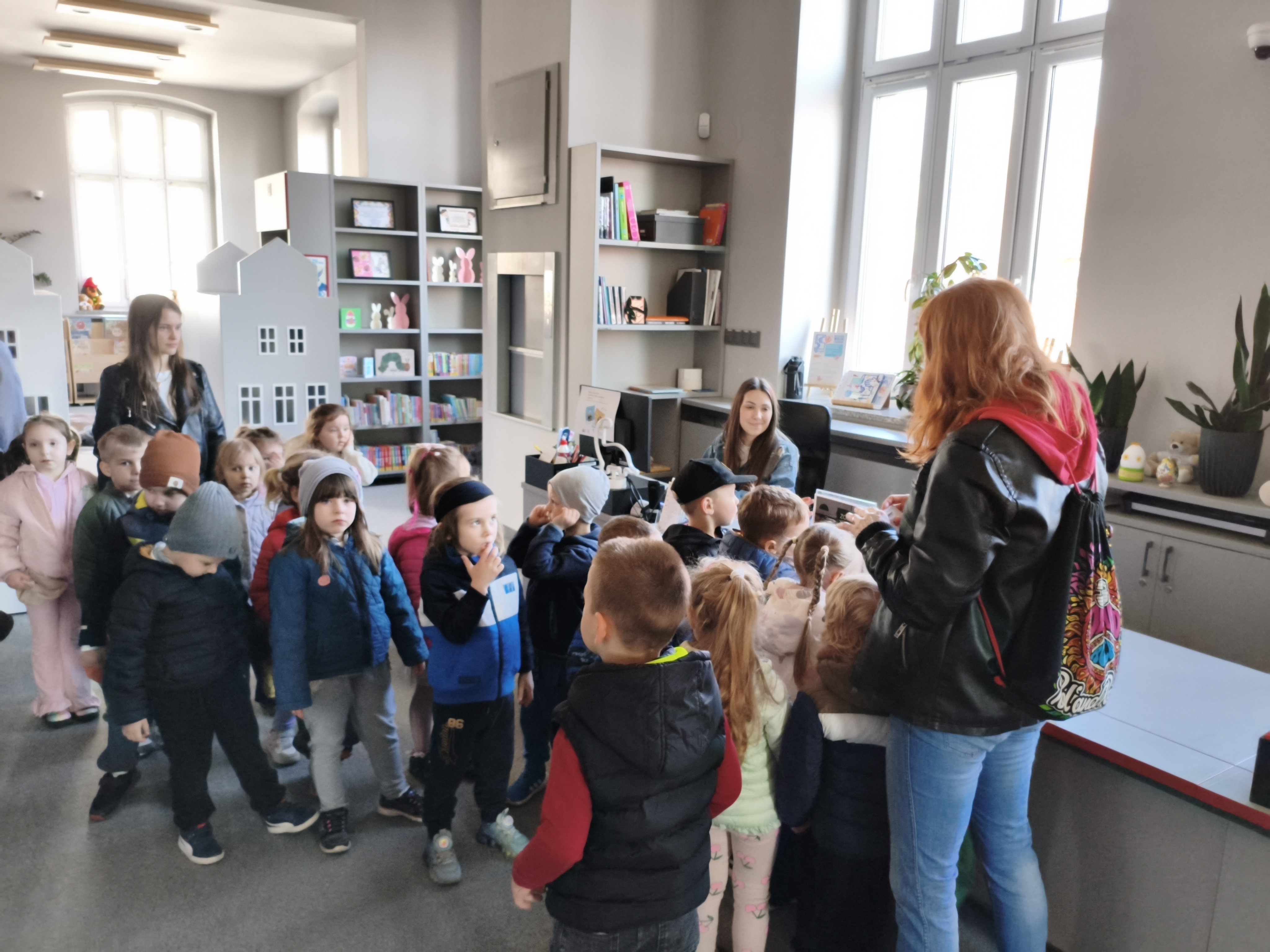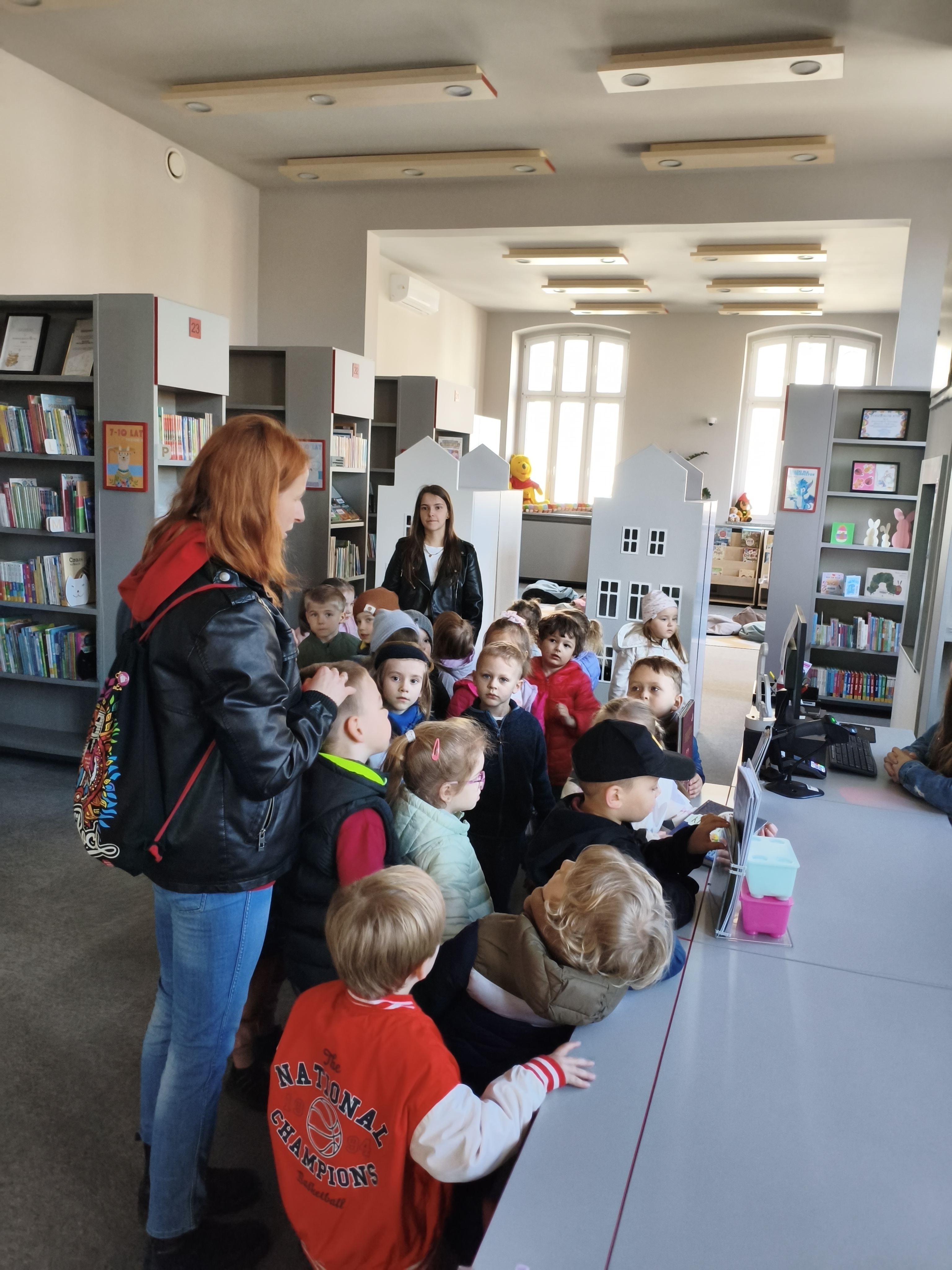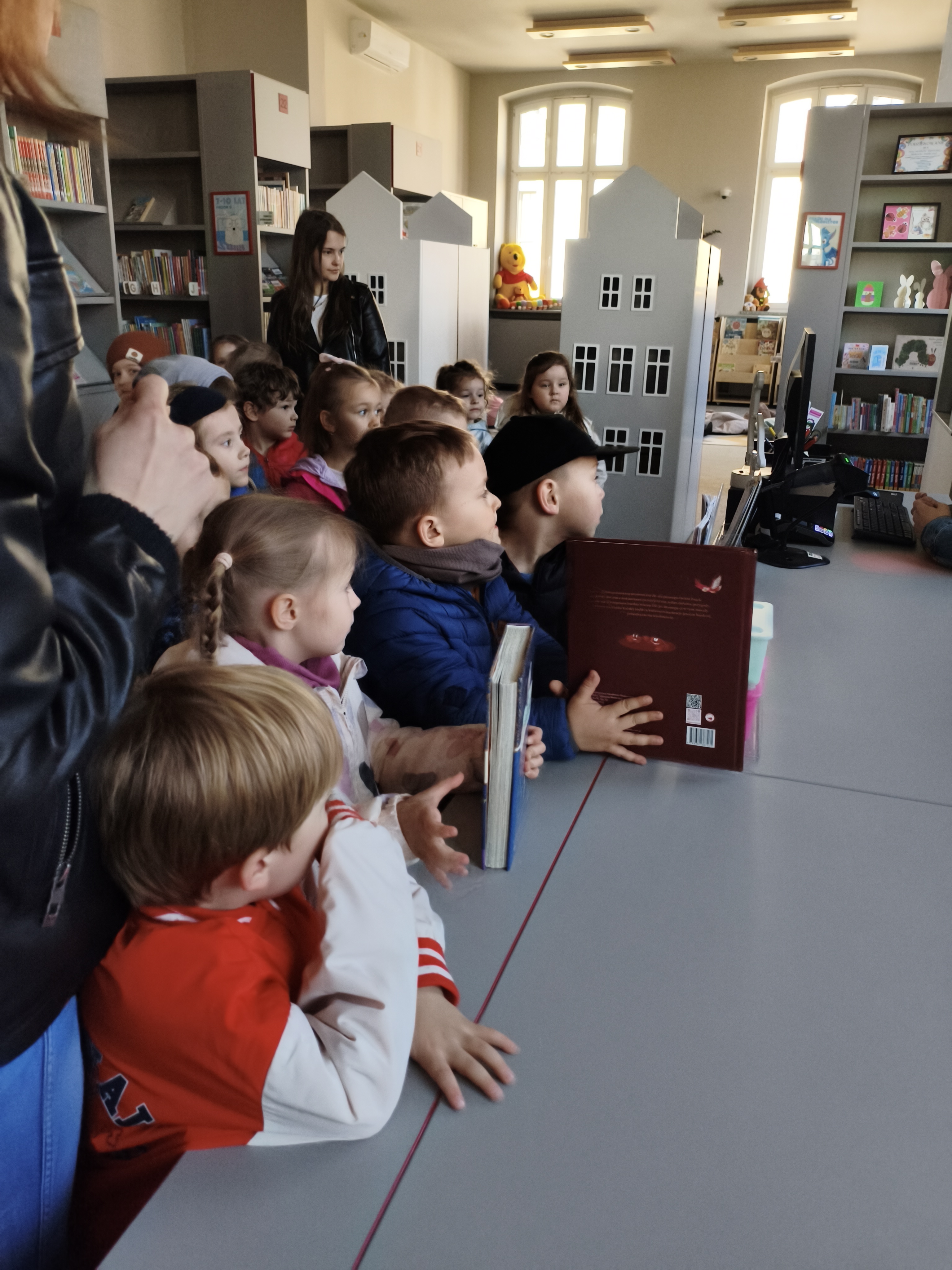 Przedszkolaki odwiedziły bibliotekę multimedialną, gdzie miały okazję poznać jej funkcjonowanie oraz zasady korzystania z książek i innych materiałów. Dzieci z zainteresowaniem oglądały regały pełne książek, dowiedziały się, jak wygląda wypożyczanie oraz zwracanie książek, a także poznały pracę bibliotekarza. Pani bibliotekarka opowiedziała dzieciom o różnych działach biblioteki i zachęciła je do częstego sięgania po książki. Na zakończenie wizyty przedszkolaki wraz z panią wypożyczyły kilka książek do wspólnego czytania w przedszkolu. Była to bardzo ciekawa i wartościowa wycieczka, która mamy nadzieję, rozbudziła w dzieciach zainteresowanie czytaniem.