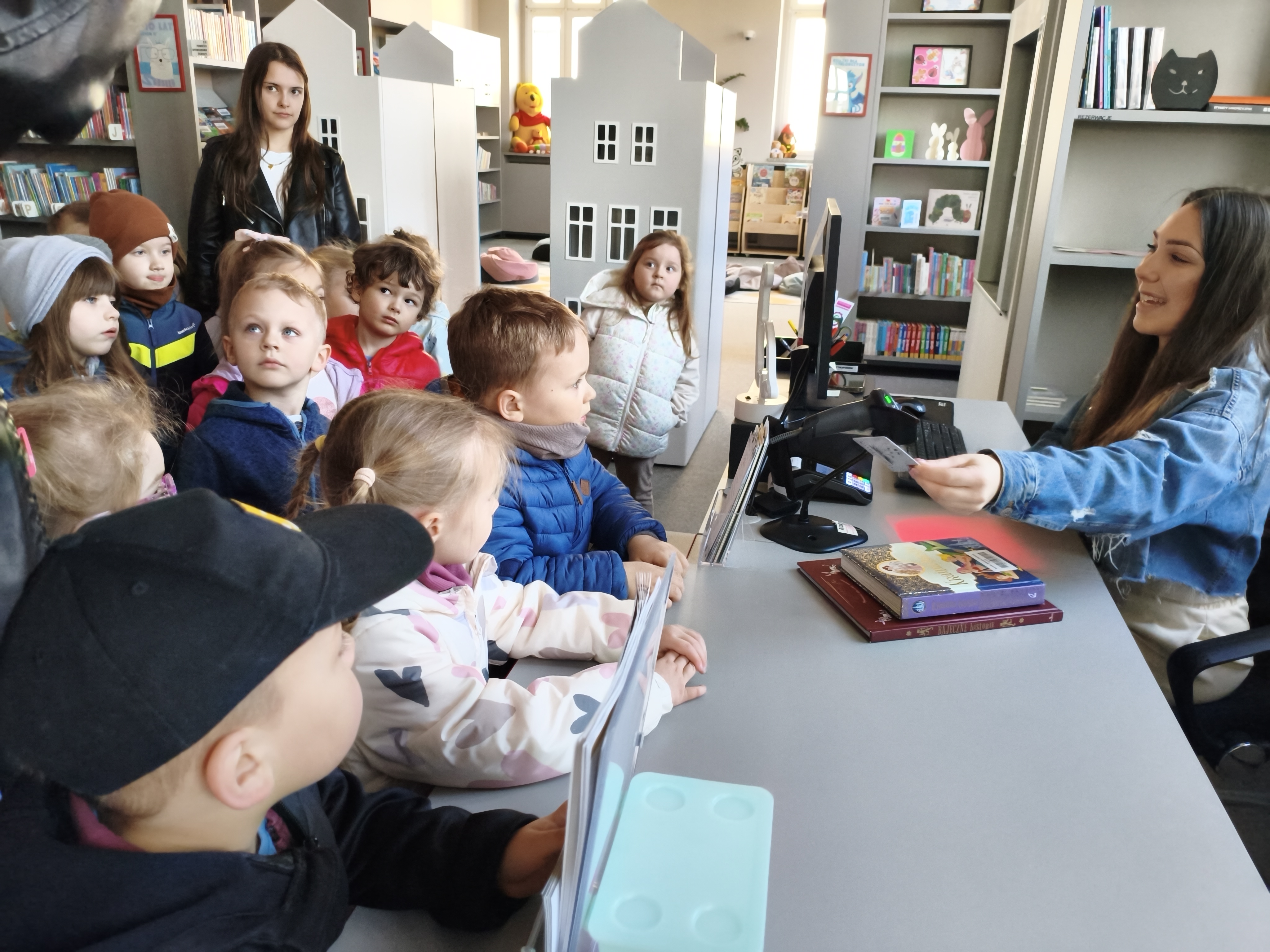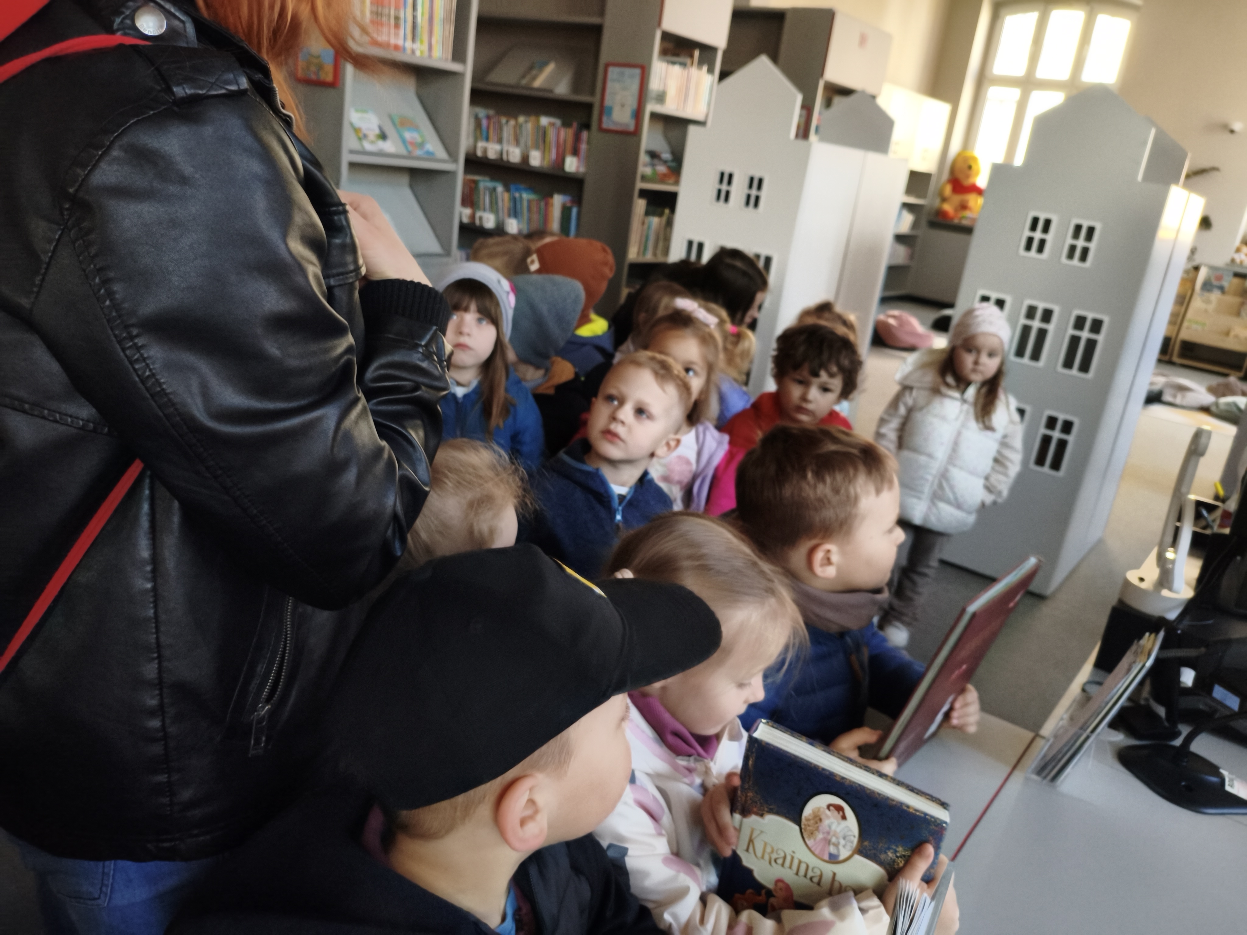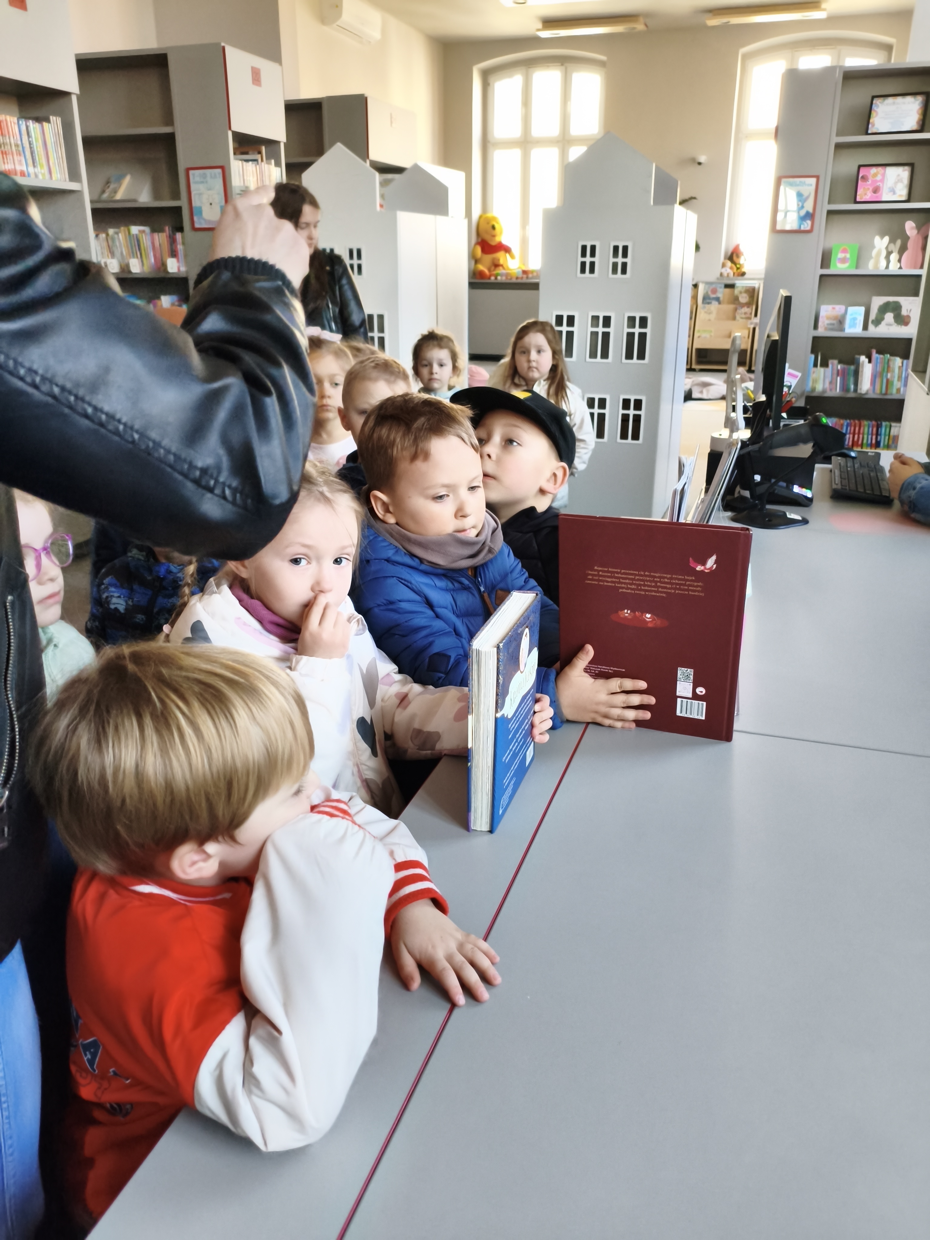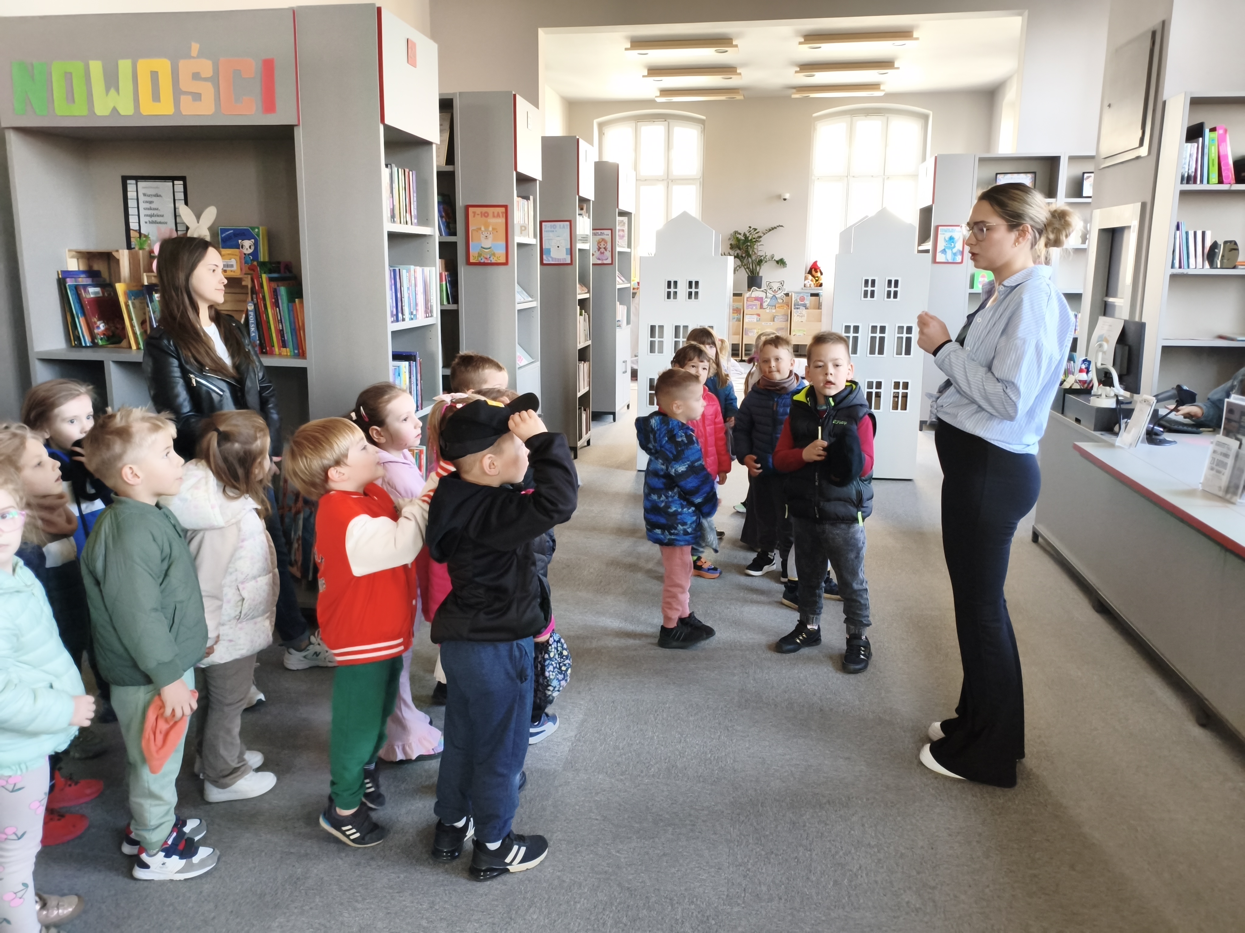 Przedszkolaki odwiedziły bibliotekę multimedialną, gdzie miały okazję poznać jej funkcjonowanie oraz zasady korzystania z książek i innych materiałów. Dzieci z zainteresowaniem oglądały regały pełne książek, dowiedziały się, jak wygląda wypożyczanie oraz zwracanie książek, a także poznały pracę bibliotekarza. Pani bibliotekarka opowiedziała dzieciom o różnych działach biblioteki i zachęciła je do częstego sięgania po książki. Na zakończenie wizyty przedszkolaki wraz z panią wypożyczyły kilka książek do wspólnego czytania w przedszkolu. Była to bardzo ciekawa i wartościowa wycieczka, która mamy nadzieję, rozbudziła w dzieciach zainteresowanie czytaniem.