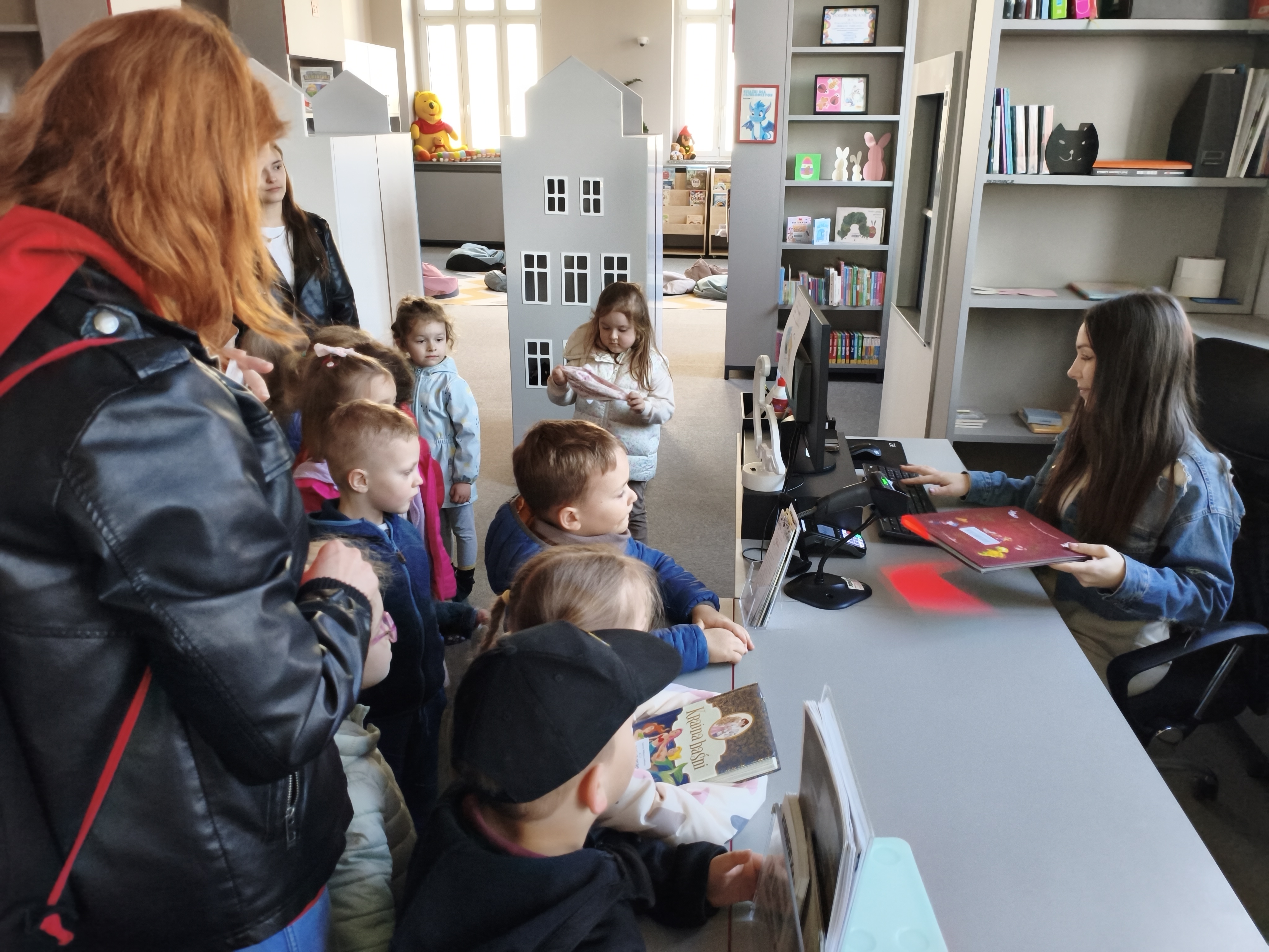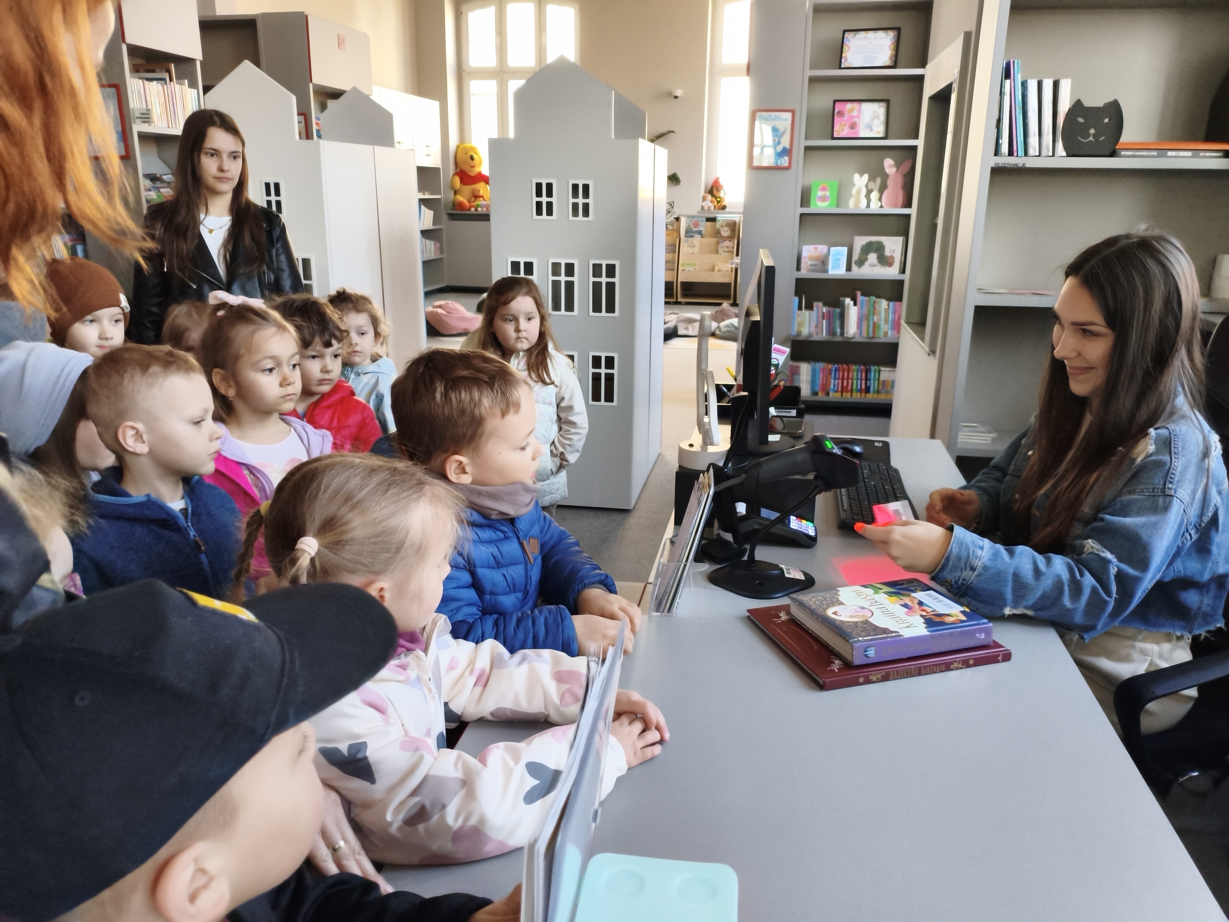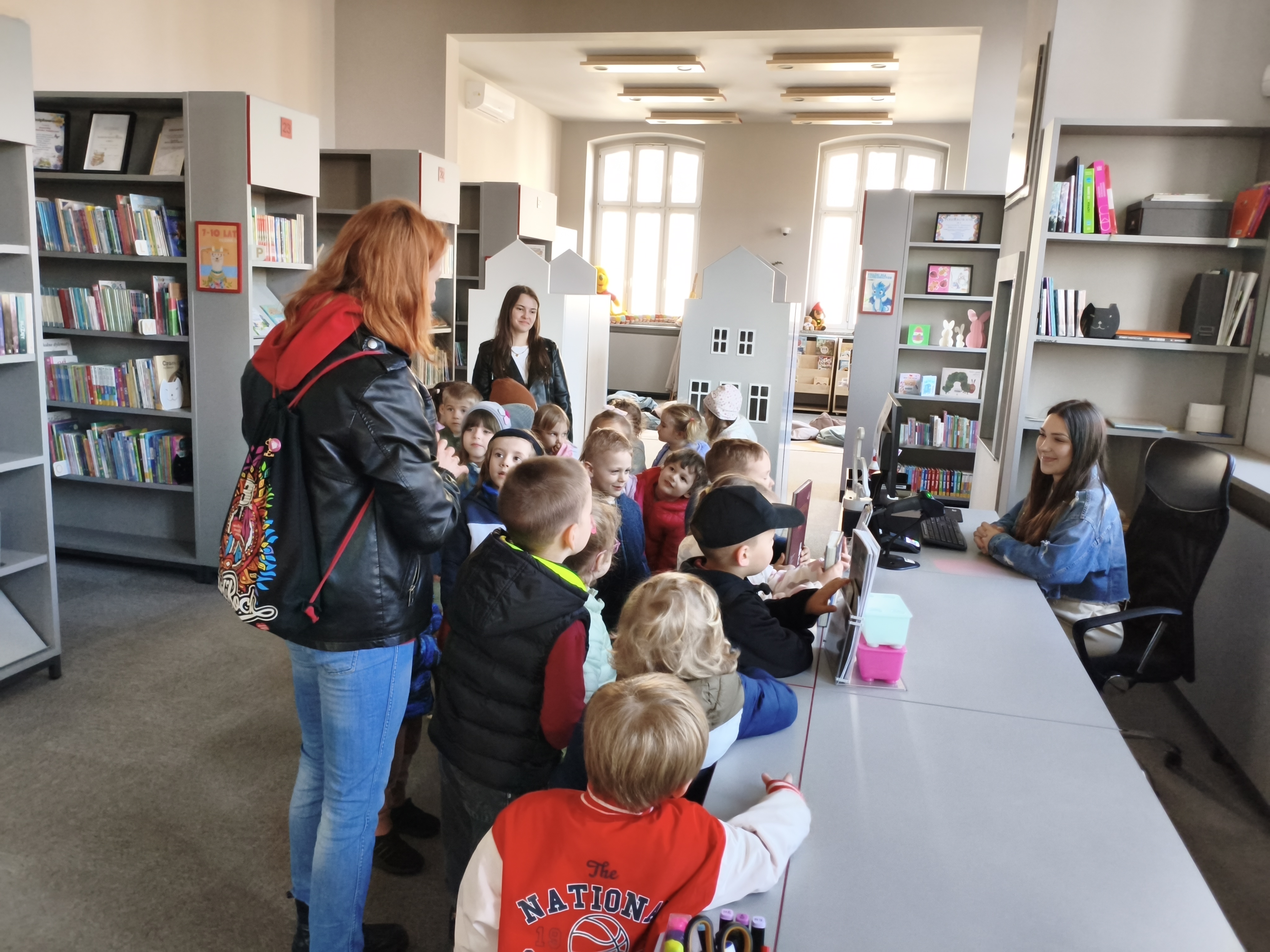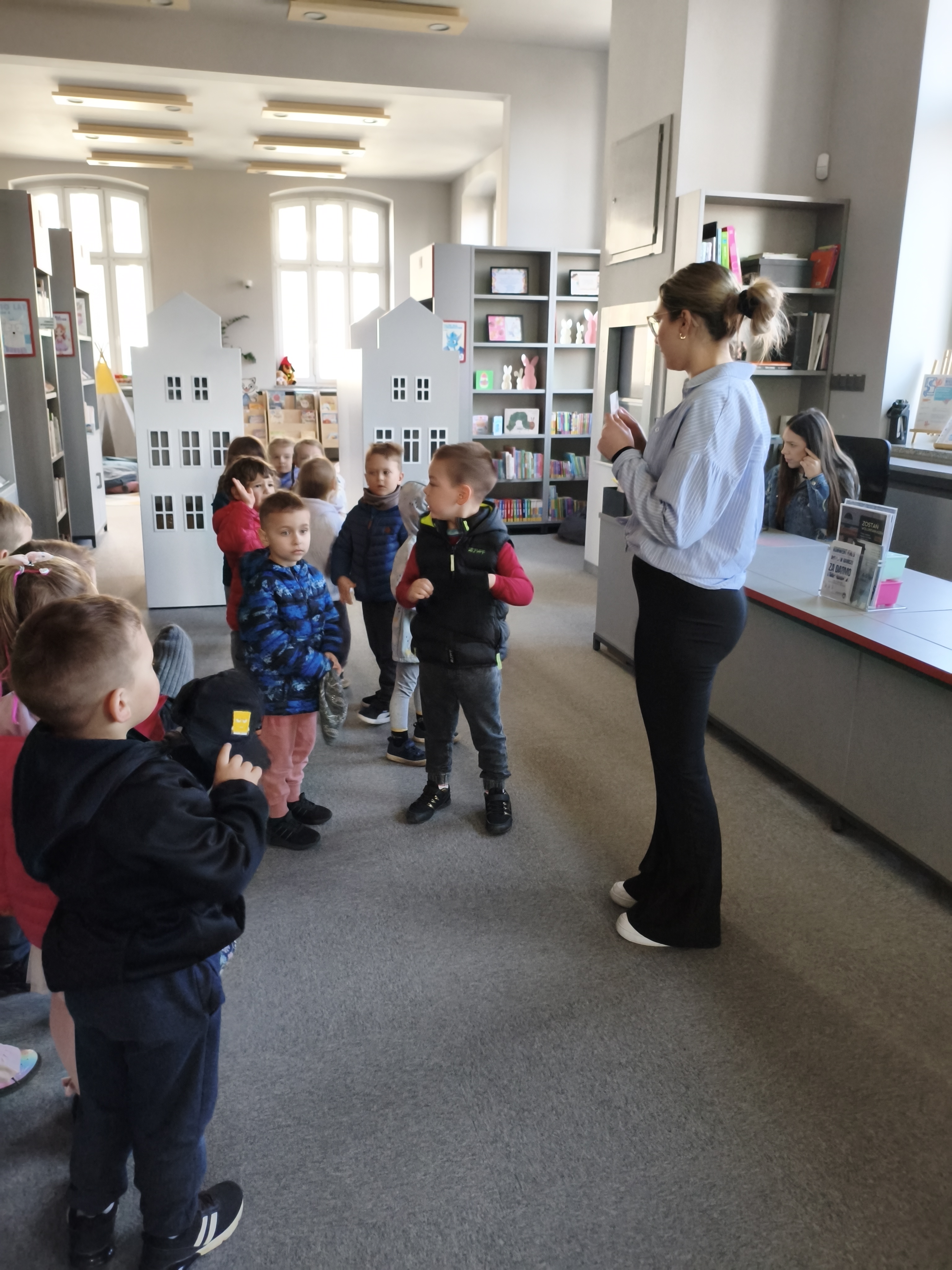 Przedszkolaki odwiedziły bibliotekę multimedialną, gdzie miały okazję poznać jej funkcjonowanie oraz zasady korzystania z książek i innych materiałów. Dzieci z zainteresowaniem oglądały regały pełne książek, dowiedziały się, jak wygląda wypożyczanie oraz zwracanie książek, a także poznały pracę bibliotekarza. Pani bibliotekarka opowiedziała dzieciom o różnych działach biblioteki i zachęciła je do częstego sięgania po książki. Na zakończenie wizyty przedszkolaki wraz z panią wypożyczyły kilka książek do wspólnego czytania w przedszkolu. Była to bardzo ciekawa i wartościowa wycieczka, która mamy nadzieję, rozbudziła w dzieciach zainteresowanie czytaniem.