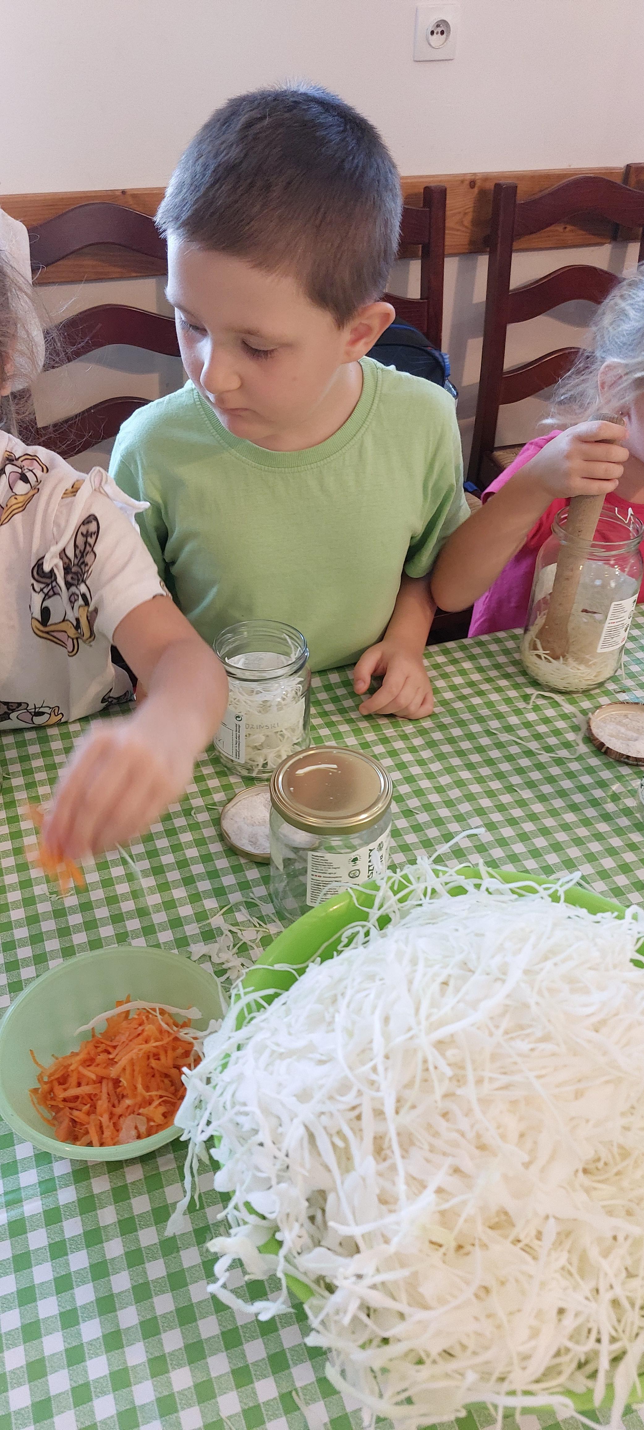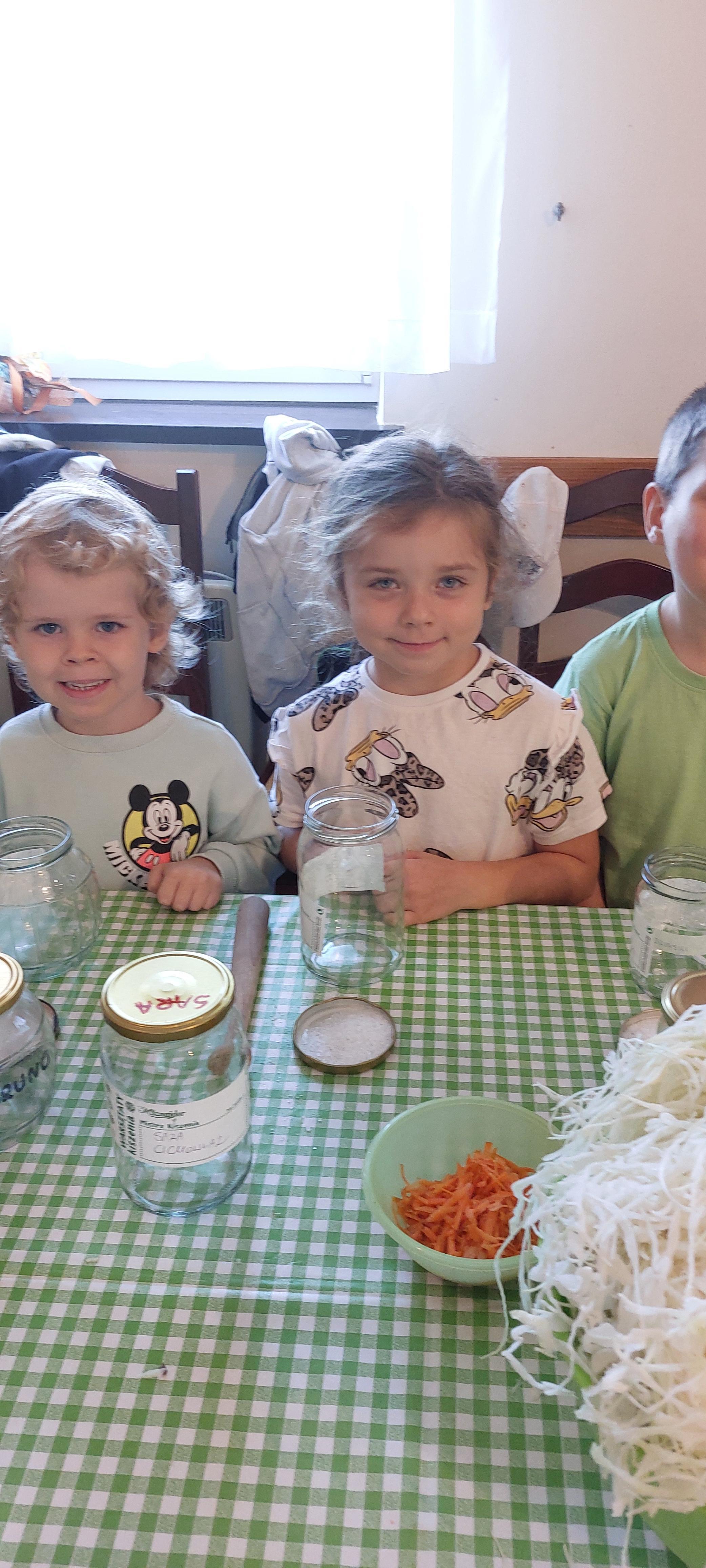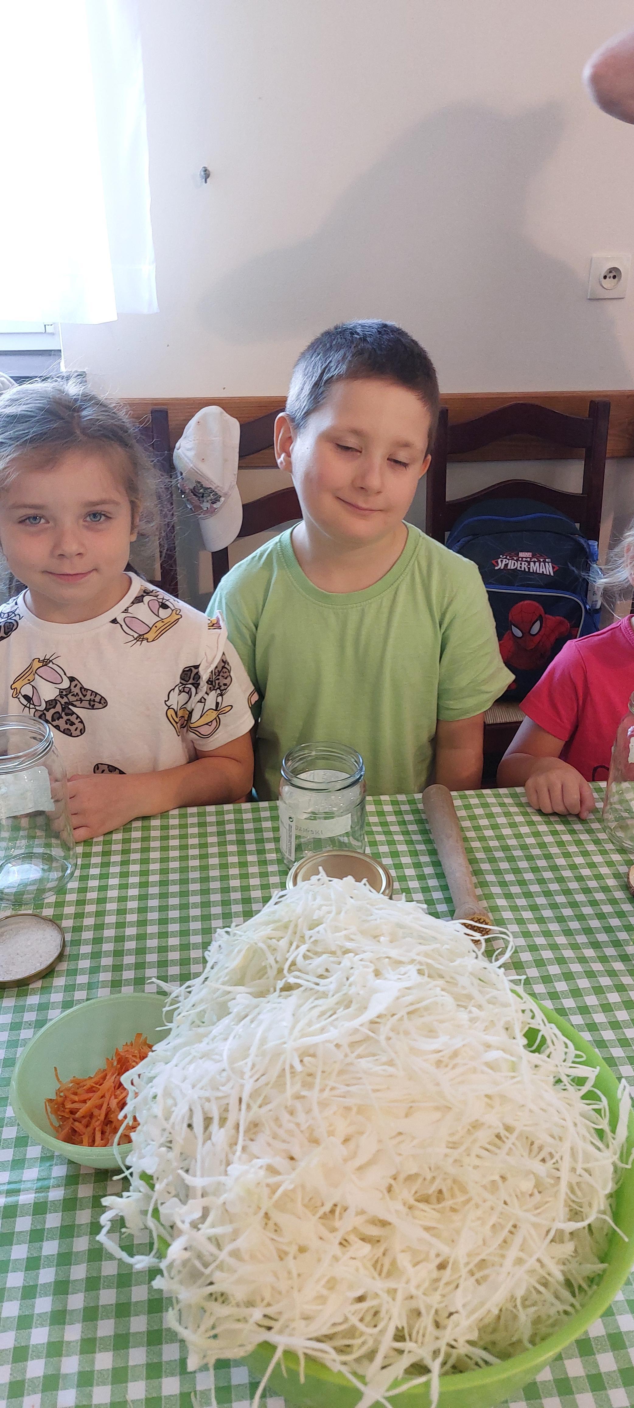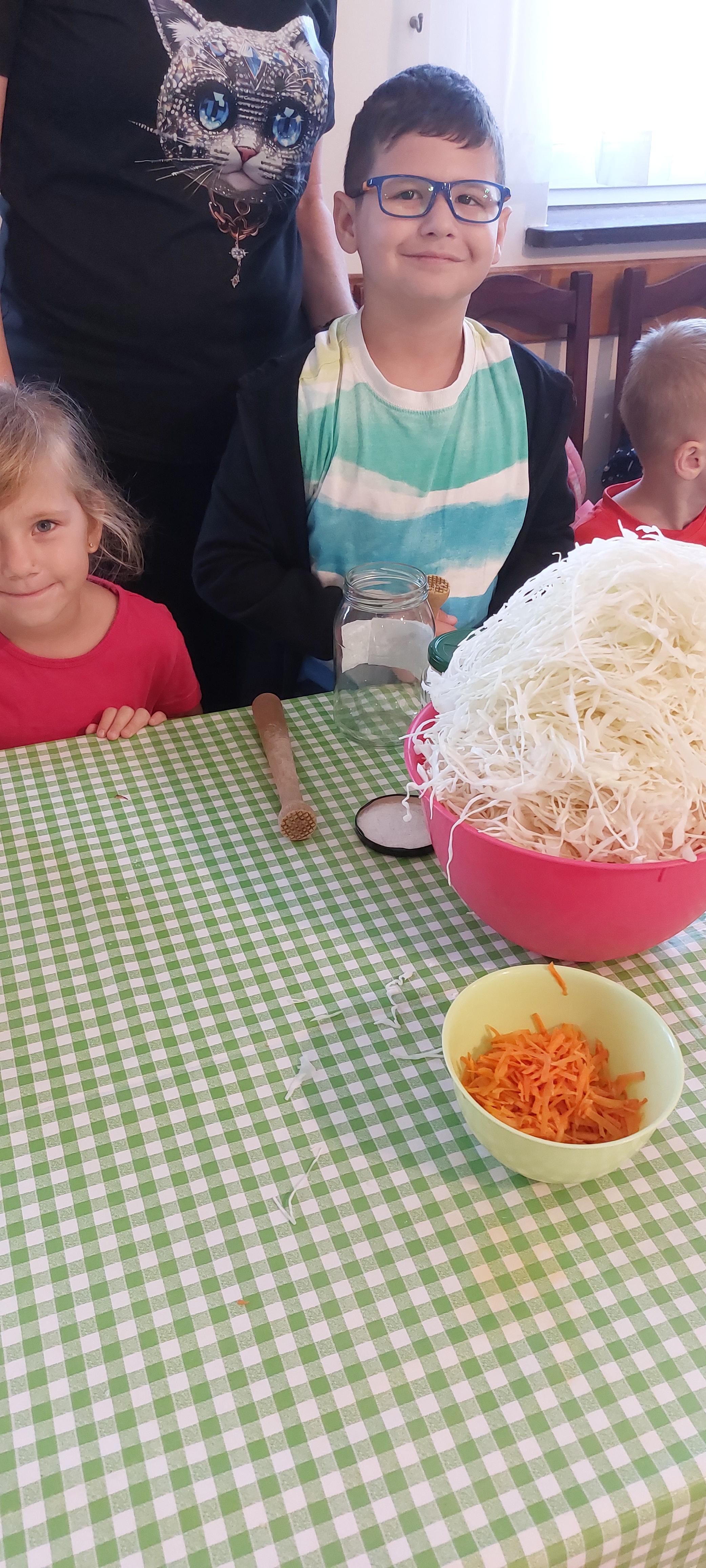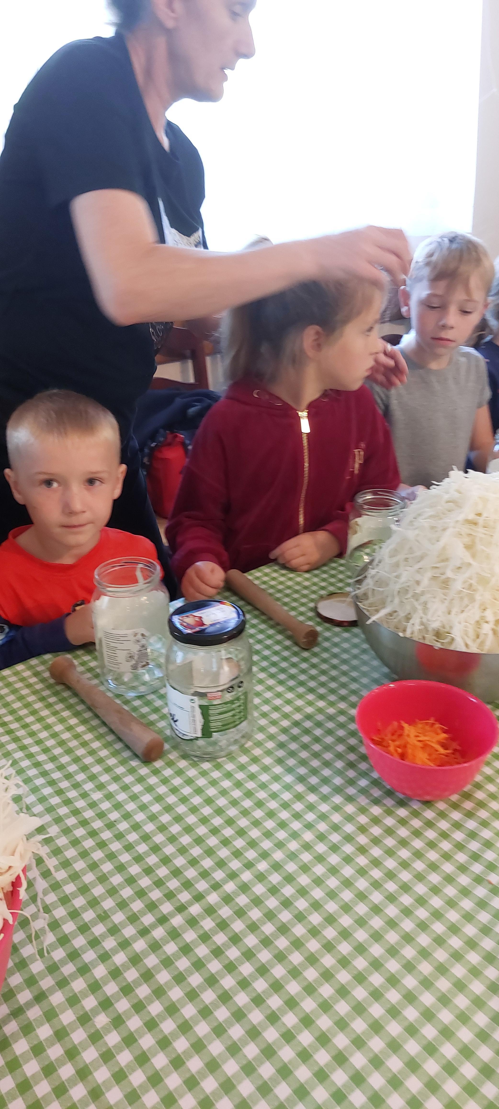 19 września dzieci 5-6 letnie z grupy "Skrzaty" wzięły udział w wycieczce do Państwa Sznajder. Pani Emilka przeprowadziła z dziećmi bardzo ciekawe warsztaty. Każdy miał okazję kisić kapustę, wykonać surówkę przygotowując wcześniej potrzebne produkty tj. marchewka, jabłko. Przedszkolaki pojechały również na pole. Wykopywały ziemniaki, które później wzięli do domu. Na zakończenie odbyły się zabawy na placu zabaw oraz każdy miał możliwość zjeść kiełbasę, pieczonego ziemniaka z ogniska. Pani Emilka wręczyła dzieciom certyfikat Kiszonkowego Masterszefa. Był to dzień pełen pozytywnych wrażeń;)