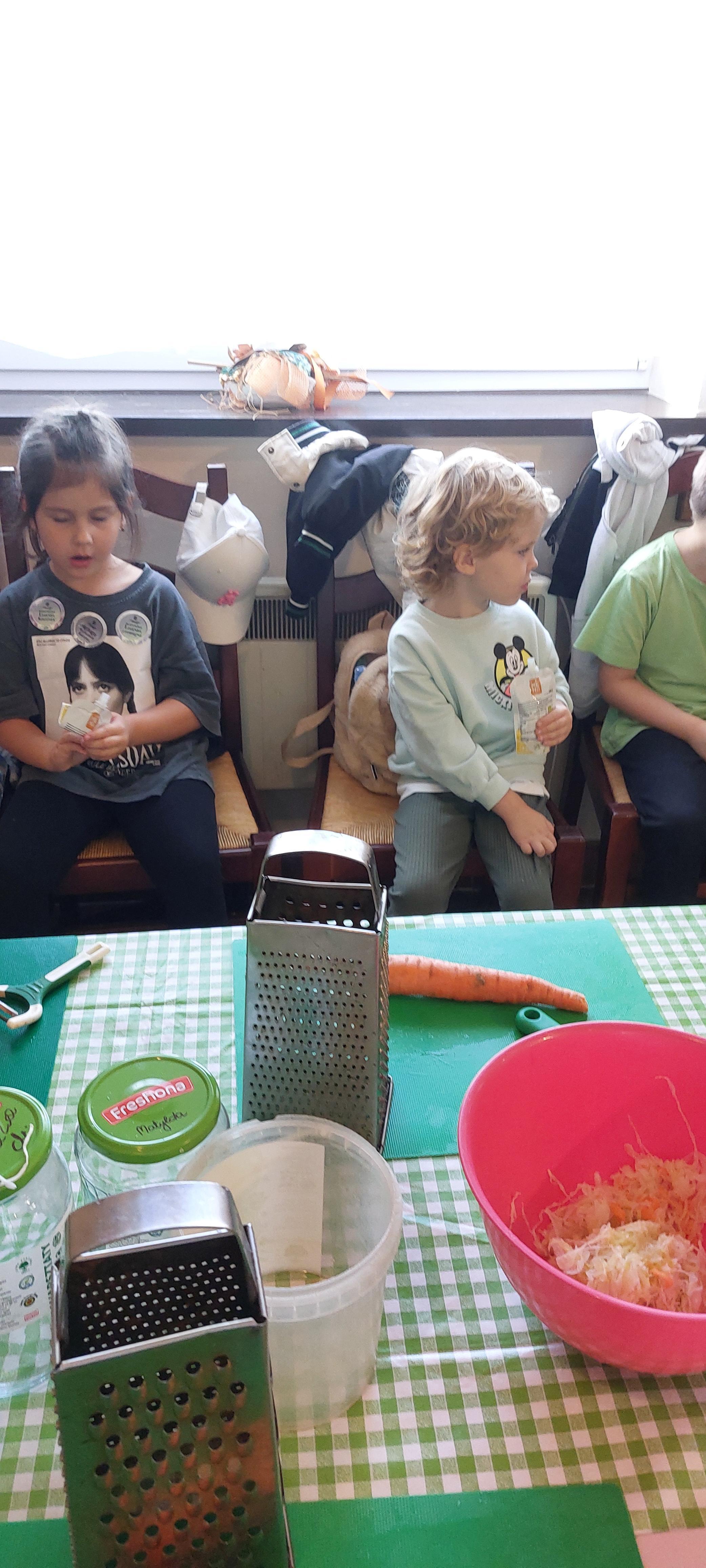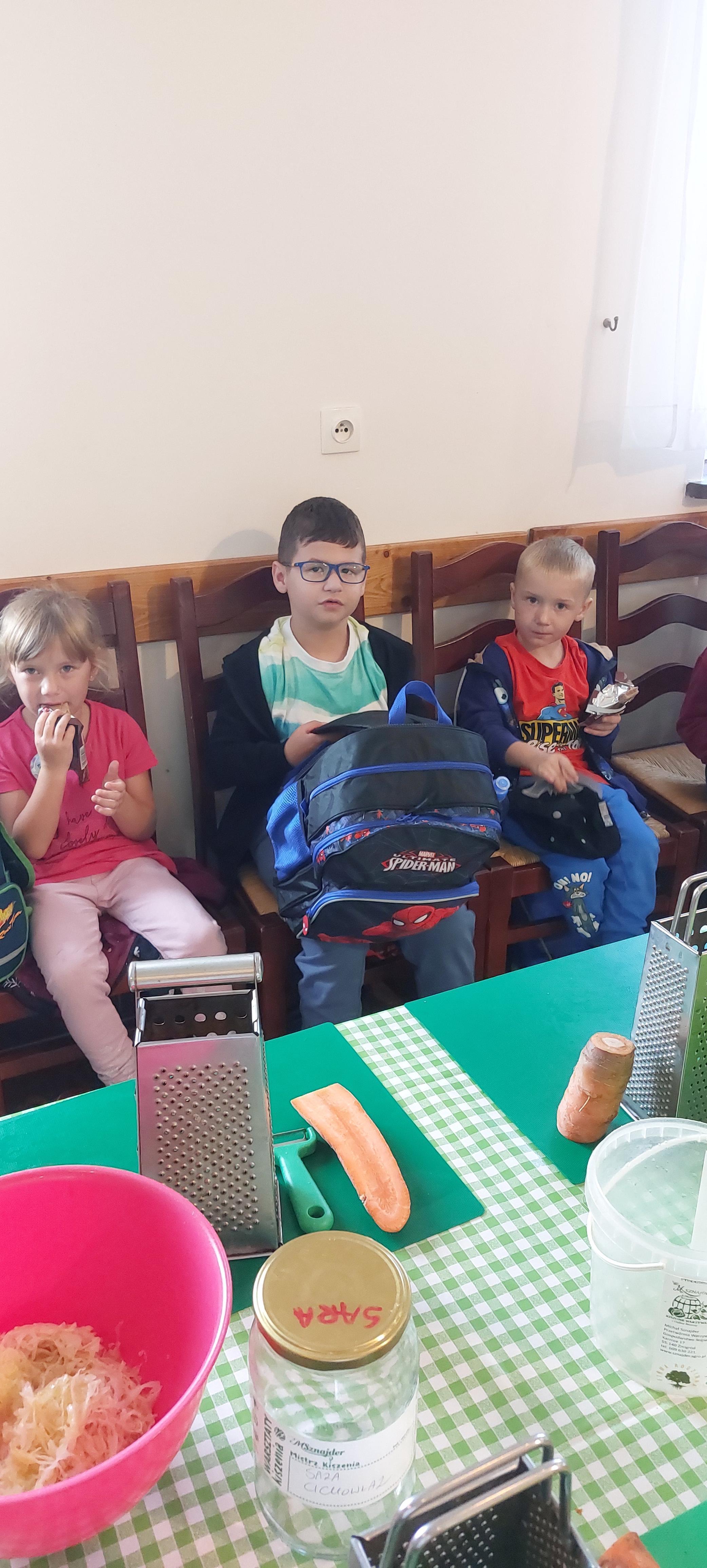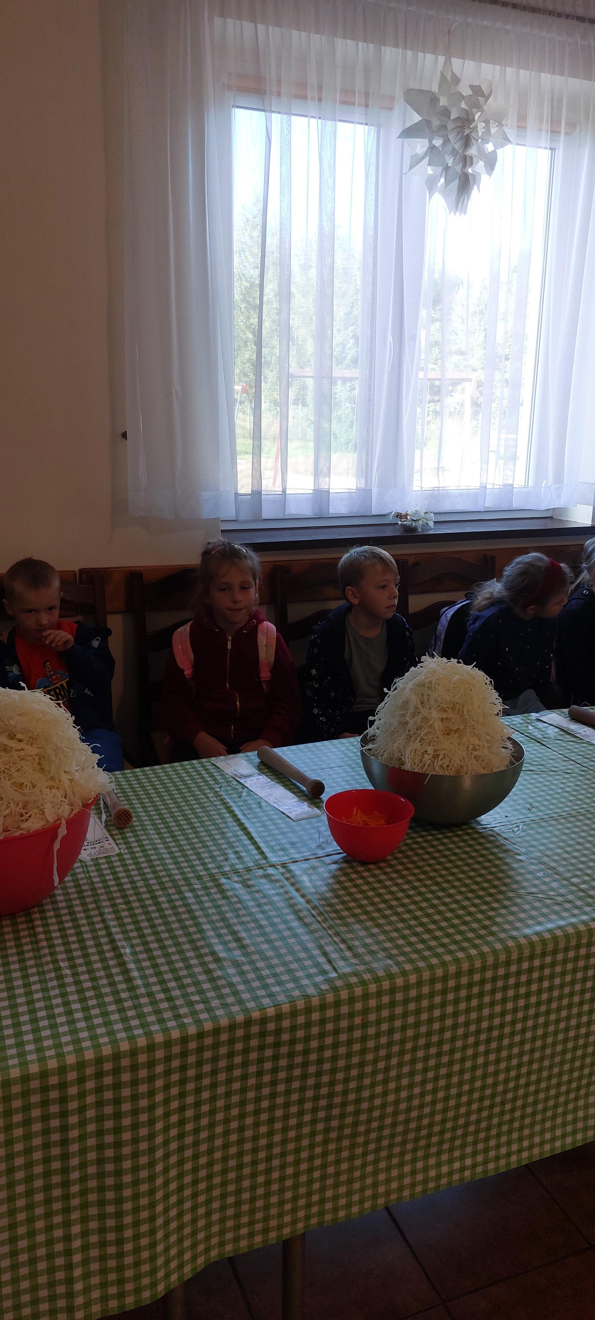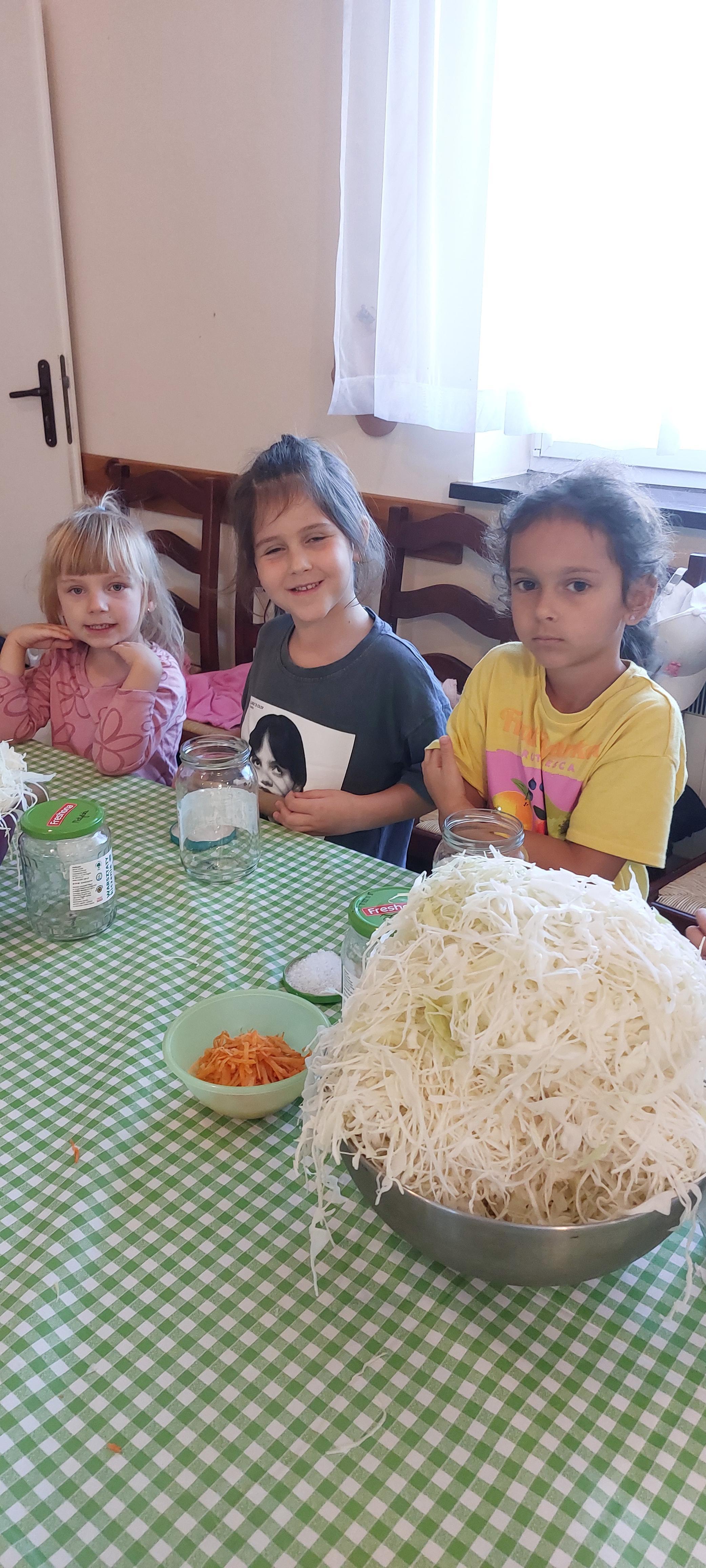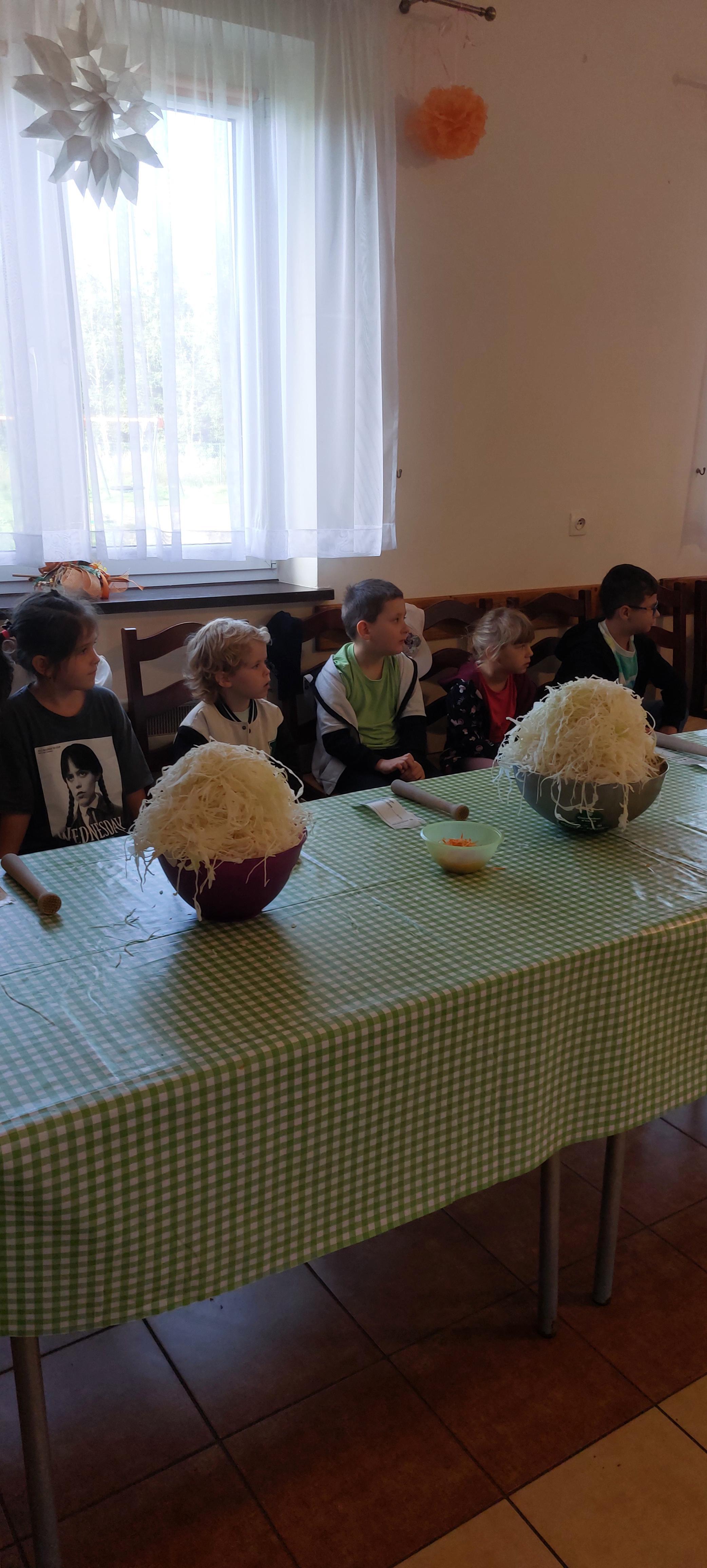 19 września dzieci 5-6 letnie z grupy "Skrzaty" wzięły udział w wycieczce do Państwa Sznajder. Pani Emilka przeprowadziła z dziećmi bardzo ciekawe warsztaty. Każdy miał okazję kisić kapustę, wykonać surówkę przygotowując wcześniej potrzebne produkty tj. marchewka, jabłko. Przedszkolaki pojechały również na pole. Wykopywały ziemniaki, które później wzięli do domu. Na zakończenie odbyły się zabawy na placu zabaw oraz każdy miał możliwość zjeść kiełbasę, pieczonego ziemniaka z ogniska. Pani Emilka wręczyła dzieciom certyfikat Kiszonkowego Masterszefa. Był to dzień pełen pozytywnych wrażeń;)