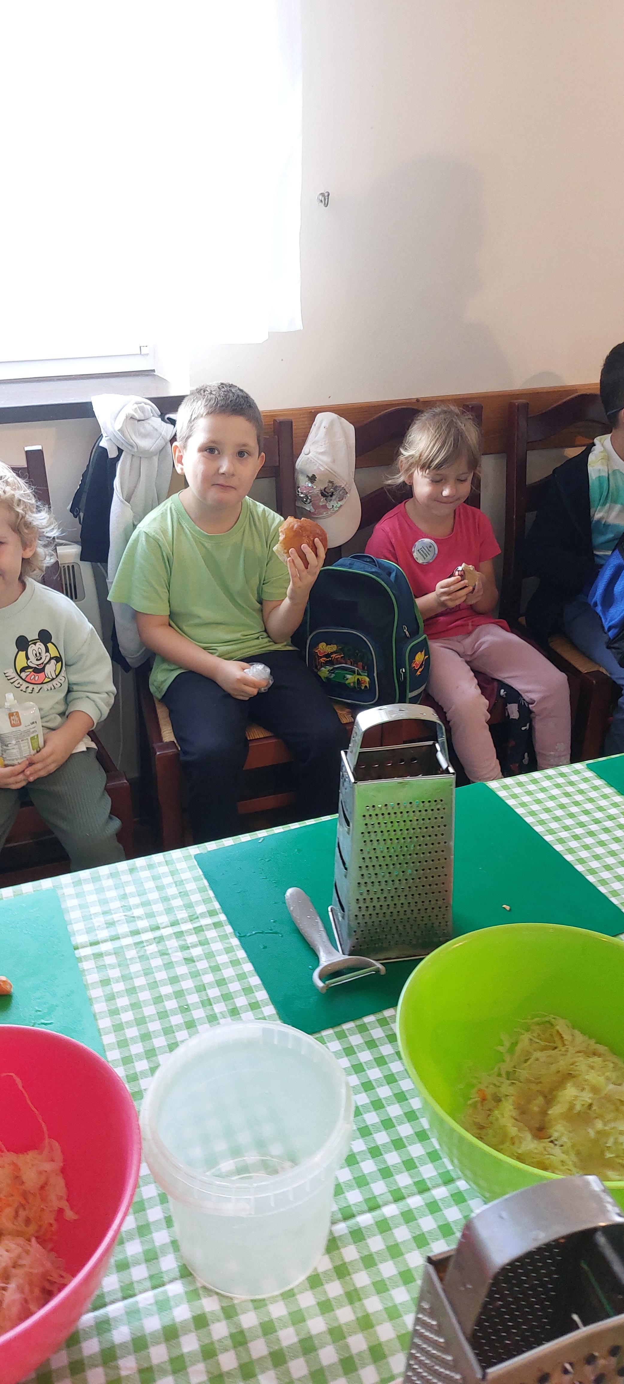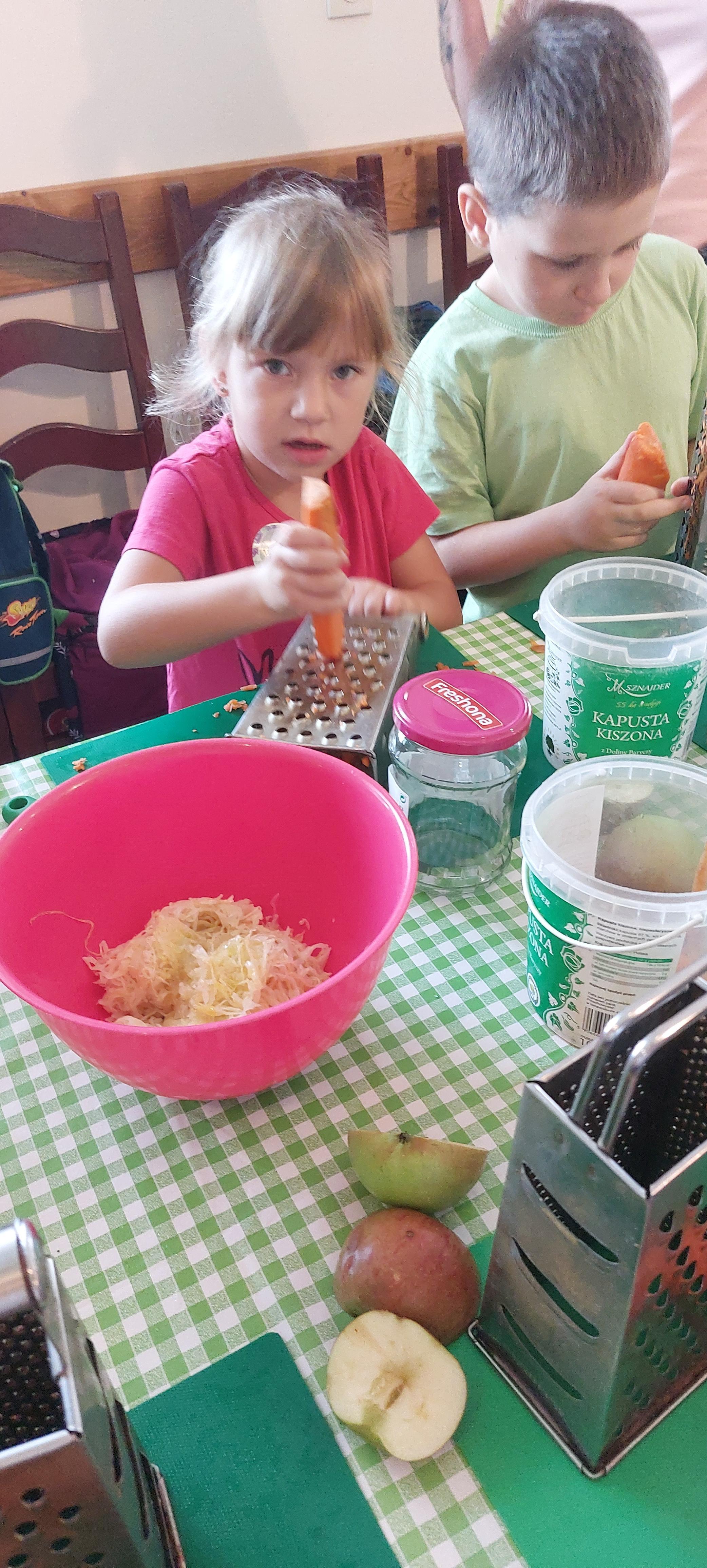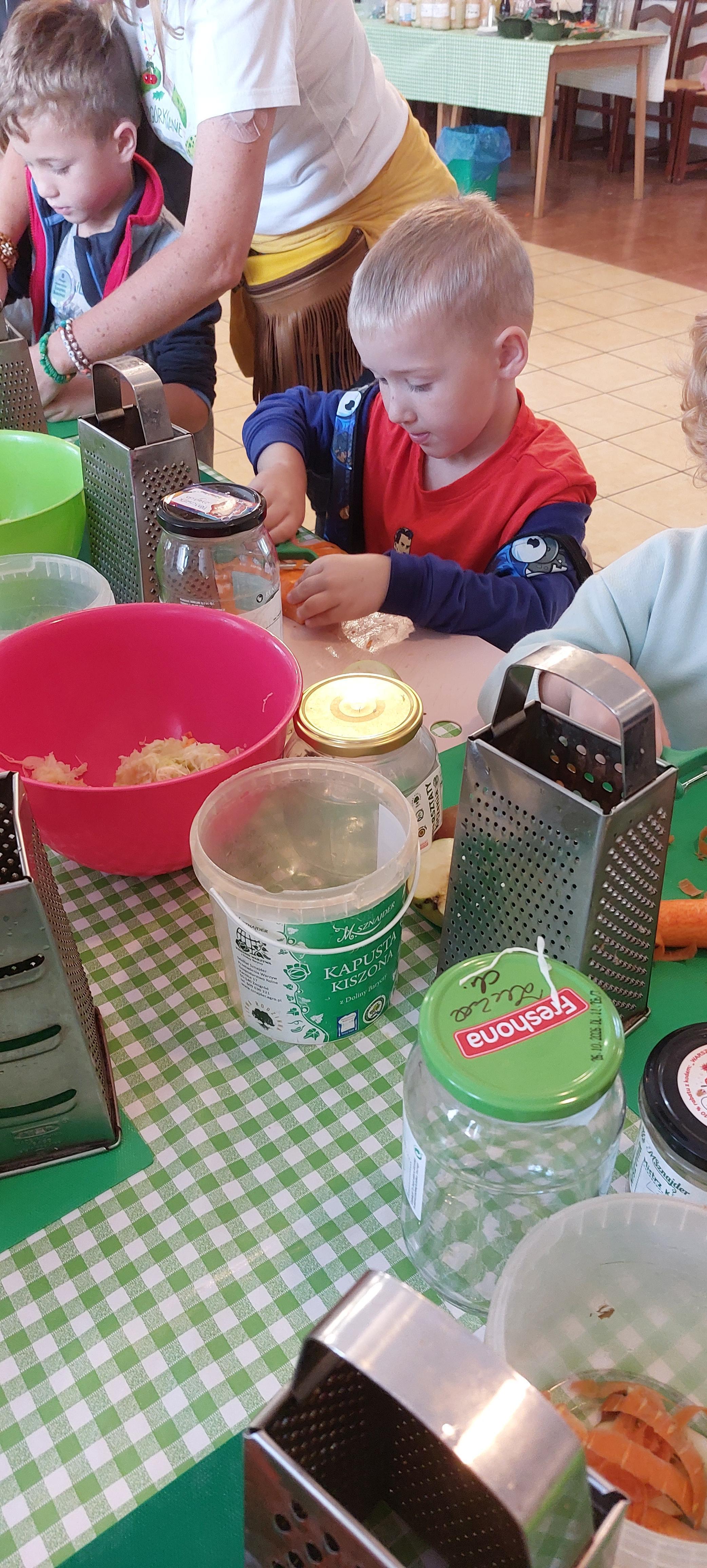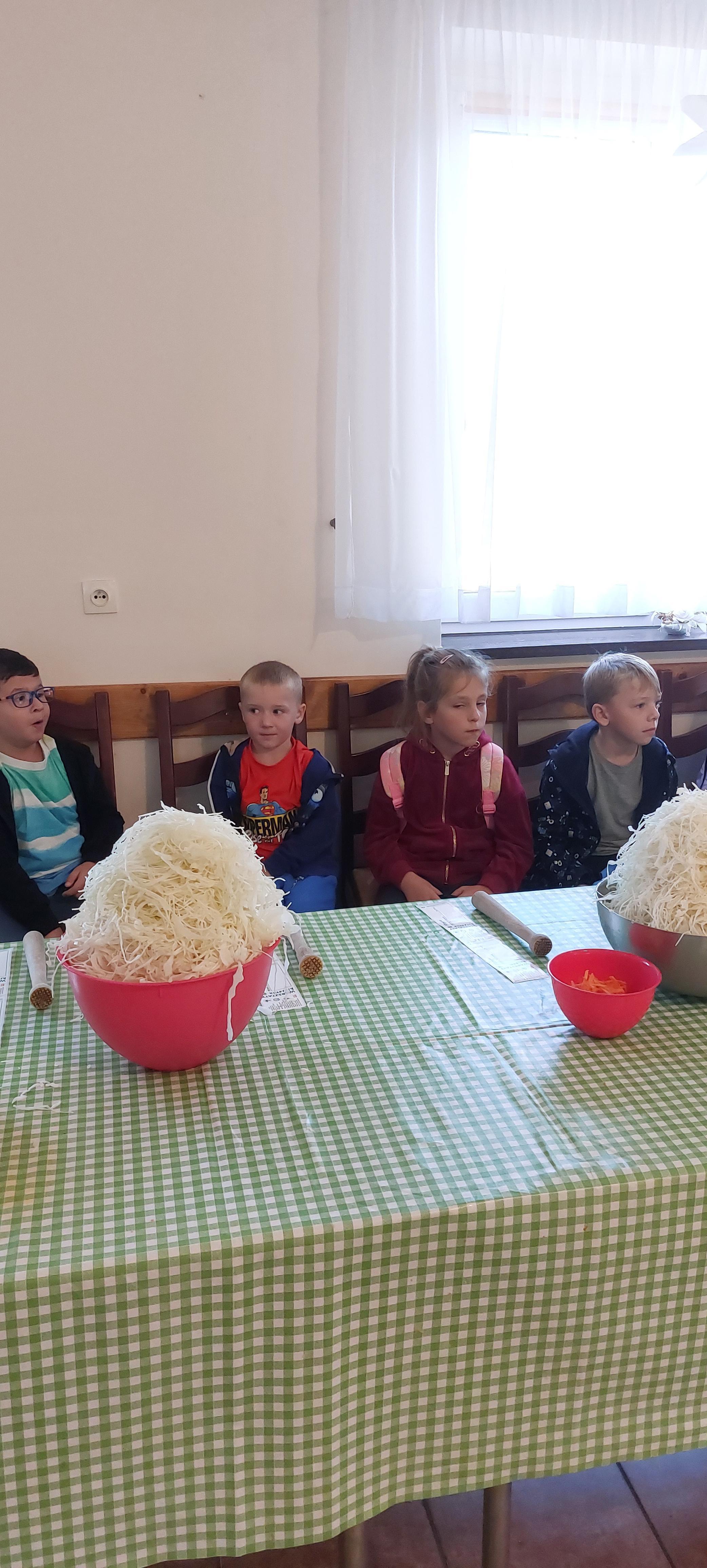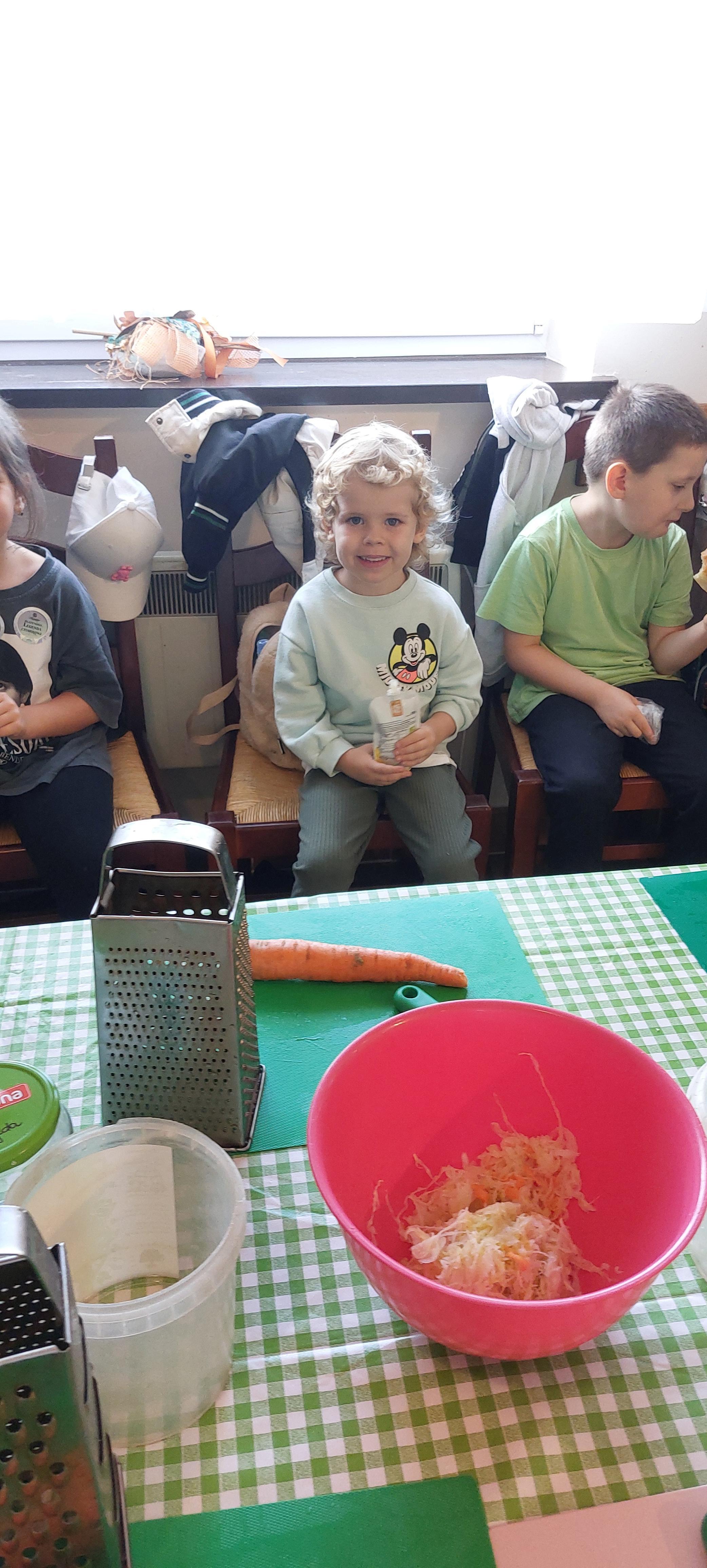 19 września dzieci 5-6 letnie z grupy "Skrzaty" wzięły udział w wycieczce do Państwa Sznajder. Pani Emilka przeprowadziła z dziećmi bardzo ciekawe warsztaty. Każdy miał okazję kisić kapustę, wykonać surówkę przygotowując wcześniej potrzebne produkty tj. marchewka, jabłko. Przedszkolaki pojechały również na pole. Wykopywały ziemniaki, które później wzięli do domu. Na zakończenie odbyły się zabawy na placu zabaw oraz każdy miał możliwość zjeść kiełbasę, pieczonego ziemniaka z ogniska. Pani Emilka wręczyła dzieciom certyfikat Kiszonkowego Masterszefa. Był to dzień pełen pozytywnych wrażeń;)