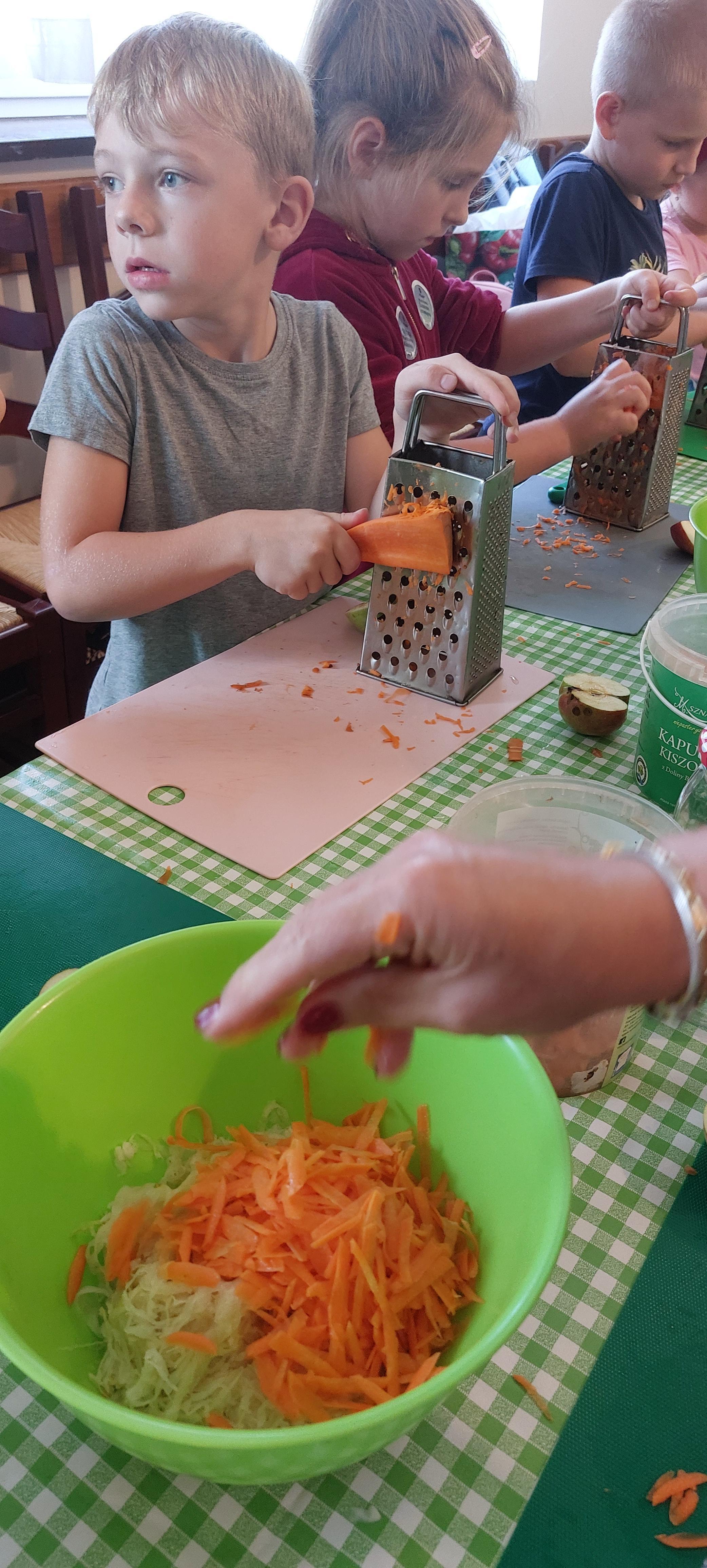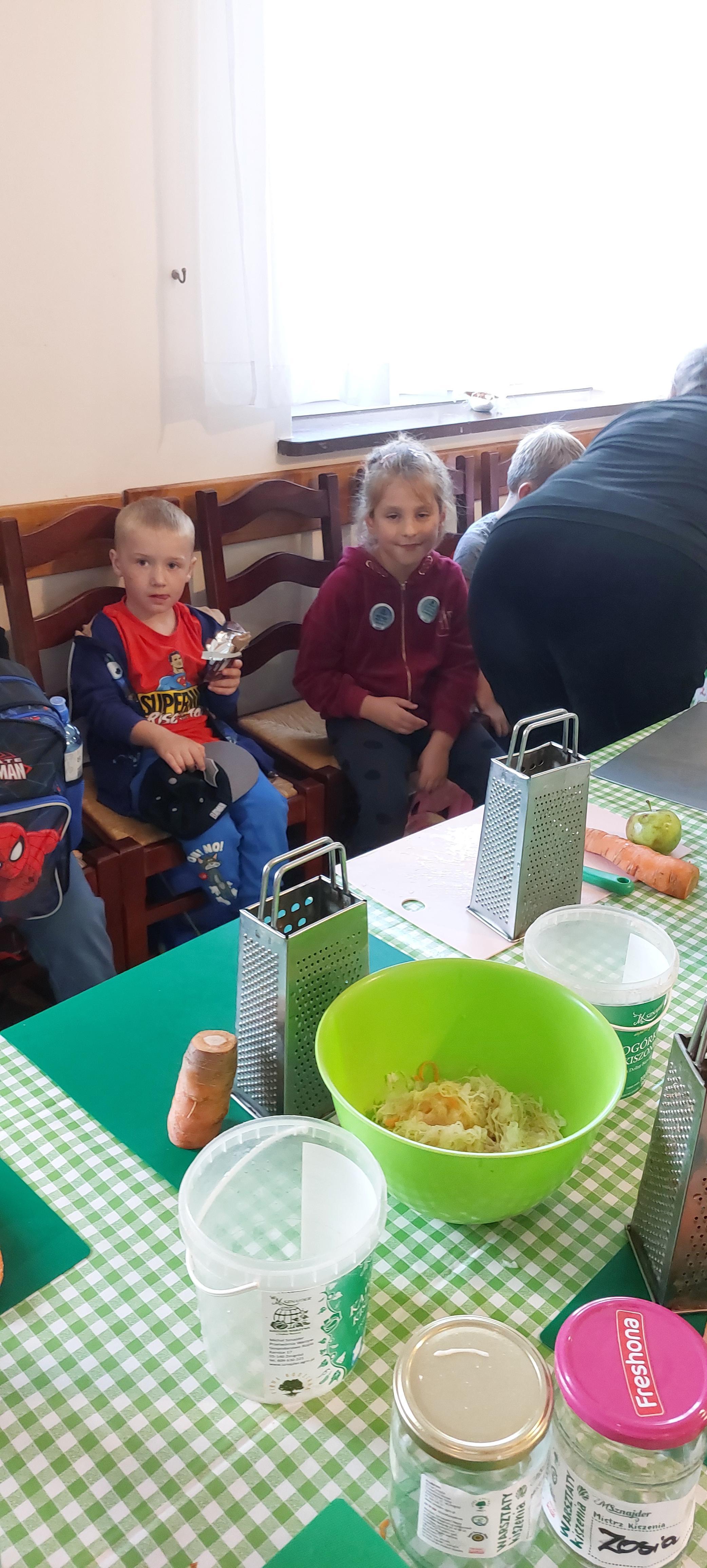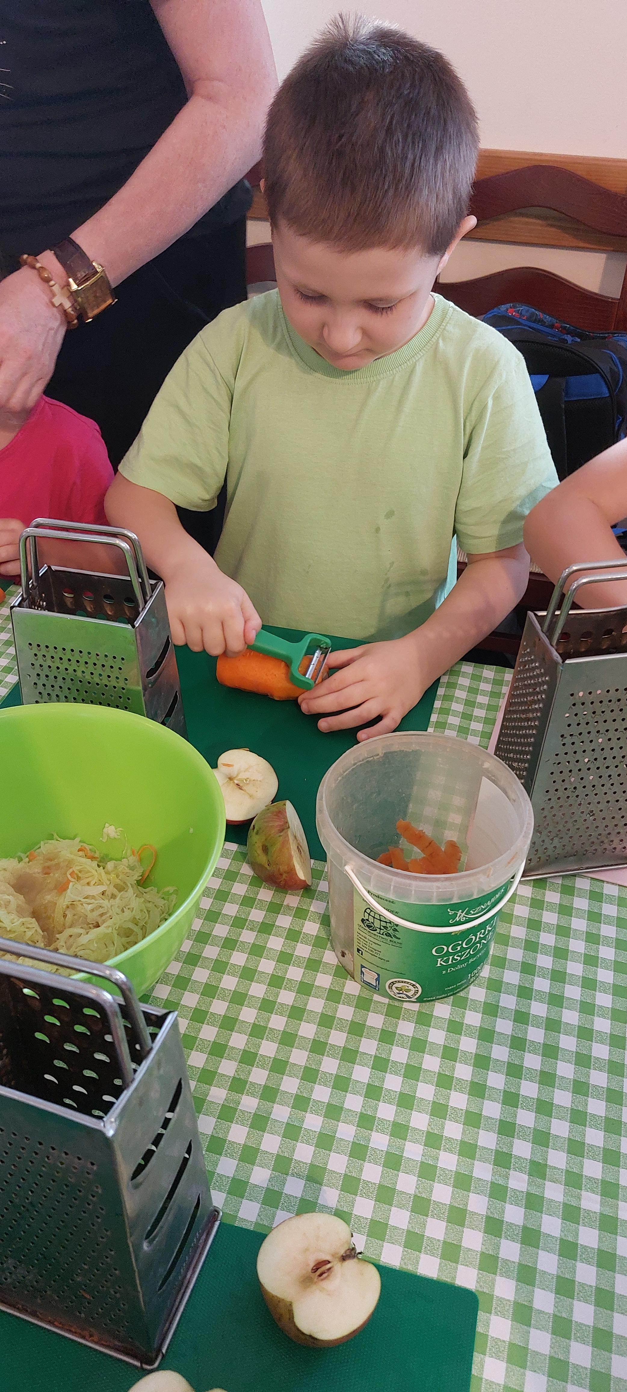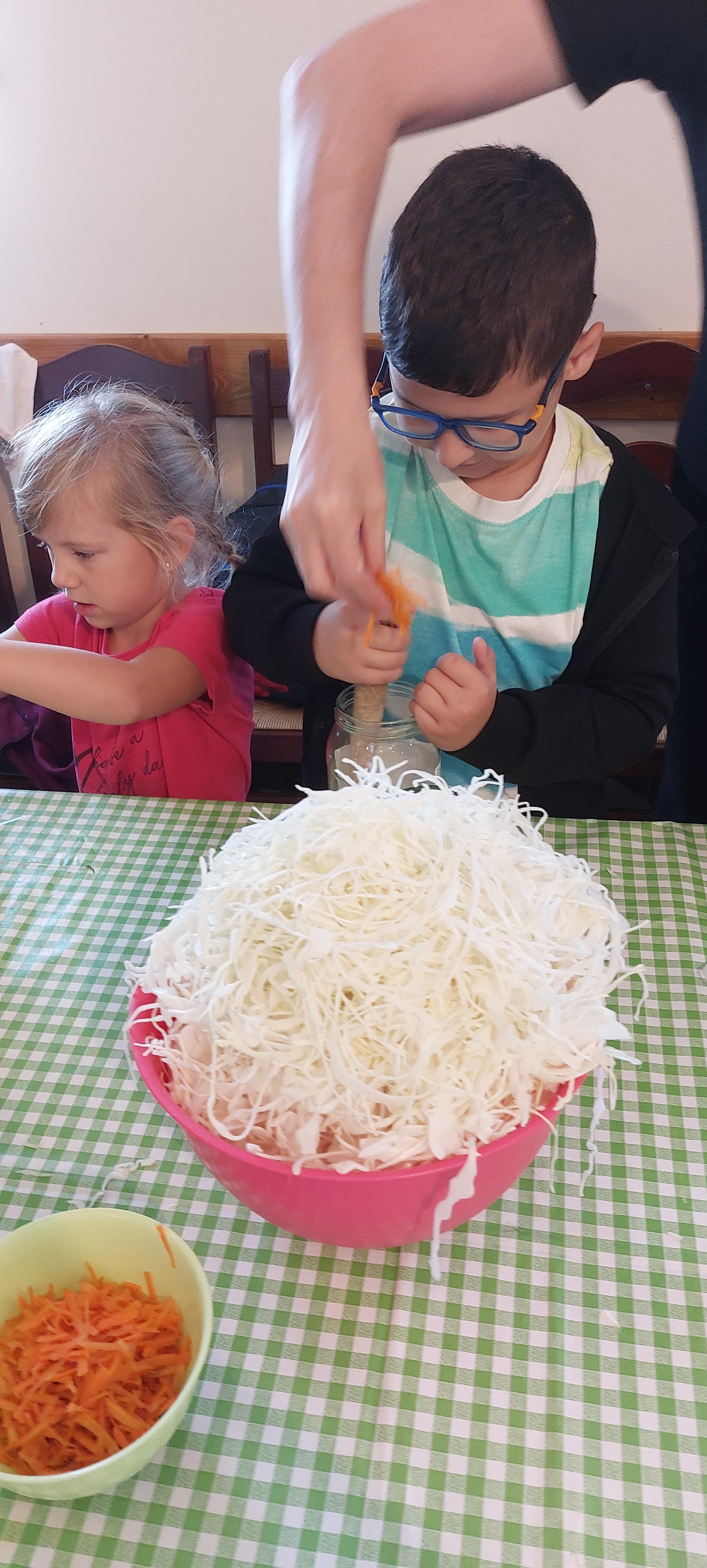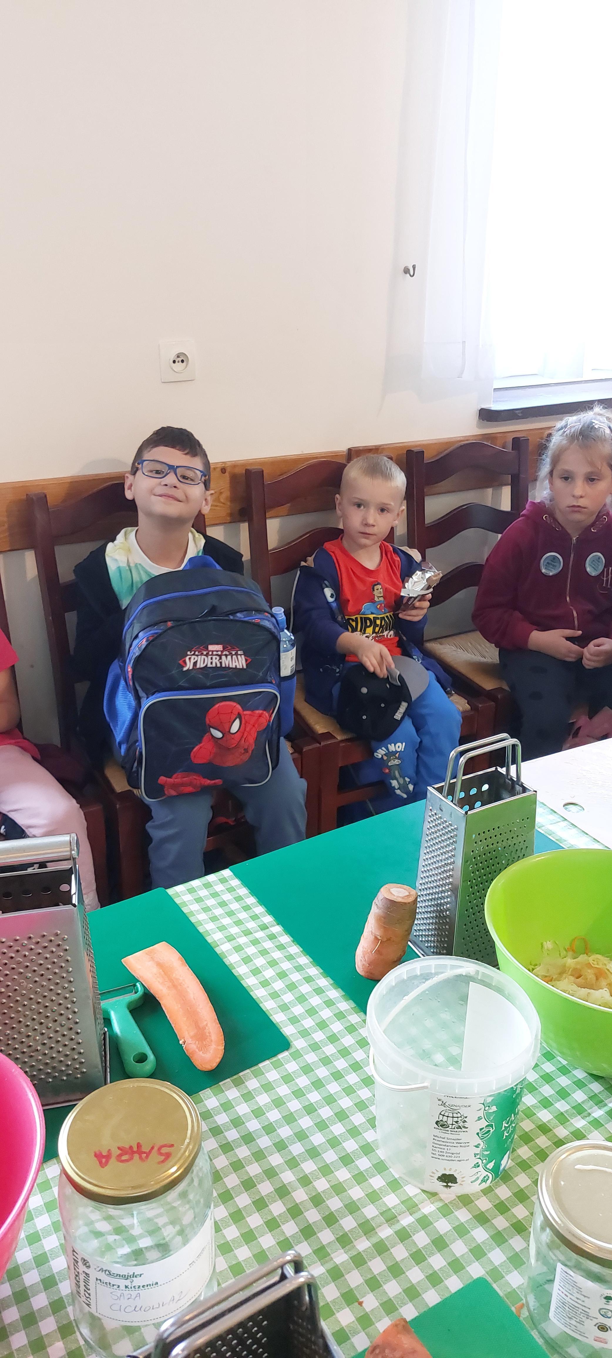 19 września dzieci 5-6 letnie z grupy "Skrzaty" wzięły udział w wycieczce do Państwa Sznajder. Pani Emilka przeprowadziła z dziećmi bardzo ciekawe warsztaty. Każdy miał okazję kisić kapustę, wykonać surówkę przygotowując wcześniej potrzebne produkty tj. marchewka, jabłko. Przedszkolaki pojechały również na pole. Wykopywały ziemniaki, które później wzięli do domu. Na zakończenie odbyły się zabawy na placu zabaw oraz każdy miał możliwość zjeść kiełbasę, pieczonego ziemniaka z ogniska. Pani Emilka wręczyła dzieciom certyfikat Kiszonkowego Masterszefa. Był to dzień pełen pozytywnych wrażeń;)