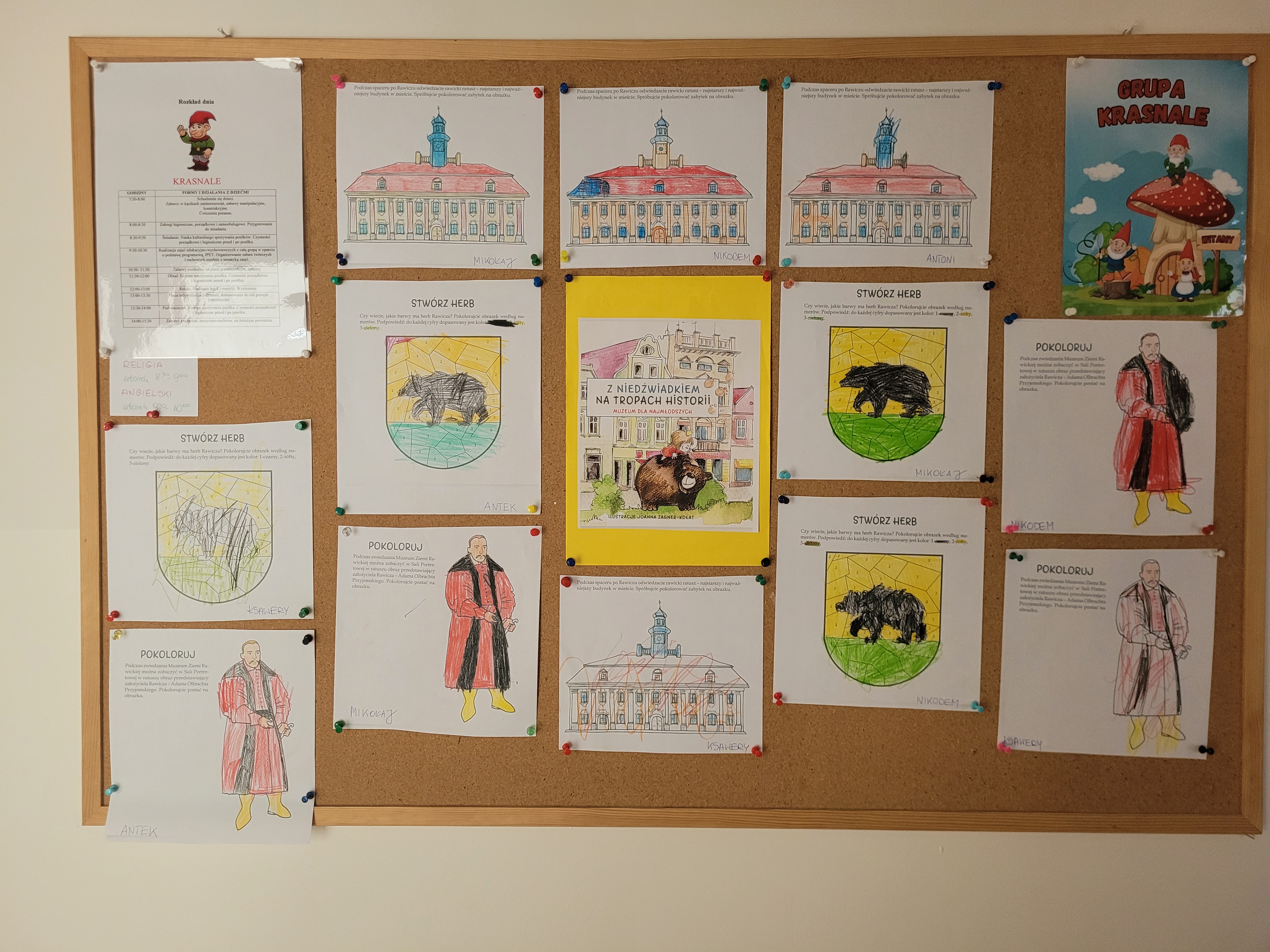 Od samego rana tropiliśmy historię z Rawickim Niedźwiadkiem. Po śniadaniu wybraliśmy się do Muzeum Ziemi Rawickiej, gdzie zwiedzaliśmy ratusz oraz uczestniczyliśmy w warsztatach.