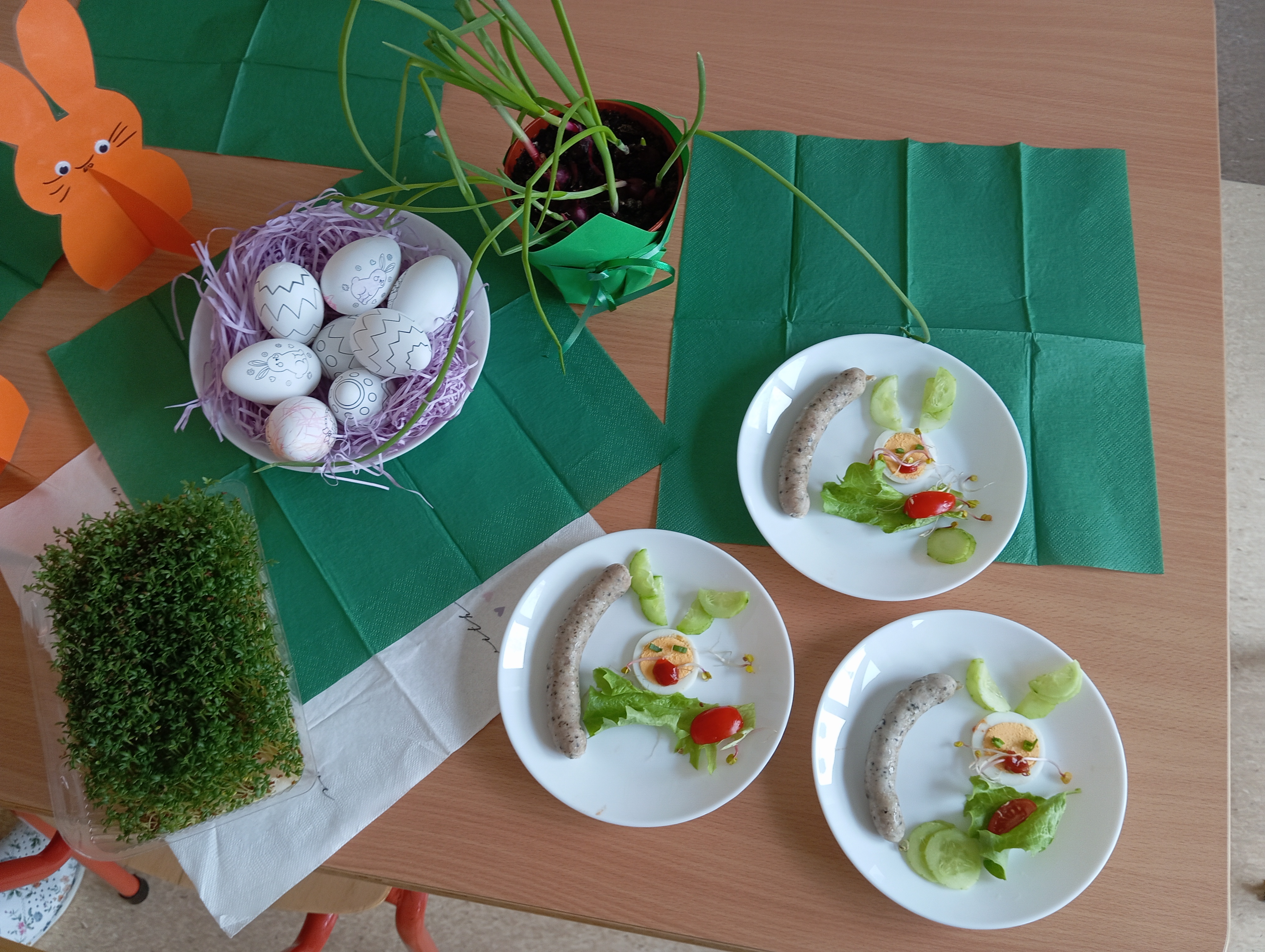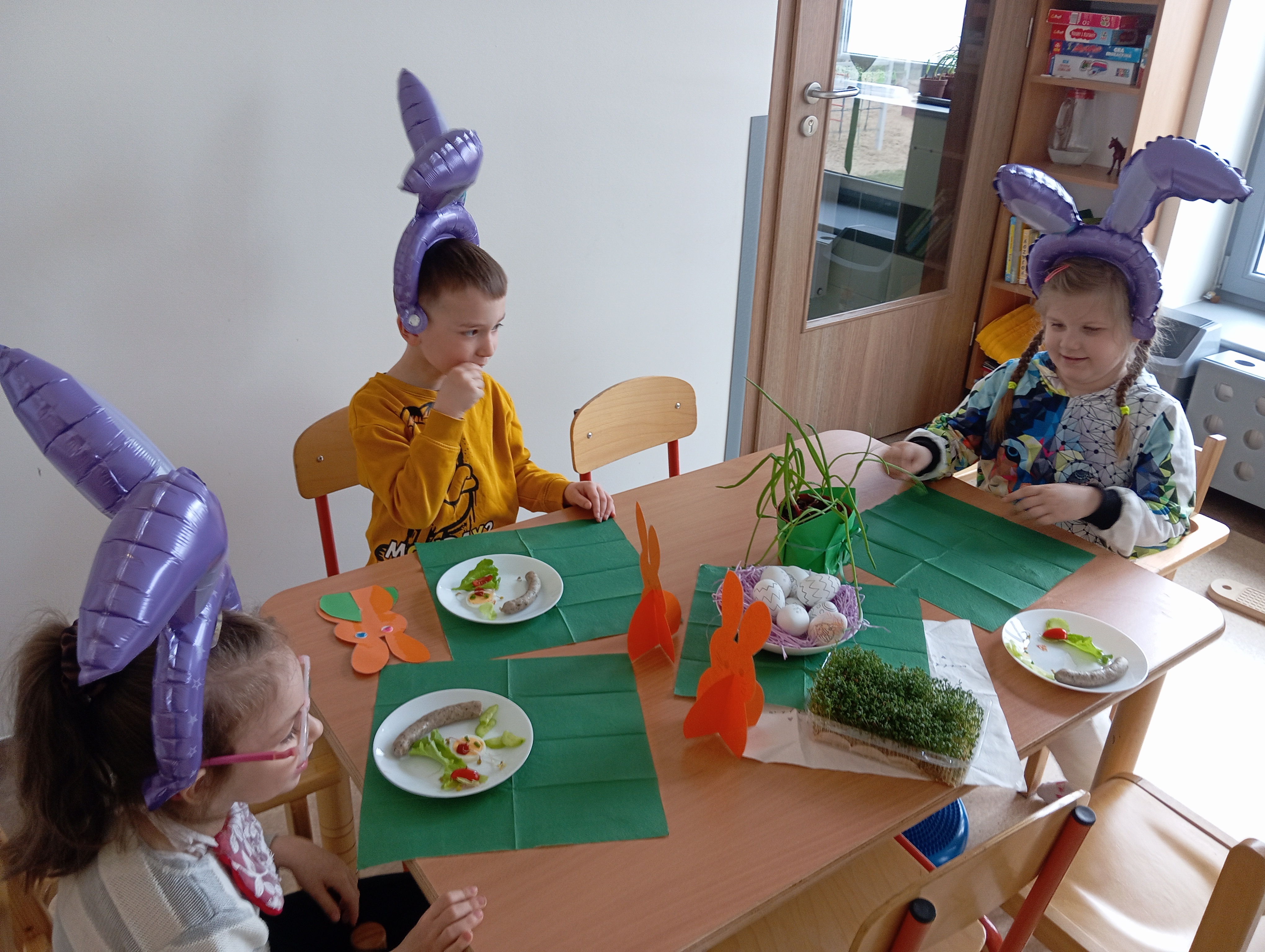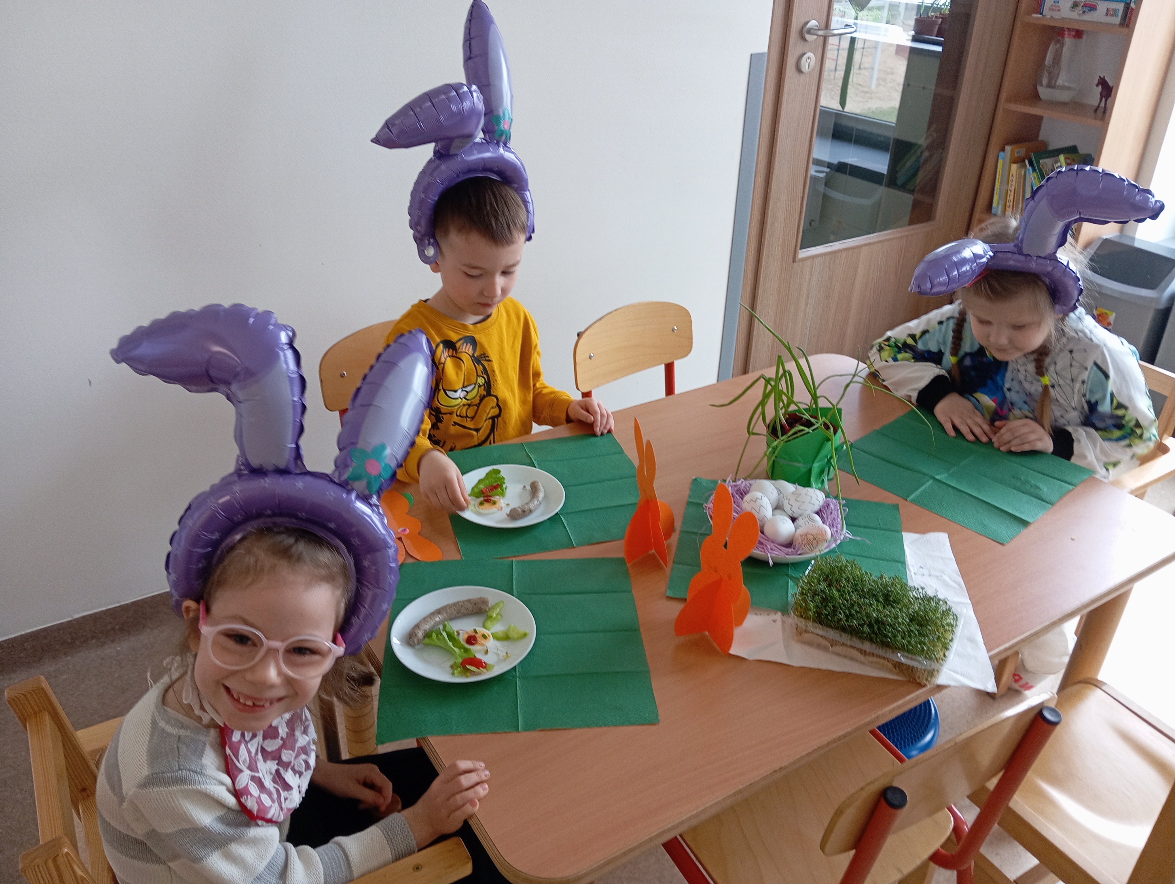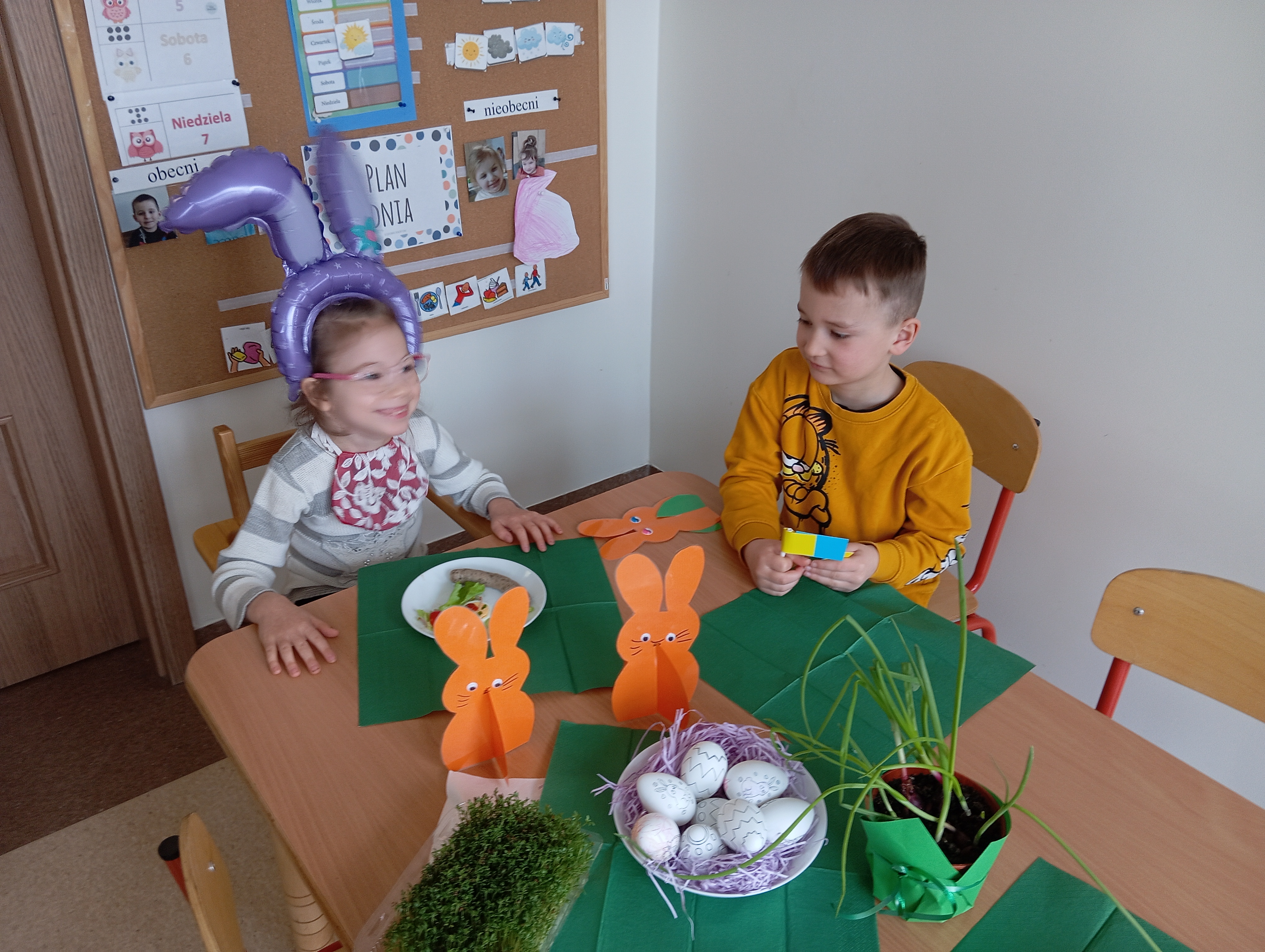To był dzień pełen atrakcji. Zaczęliśmy go od pysznego, świątecznego śniadania. Zaraz potem rozpoczęliśmy poszukiwania Zajączka, który zostawił dla nas list ze wskazówkami. Zadania wykonaliśmy bezbłędnie - znaleźlismy Zajączka i ukryte dla nas prezenty :)