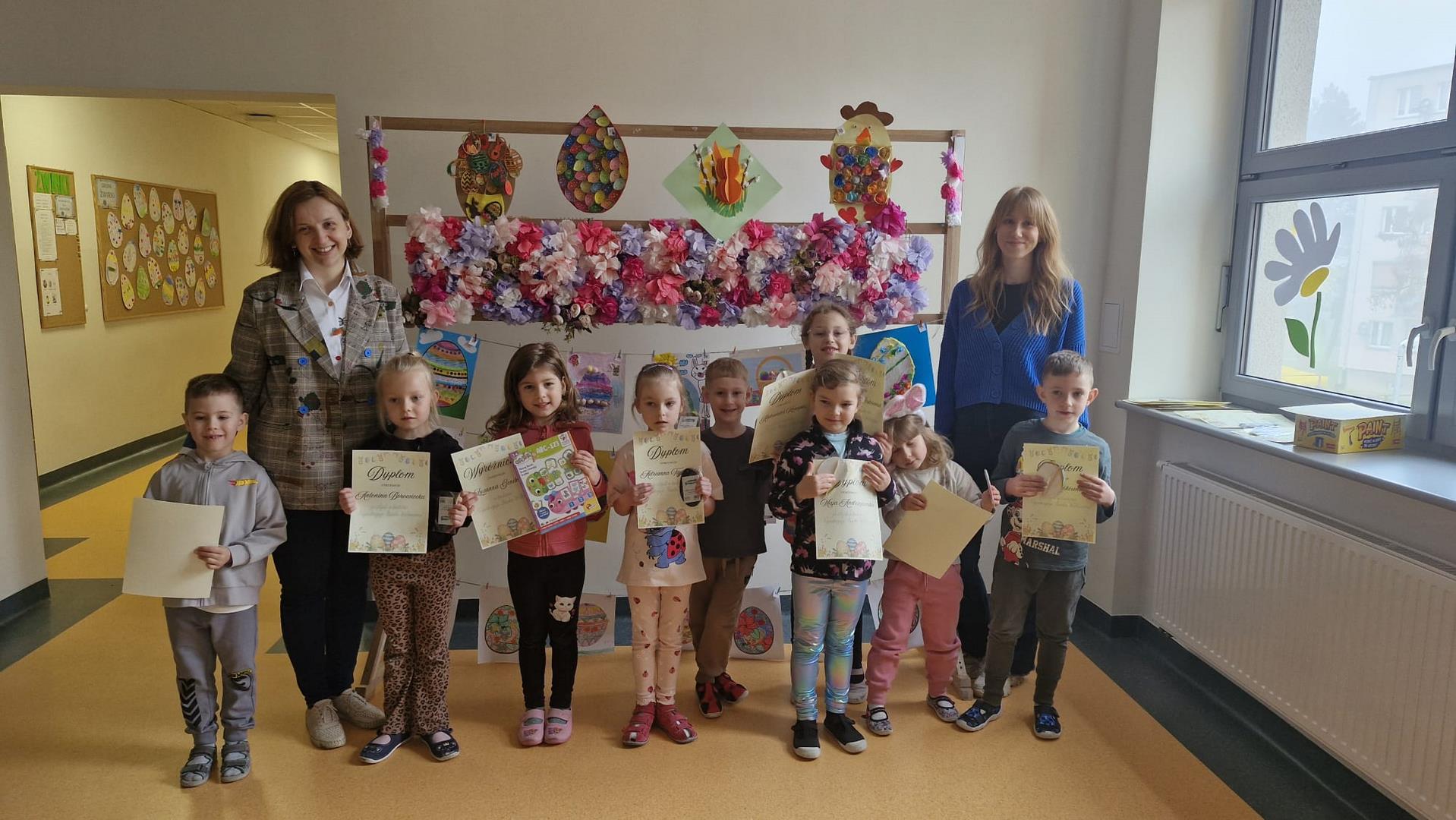 Święta Wielkanocne kojarzą się nam m.in. z jajkami, dlatego też w przedszkolu miał miejsce konkurs na "Najpiękniejszą wielkanocną pisankę", a tuż przed samymi świętami nastąpiło rozstrzygnięcie konkursu. Wszyscy uczestnicy konkursu otrzymali dyplom oraz upominek, a praca naszej Zuzi została wyróżniona! Gratulujemy wszystkim!