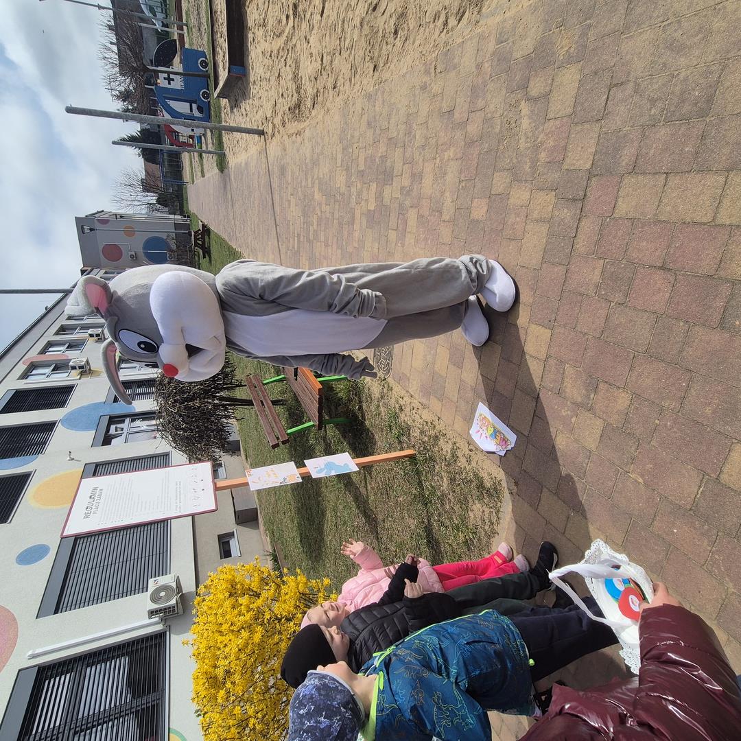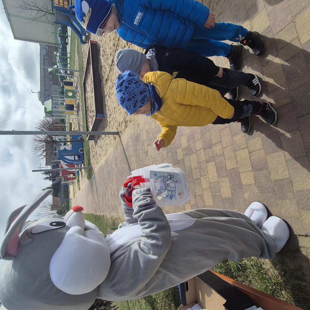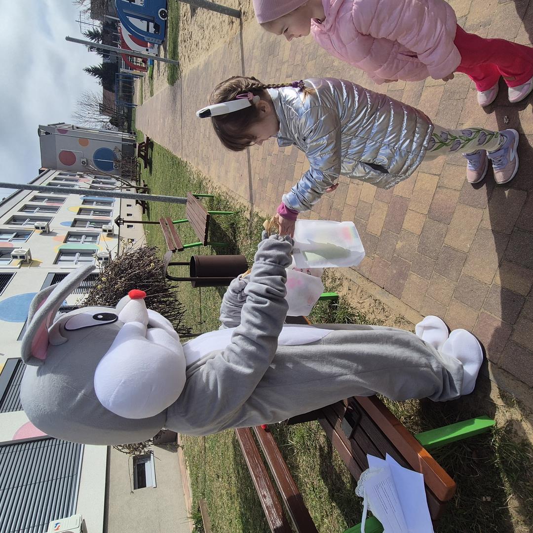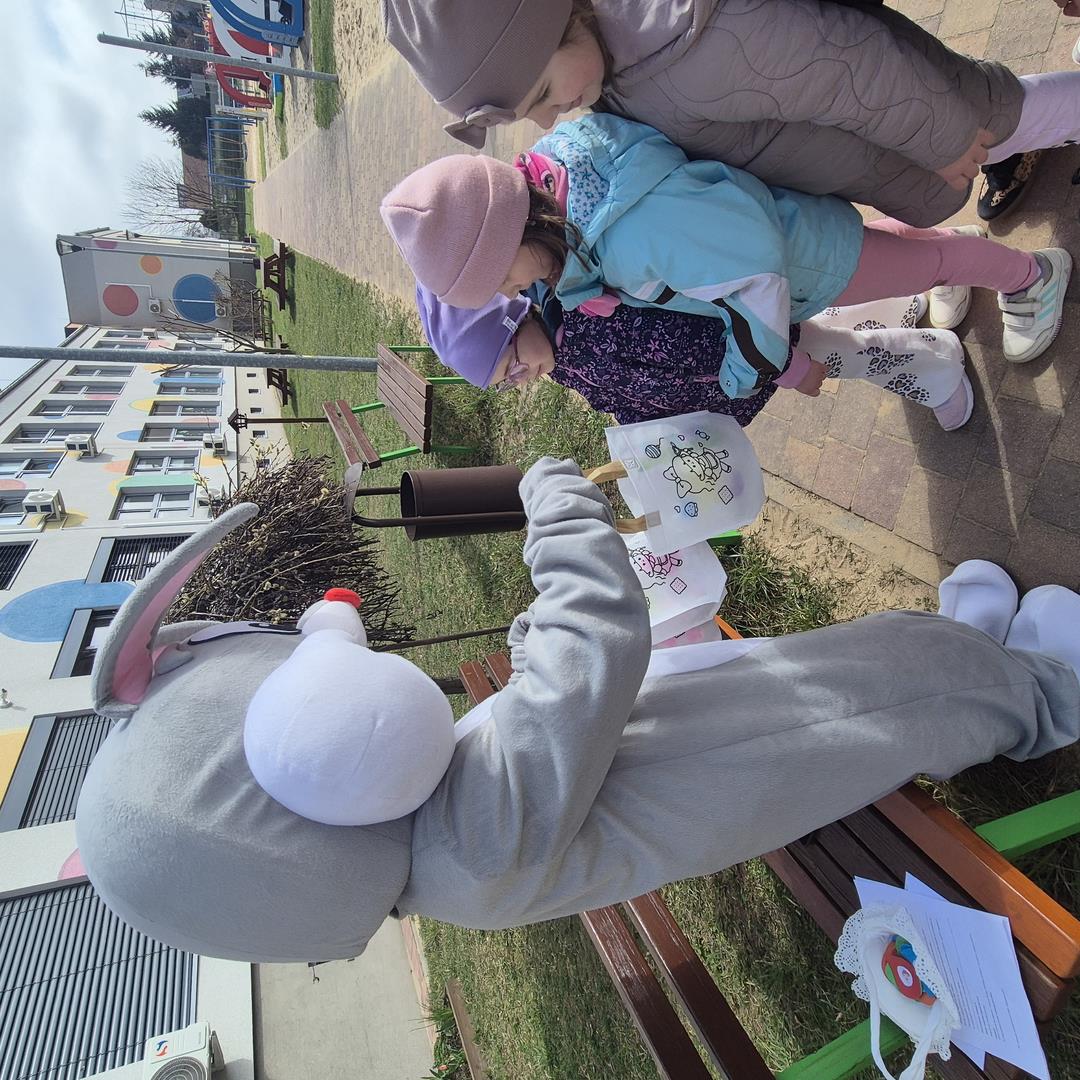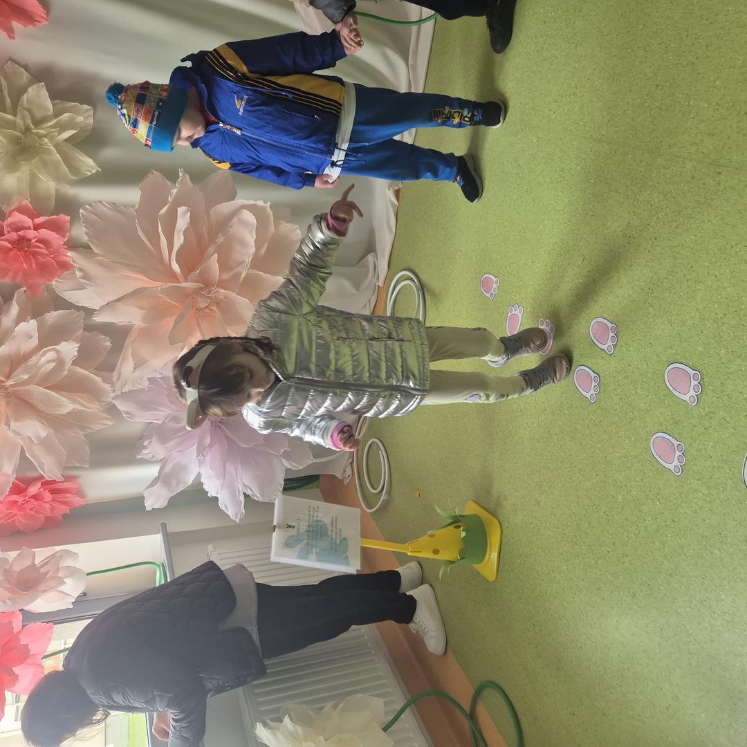 W środę przedświąteczną mieliśmy dzień atrakcji. Rozpoczęliśmy śniadankiem wielkanocnym, malowaliśmy farbami, a następnie poszukiwaliśmy zajączka. Było wesoło, ponieważ najpierw musieliśmy przejść zadania: rozwiązywaliśmy zagadki, zbieraliśmy jajeczka, przyklejaliśmy futerko zajączkowi czy graliśmy w kręgle.. Nie było łatwo, ale cała grupa spisała się bardzo dobrze i dotarliśmy do mety gdzie czekała na nas nagroda spotkanie z Zajączkiem. Wspólnie zatańczyliśmy i otrzymaliśmy po upominku. Zapraszam do galerii:)