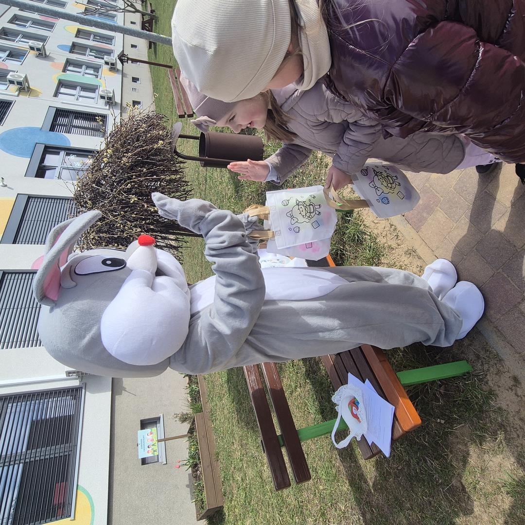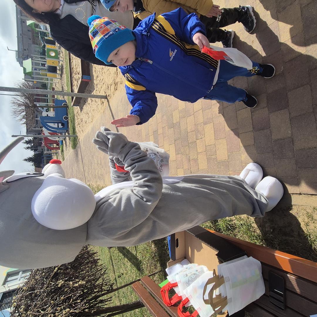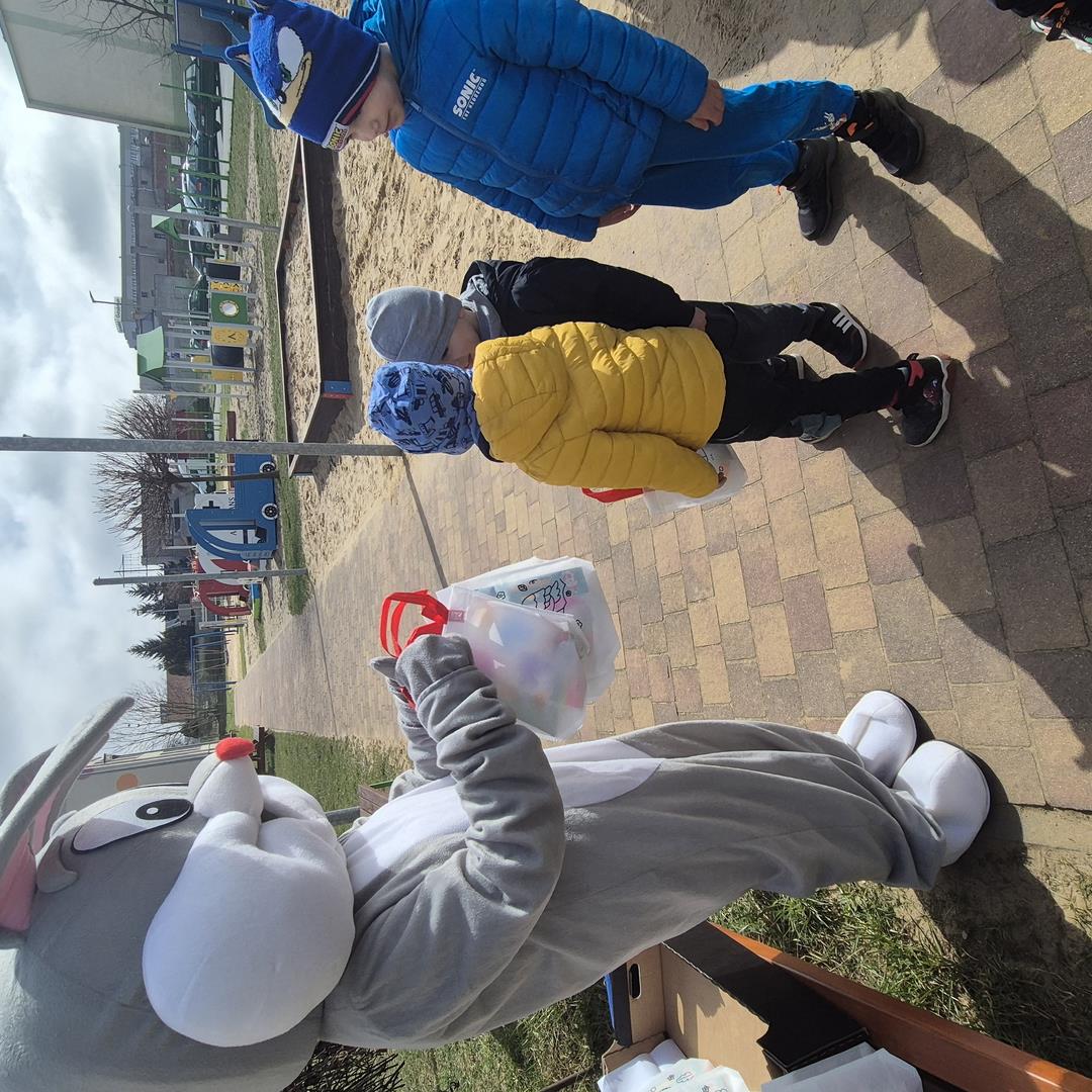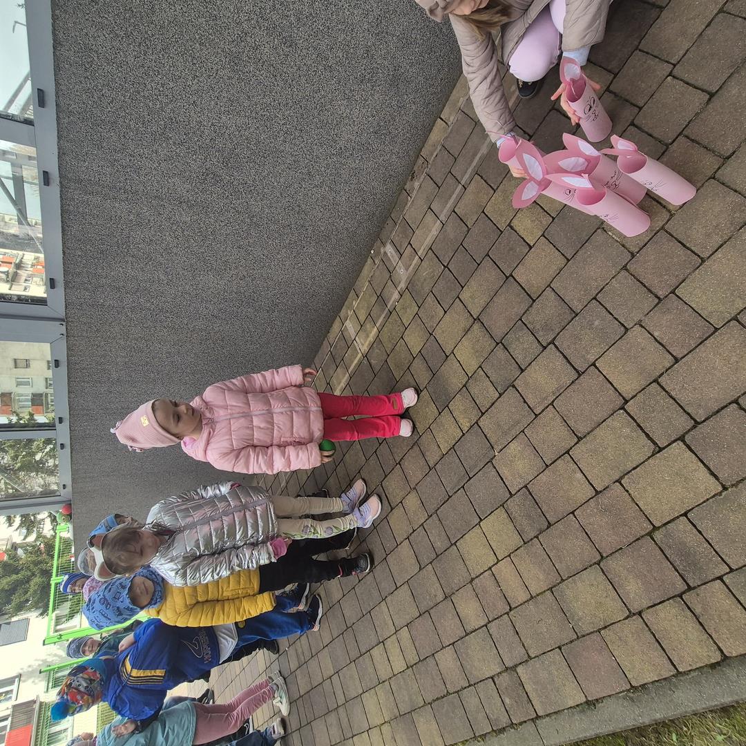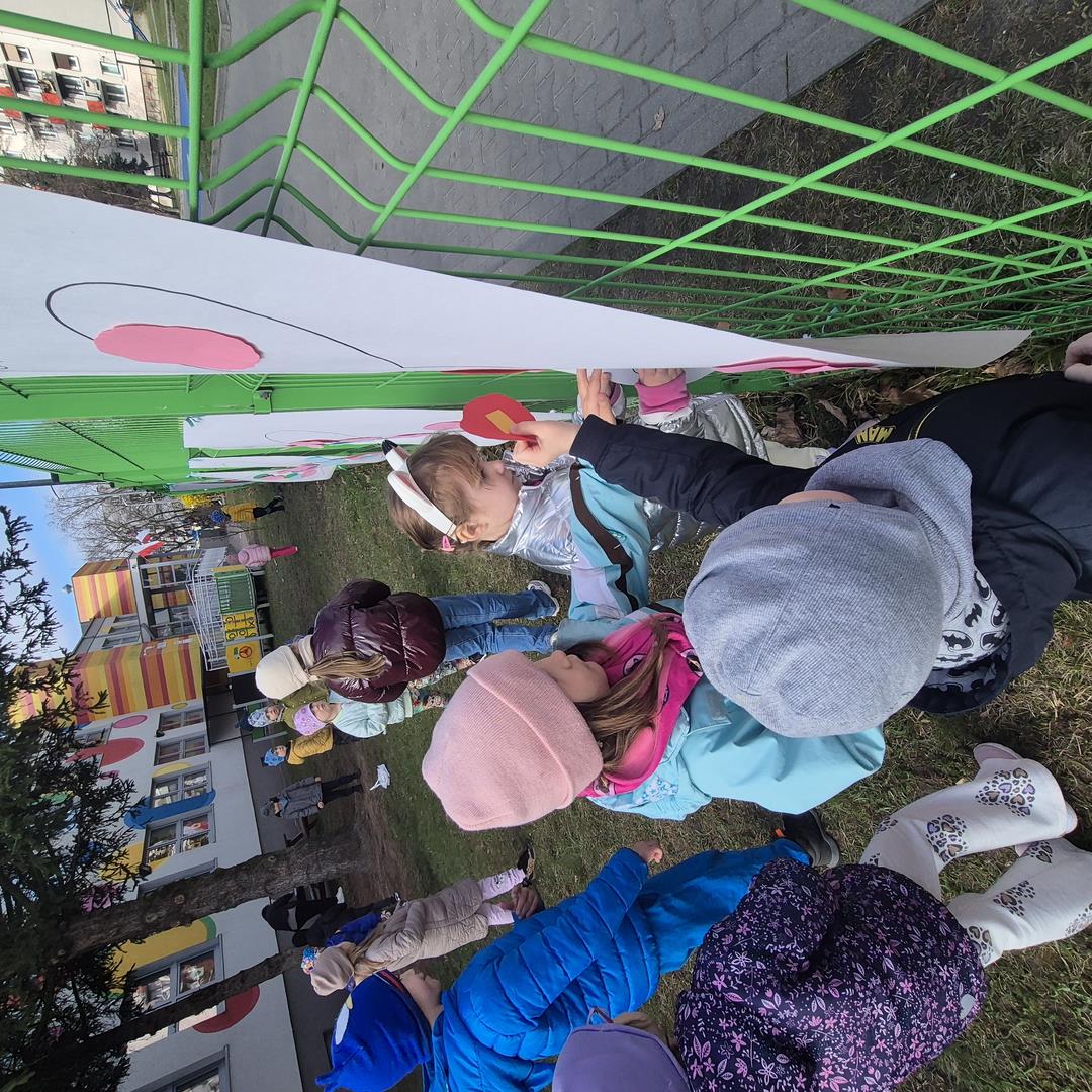W środę przedświąteczną mieliśmy dzień atrakcji. Rozpoczęliśmy śniadankiem wielkanocnym, malowaliśmy farbami, a następnie poszukiwaliśmy zajączka. Było wesoło, ponieważ najpierw musieliśmy przejść zadania: rozwiązywaliśmy zagadki, zbieraliśmy jajeczka, przyklejaliśmy futerko zajączkowi czy graliśmy w kręgle.. Nie było łatwo, ale cała grupa spisała się bardzo dobrze i dotarliśmy do mety gdzie czekała na nas nagroda spotkanie z Zajączkiem. Wspólnie zatańczyliśmy i otrzymaliśmy po upominku. Zapraszam do galerii:)