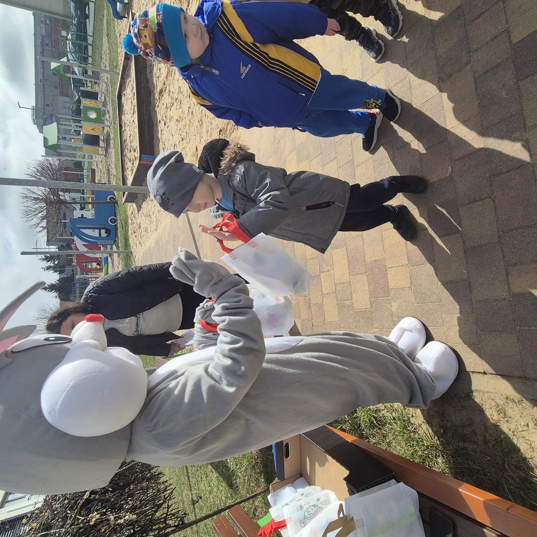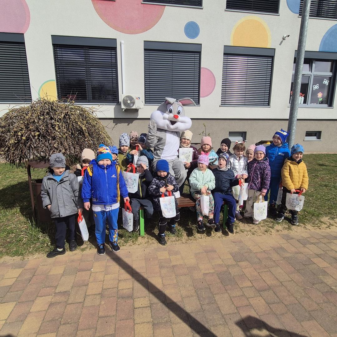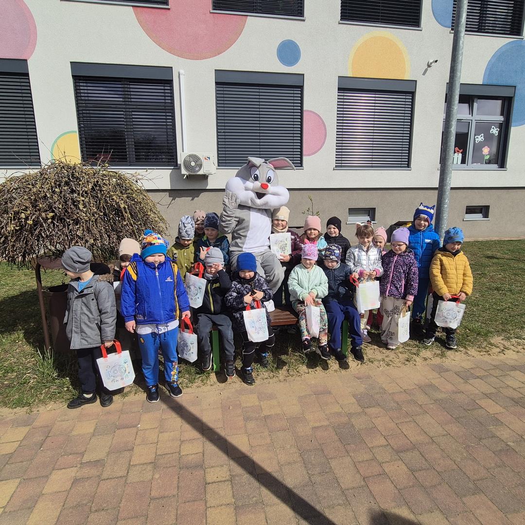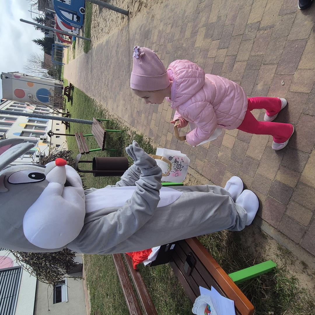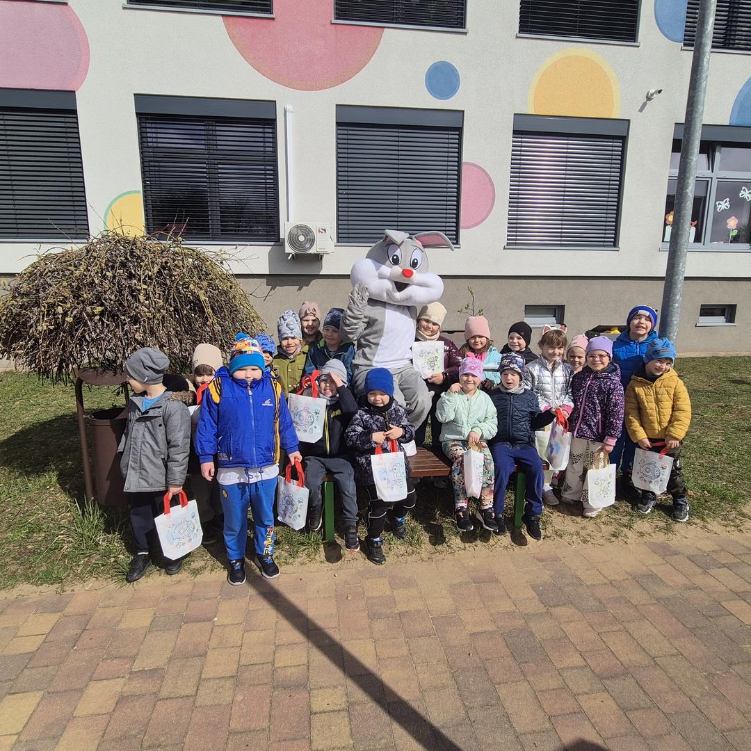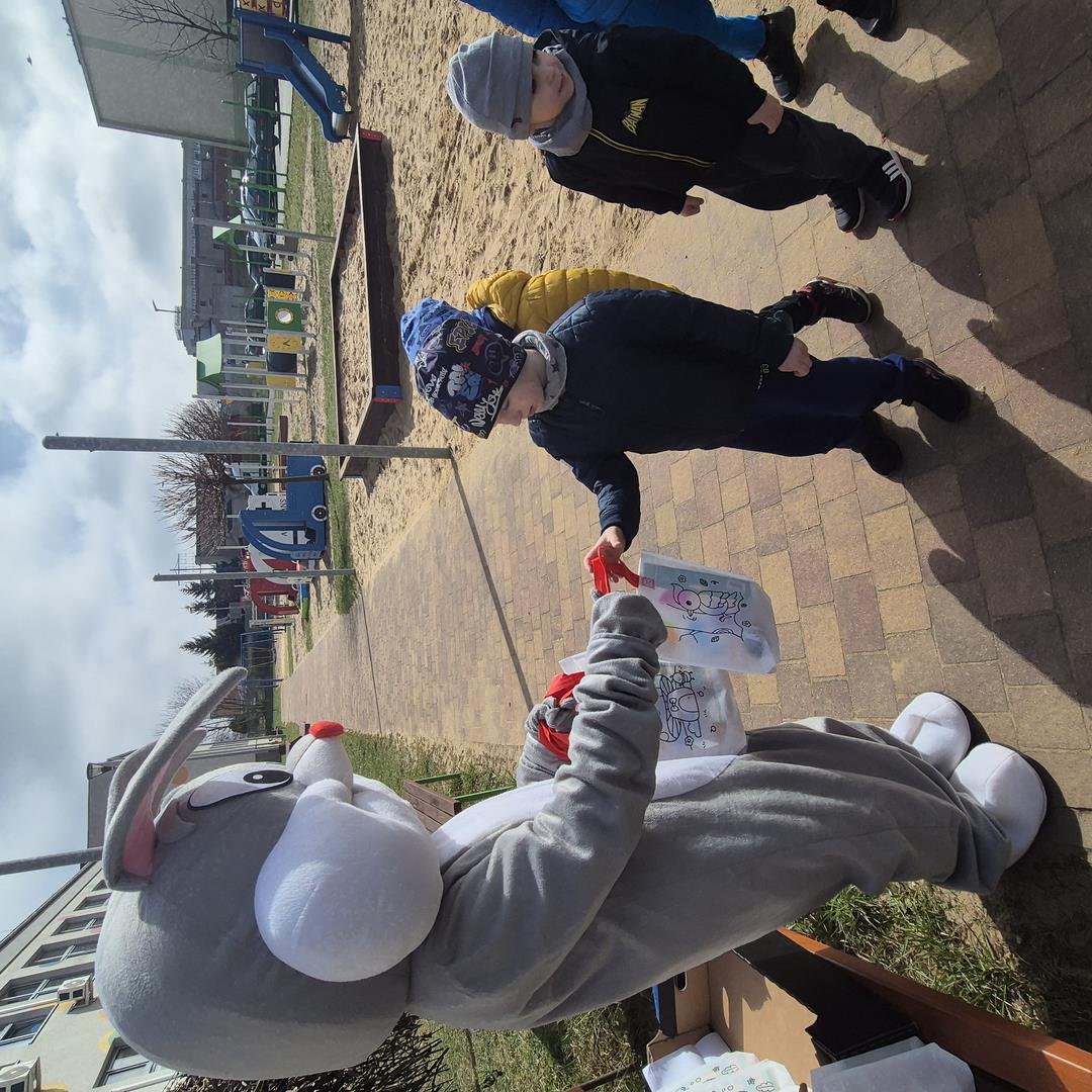 W środę przedświąteczną mieliśmy dzień atrakcji. Rozpoczęliśmy śniadankiem wielkanocnym, malowaliśmy farbami, a następnie poszukiwaliśmy zajączka. Było wesoło, ponieważ najpierw musieliśmy przejść zadania: rozwiązywaliśmy zagadki, zbieraliśmy jajeczka, przyklejaliśmy futerko zajączkowi czy graliśmy w kręgle.. Nie było łatwo, ale cała grupa spisała się bardzo dobrze i dotarliśmy do mety gdzie czekała na nas nagroda spotkanie z Zajączkiem. Wspólnie zatańczyliśmy i otrzymaliśmy po upominku. Zapraszam do galerii:)
