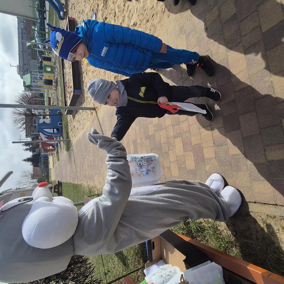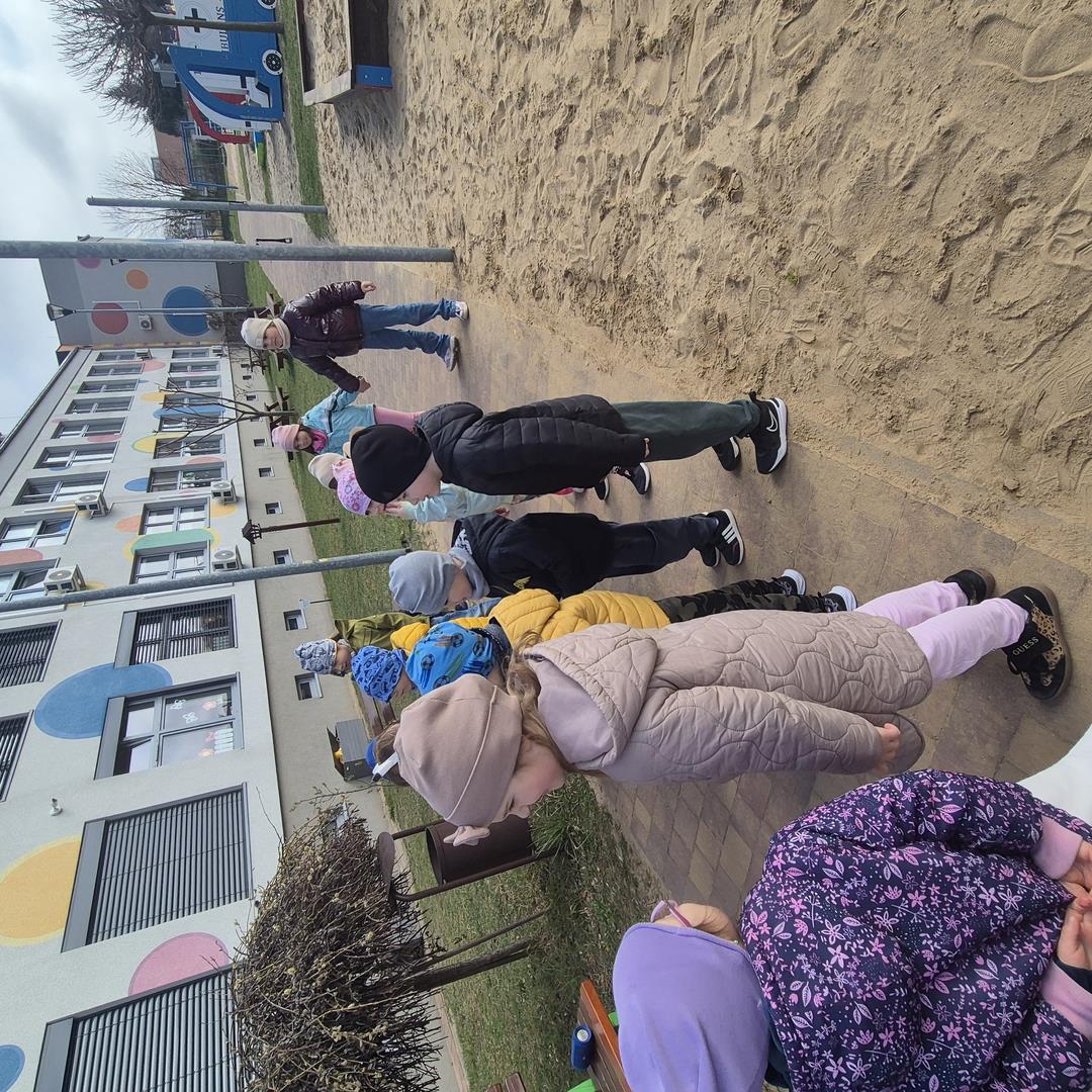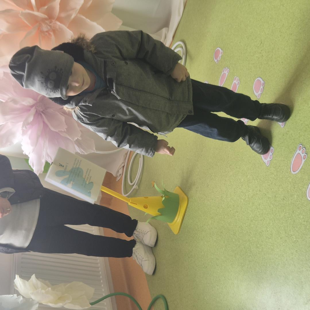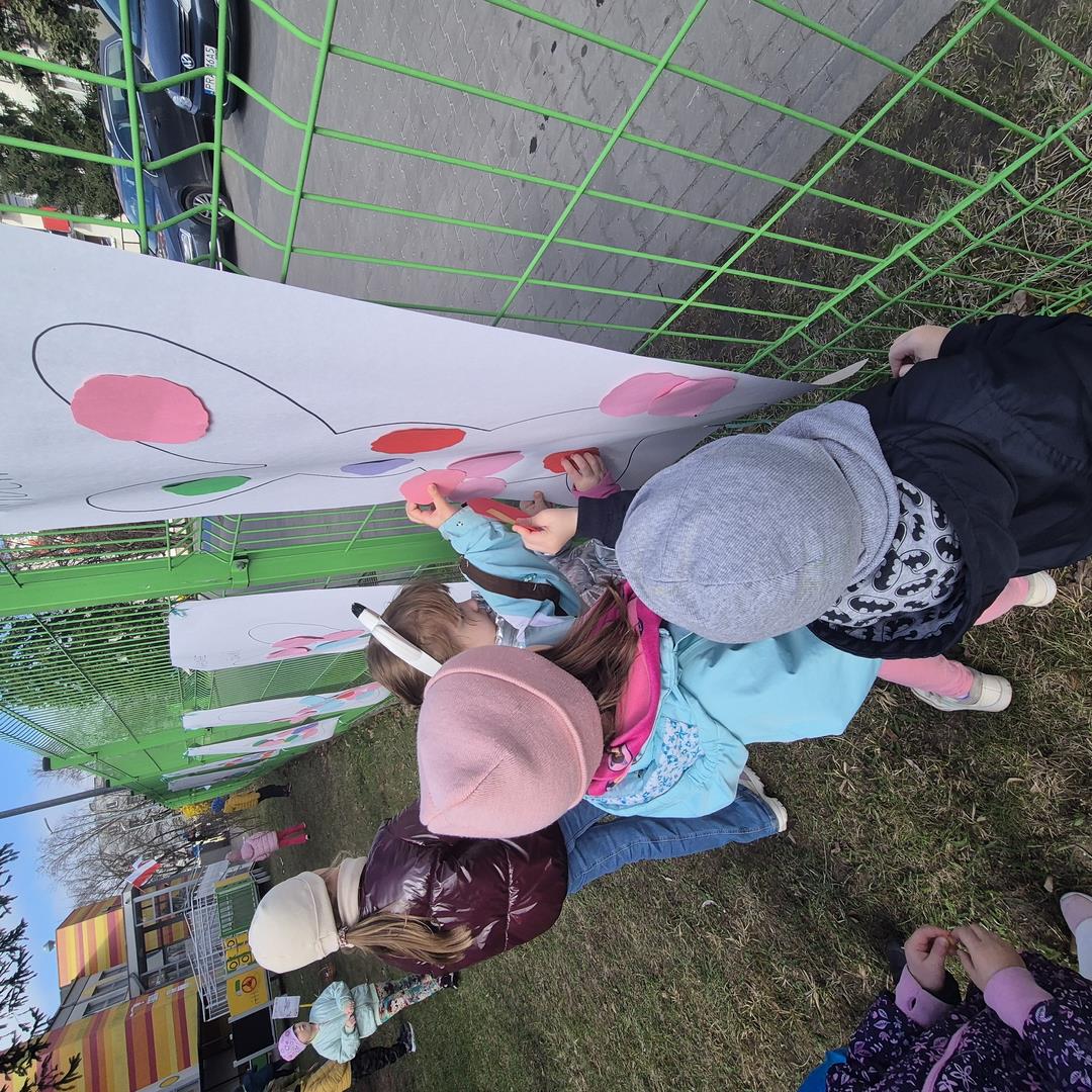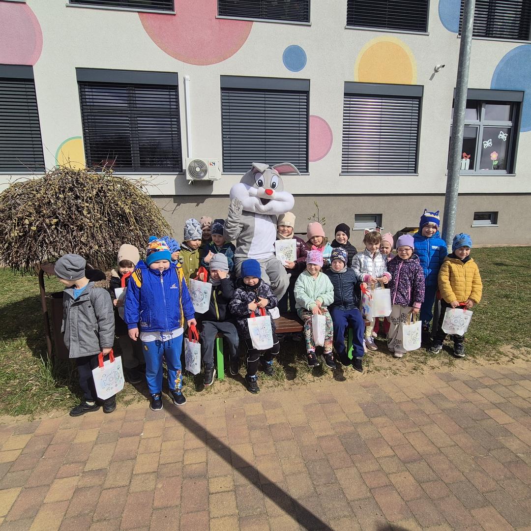 W środę przedświąteczną mieliśmy dzień atrakcji. Rozpoczęliśmy śniadankiem wielkanocnym, malowaliśmy farbami, a następnie poszukiwaliśmy zajączka. Było wesoło, ponieważ najpierw musieliśmy przejść zadania: rozwiązywaliśmy zagadki, zbieraliśmy jajeczka, przyklejaliśmy futerko zajączkowi czy graliśmy w kręgle.. Nie było łatwo, ale cała grupa spisała się bardzo dobrze i dotarliśmy do mety gdzie czekała na nas nagroda spotkanie z Zajączkiem. Wspólnie zatańczyliśmy i otrzymaliśmy po upominku. Zapraszam do galerii:)