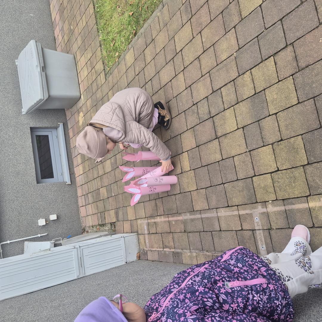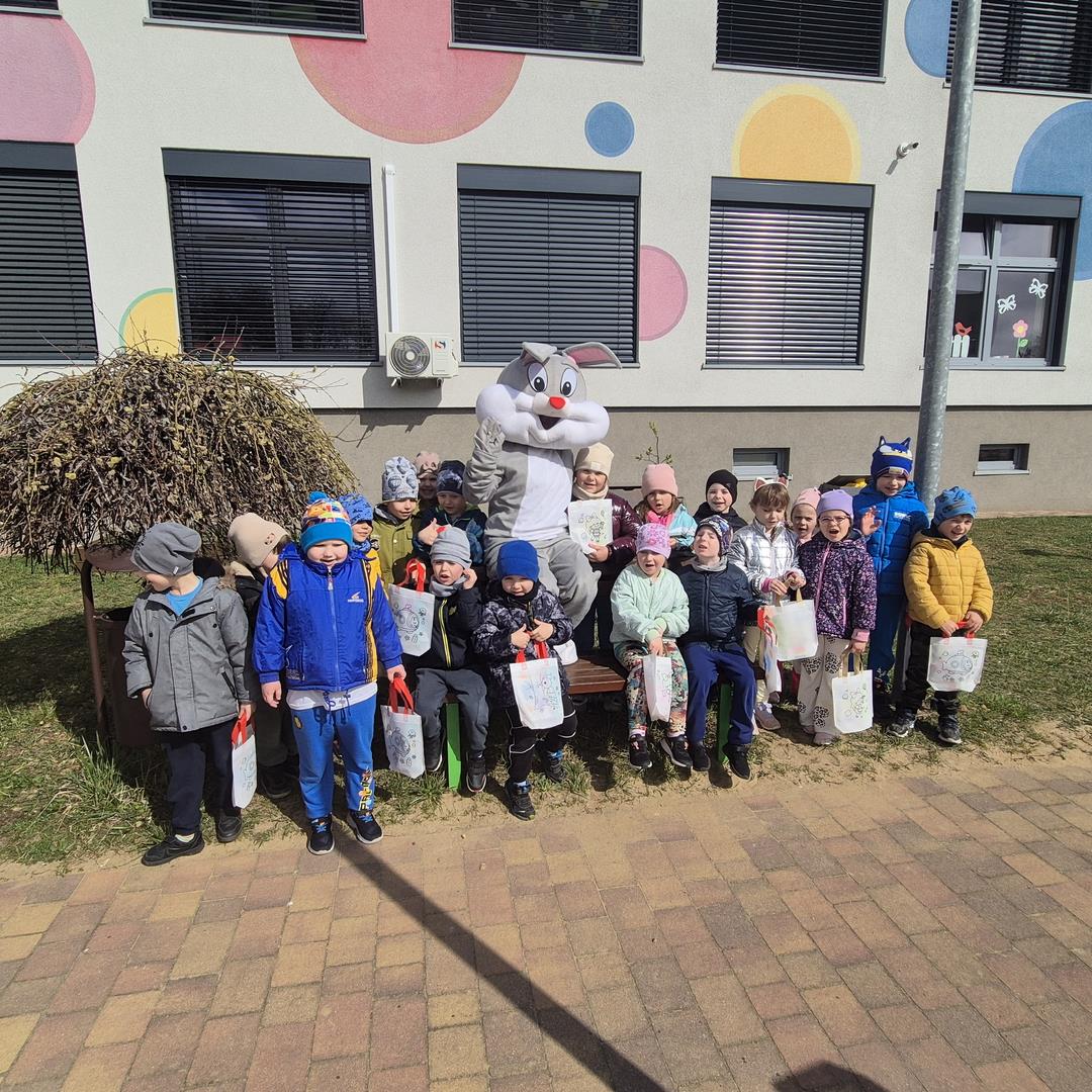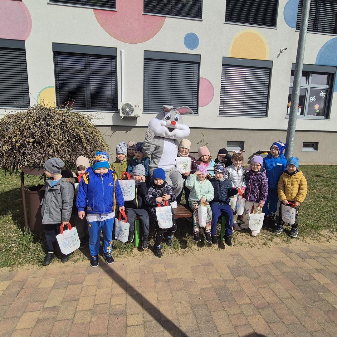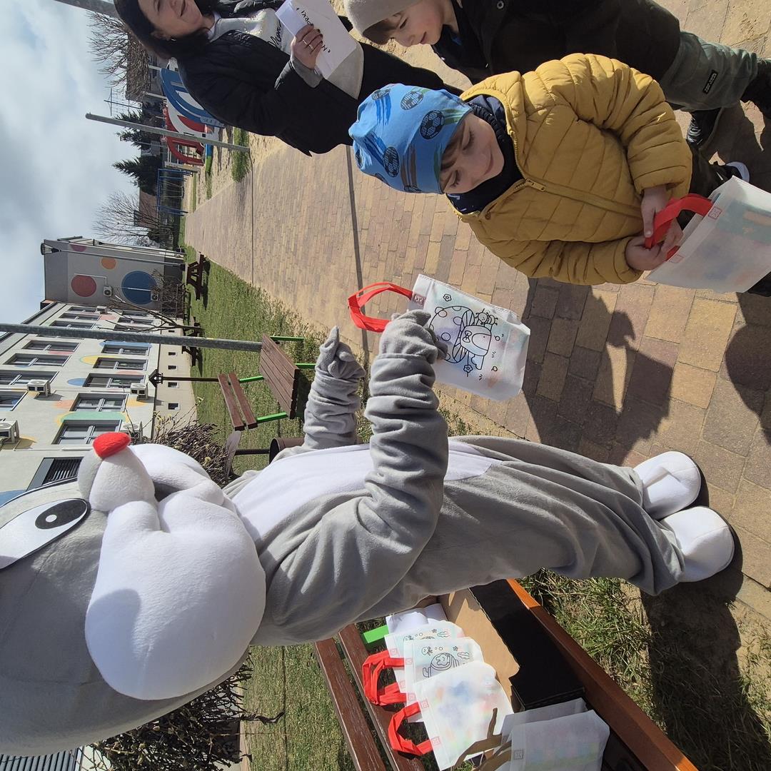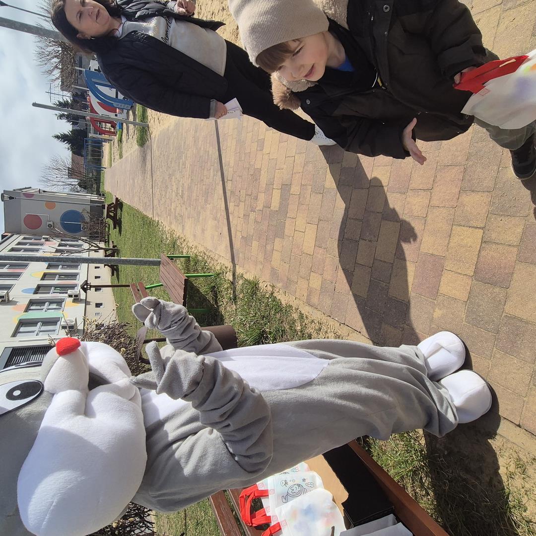 W środę przedświąteczną mieliśmy dzień atrakcji. Rozpoczęliśmy śniadankiem wielkanocnym, malowaliśmy farbami, a następnie poszukiwaliśmy zajączka. Było wesoło, ponieważ najpierw musieliśmy przejść zadania: rozwiązywaliśmy zagadki, zbieraliśmy jajeczka, przyklejaliśmy futerko zajączkowi czy graliśmy w kręgle.. Nie było łatwo, ale cała grupa spisała się bardzo dobrze i dotarliśmy do mety gdzie czekała na nas nagroda spotkanie z Zajączkiem. Wspólnie zatańczyliśmy i otrzymaliśmy po upominku. Zapraszam do galerii:)